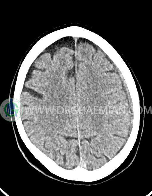 – SDH مزمن با حداکثر ضخامت 15 mm، با اثر فشاري مختصر روي پارانشيم لوب فرونتوپاريتال و