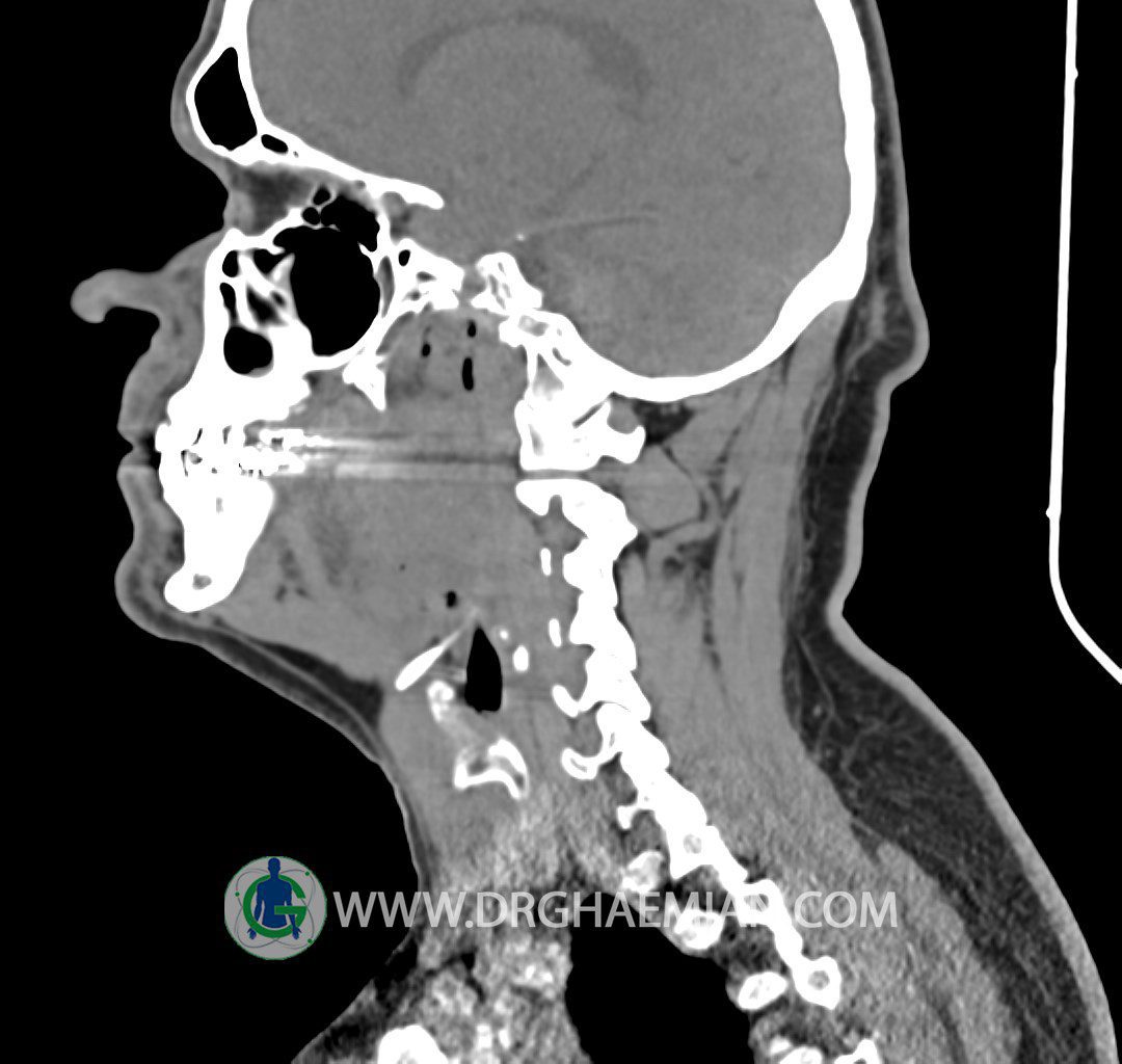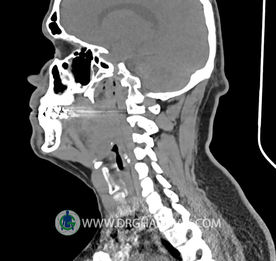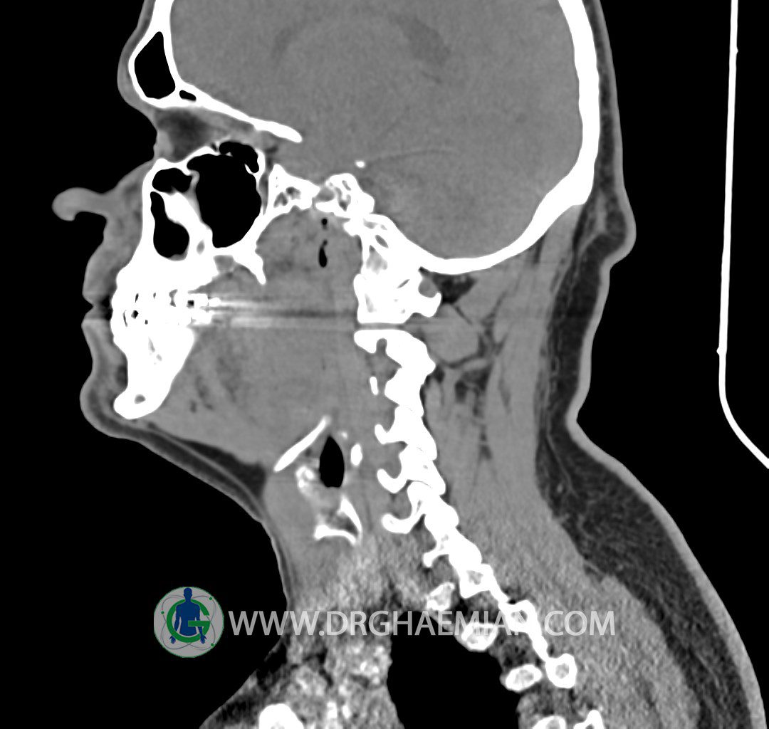 در استخوان های قابل مشاهده در سی تی اسکن ناحيه صورت و گردن شواهدی از FX ، دررفتگی و يا تخريب استخوانی ديده نمی شود.