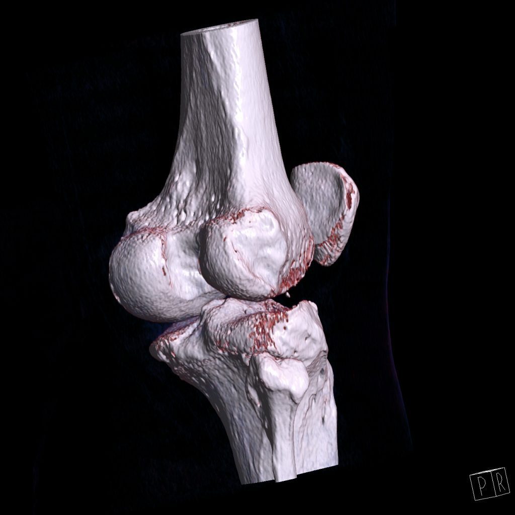 سي تي اسکن اسپيرال زانوي راست ( مولتي ديدکتور 16 با مقاطع ظريف و بازسازي هاي ساژيتال و کرونال و 3D):