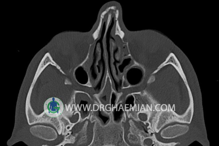 – افزايش ضخامت مخاطي در سينوس هاي اتموئيد، اسفنوئيد و ماگزيلاري دو طرف و هيپوپلازي