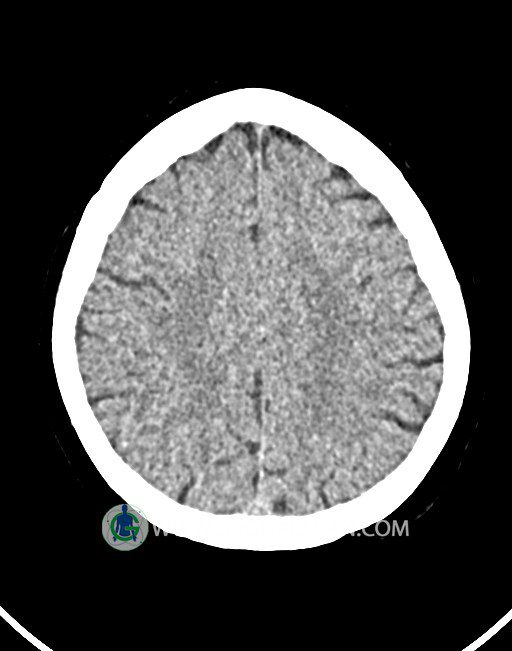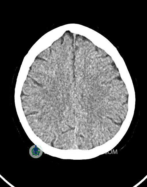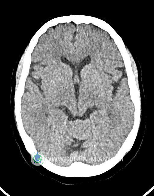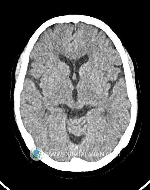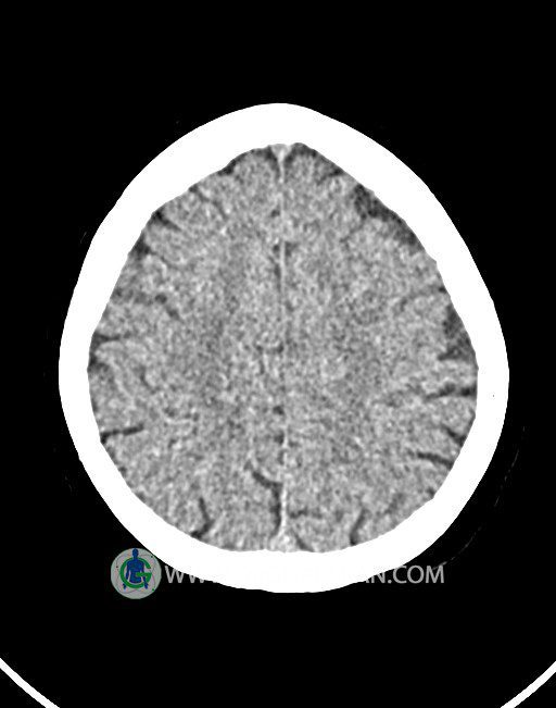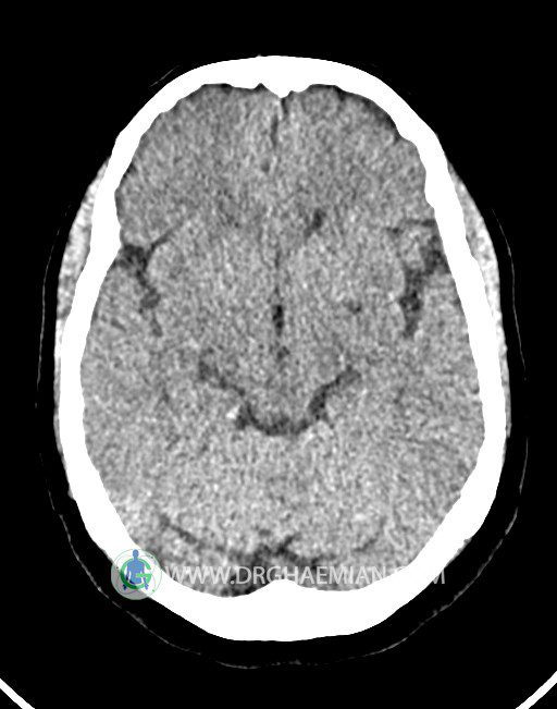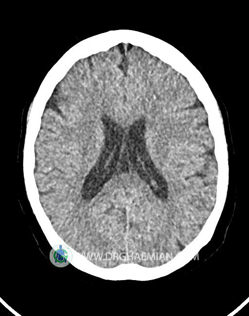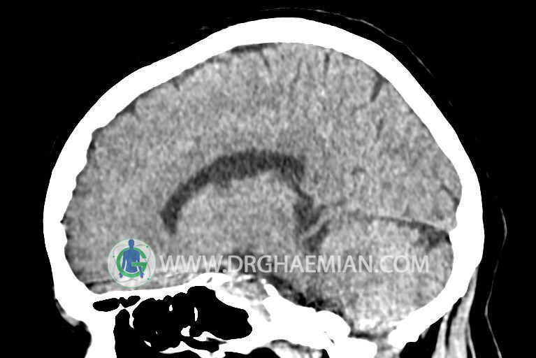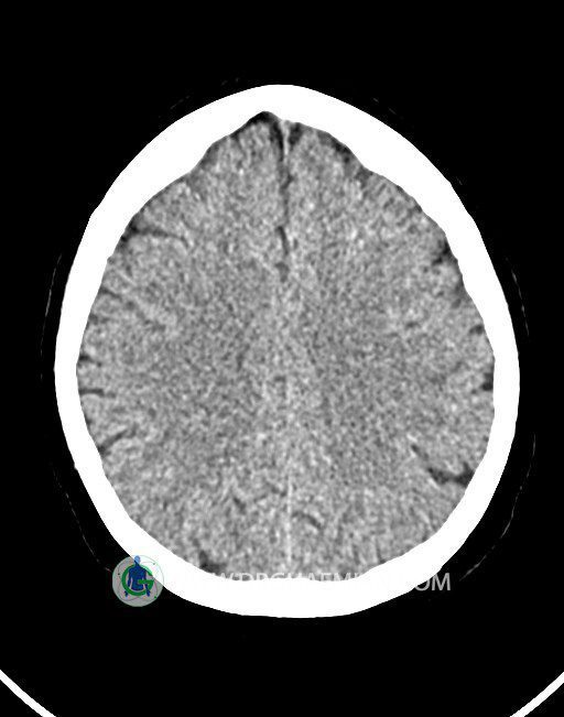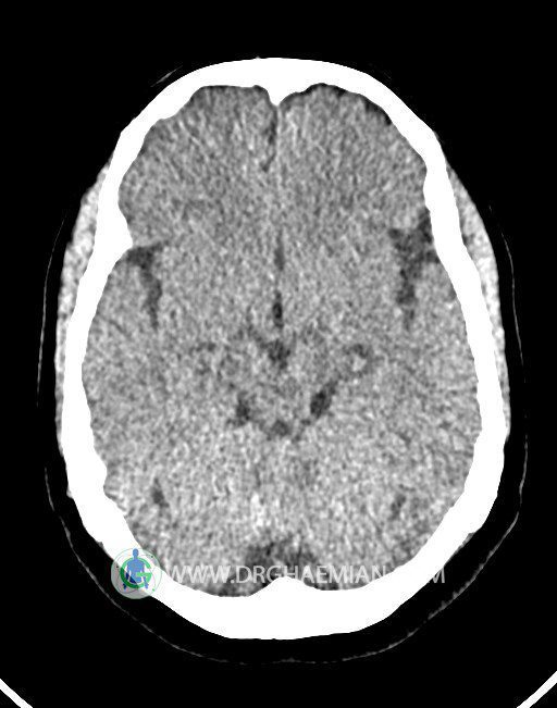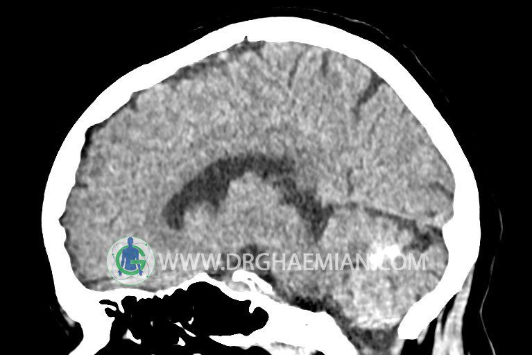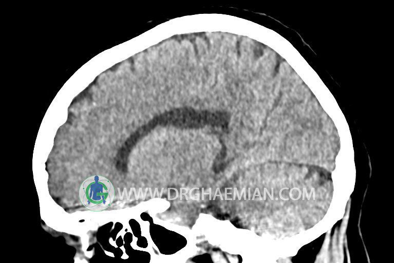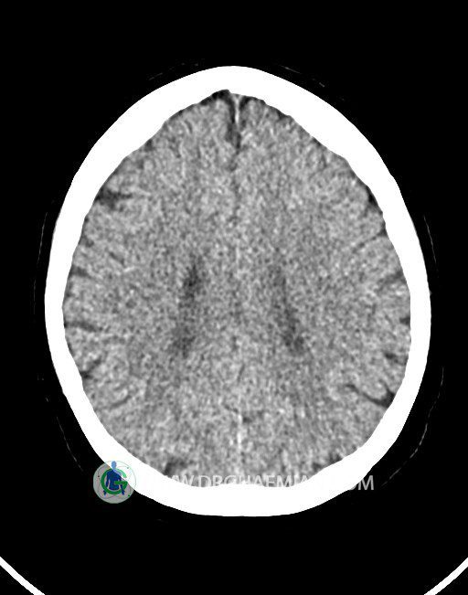 سی تی اسکن مغز یک روش تصویربرداری است که با استفاده از تشعات ایکس تصاویری با جزییات از ناحیه سر که شامل مغز، حفره های چشمی و سینوس می شود ایجاد میکند. در این کیس هماتوم مغز و کلسیفیکاسیون و نشانه های سلای نسبتا خالی هیپوفیز دیده می شود.