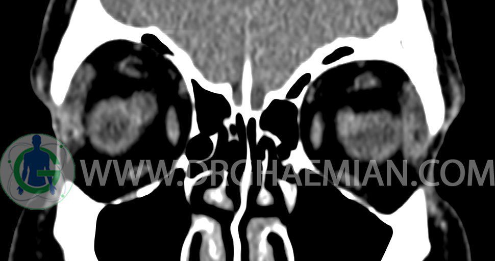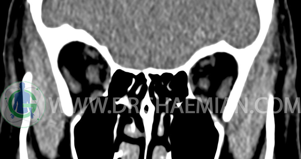 در سی تی اسکن اسپیرال اگزیال و کرونال از اربیت بدون تزریق :
