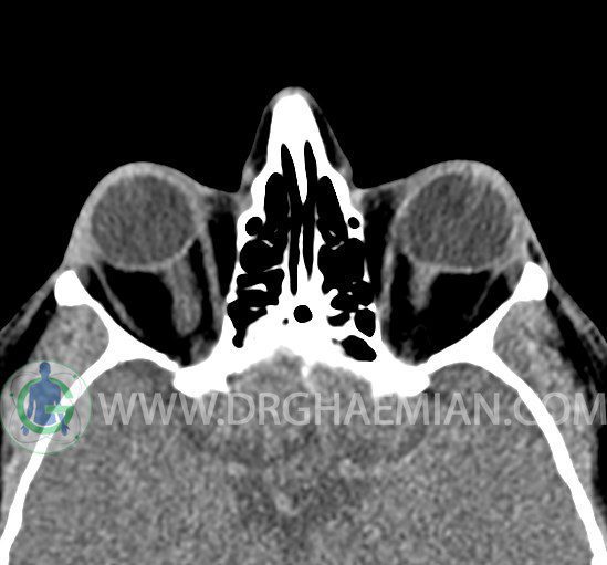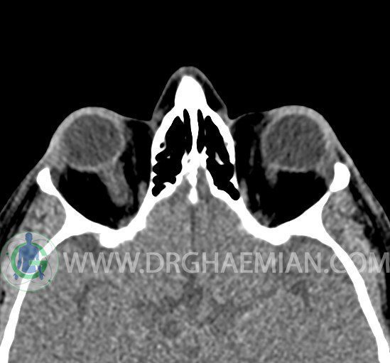 نمای گلوب، عضلات چشمی، فضای اربیت و دانسیته چربی داخل آن در حد نرمال میباشد.