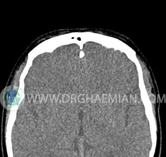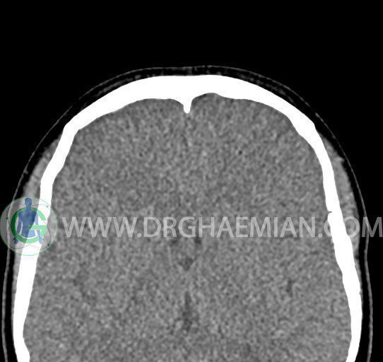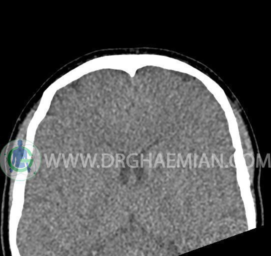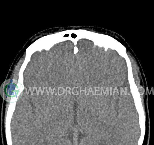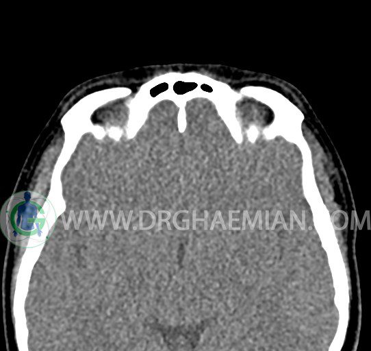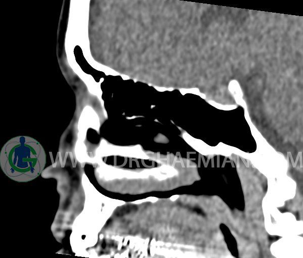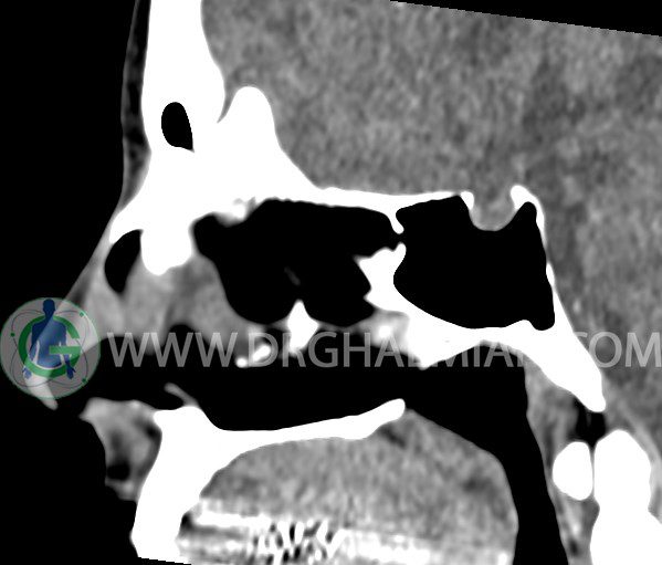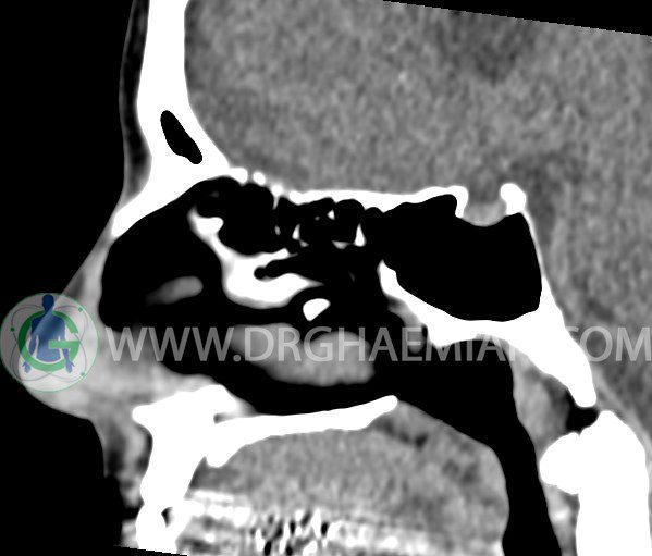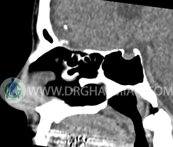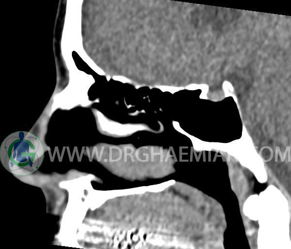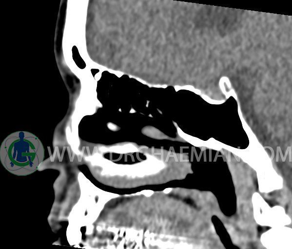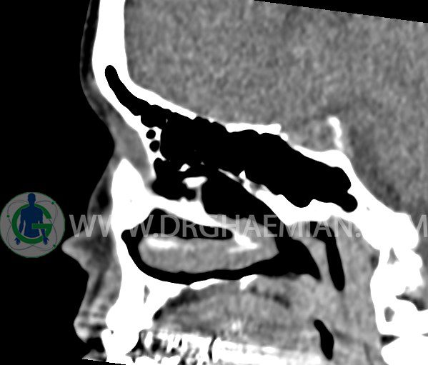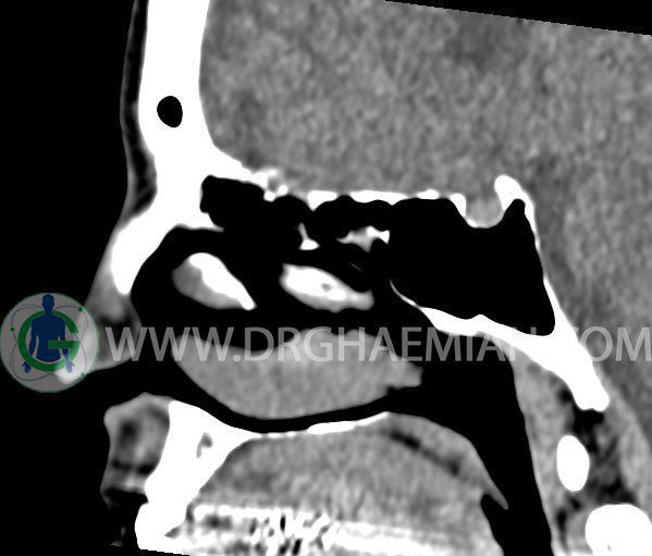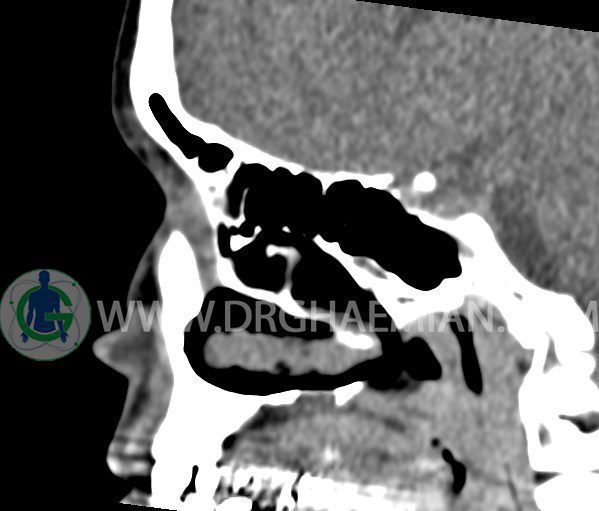 سی تی اسکن سینوس ها یک روش تصویربرداری است که با استفاده از تشعشعات تصاویری با جزییات از ناحیه خالی داخل صورت (سینوس ها) ایجاد میکند. در این کیس هيپوپلازی سينوس فرونتال و انحراف سپتوم دیده می شود.