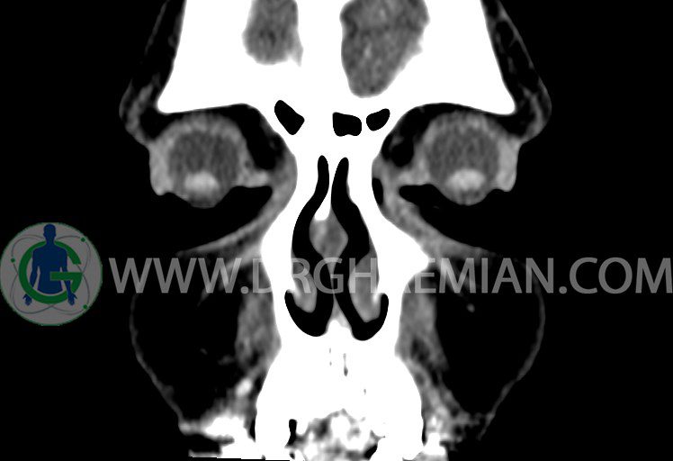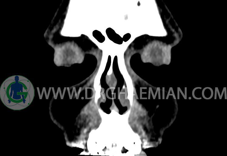 شواهدی از توده، سطح گاز – مايع، کدورت سينوسها، افزايش ضخامت مخاط ديواره سينوسها، اروژن ديواره سينوسها و دنسيتی غير طبيعی ديده نمی شود.