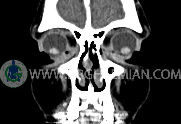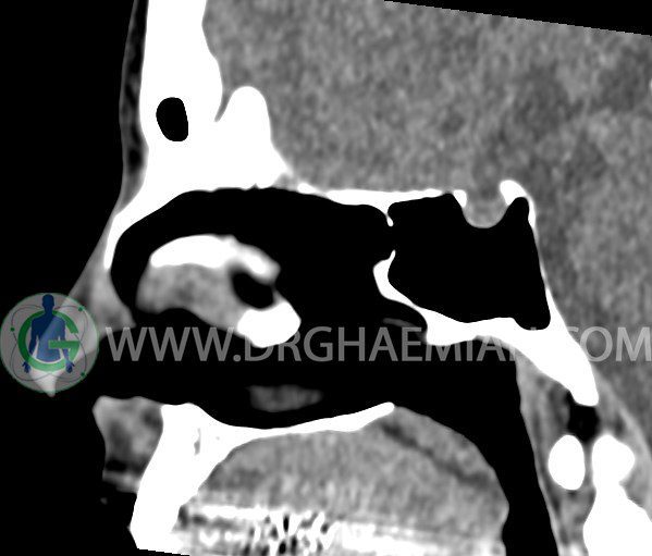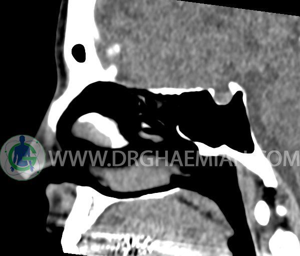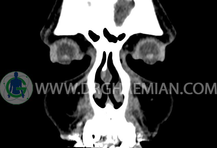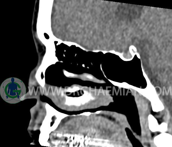 در HRCT اسپيرال از سينوس هاي پارانازال مقاطع کرونال و آگزيال ( 16 اسلايس و مقاطع ظريف 1.5 mm بدون فاصله ، با پنجره استخواني و نسج نرم ) :
