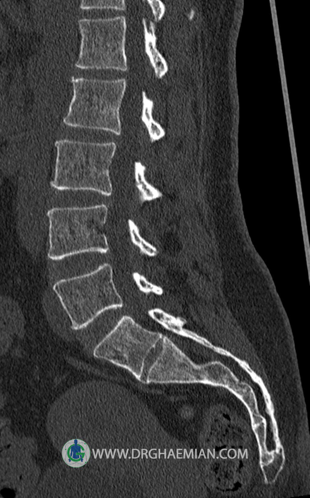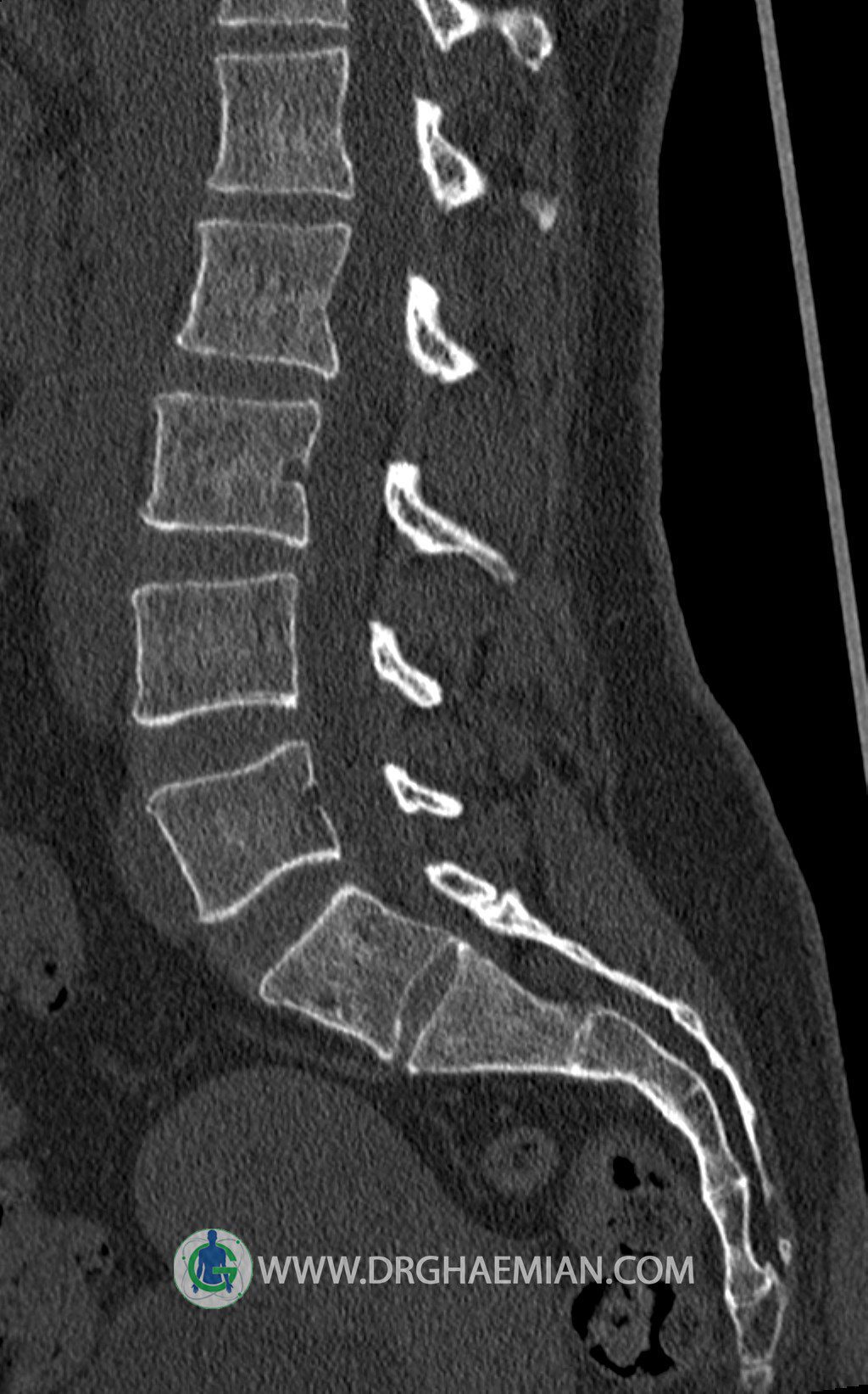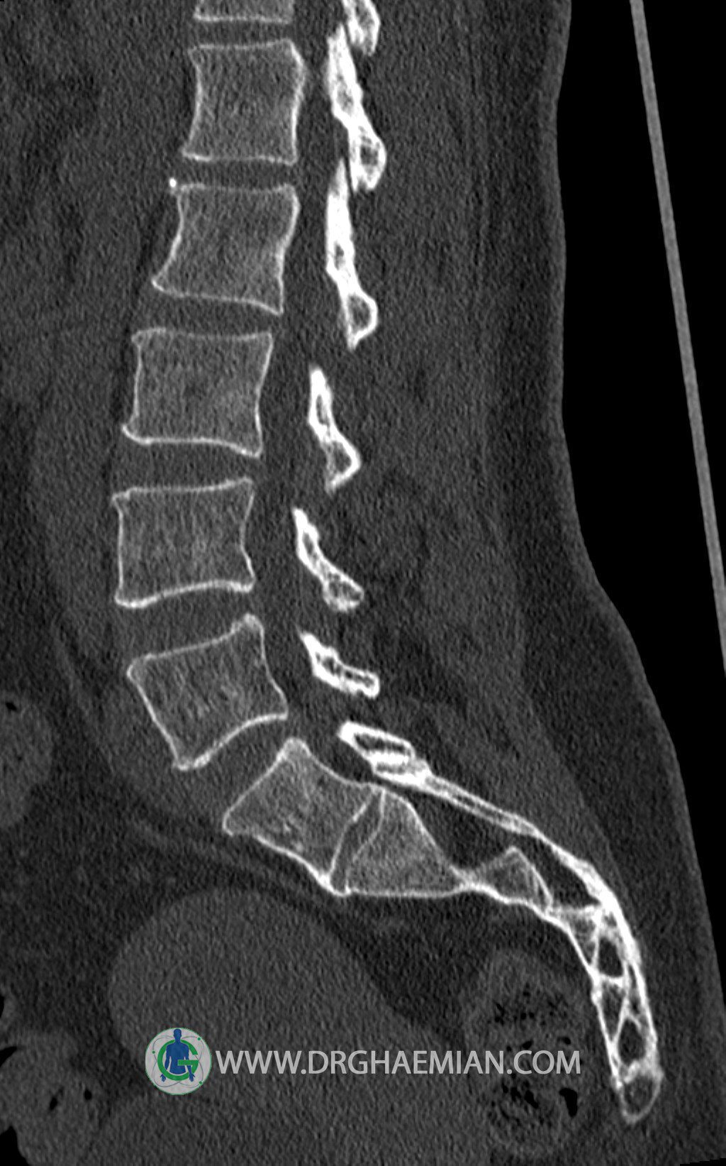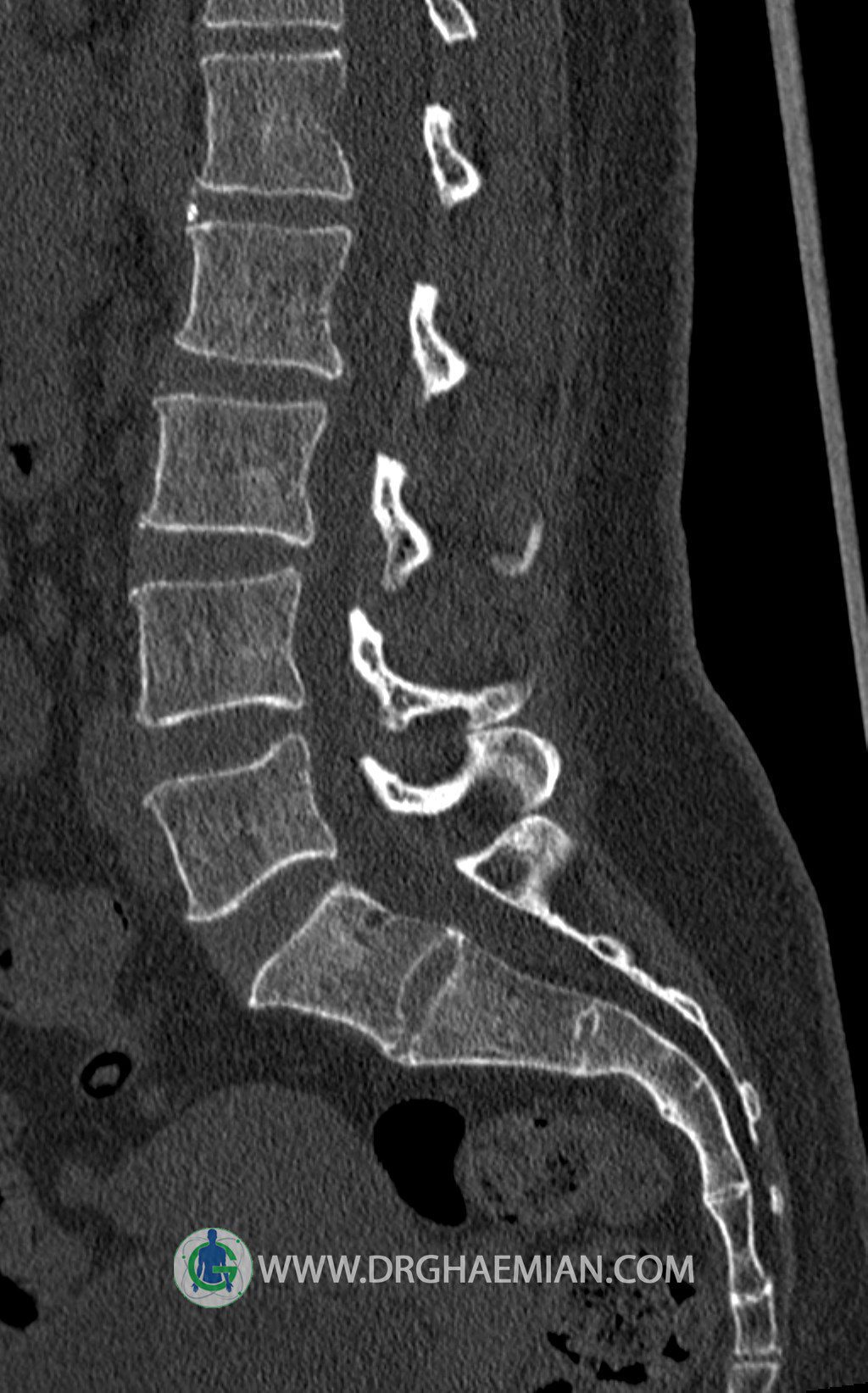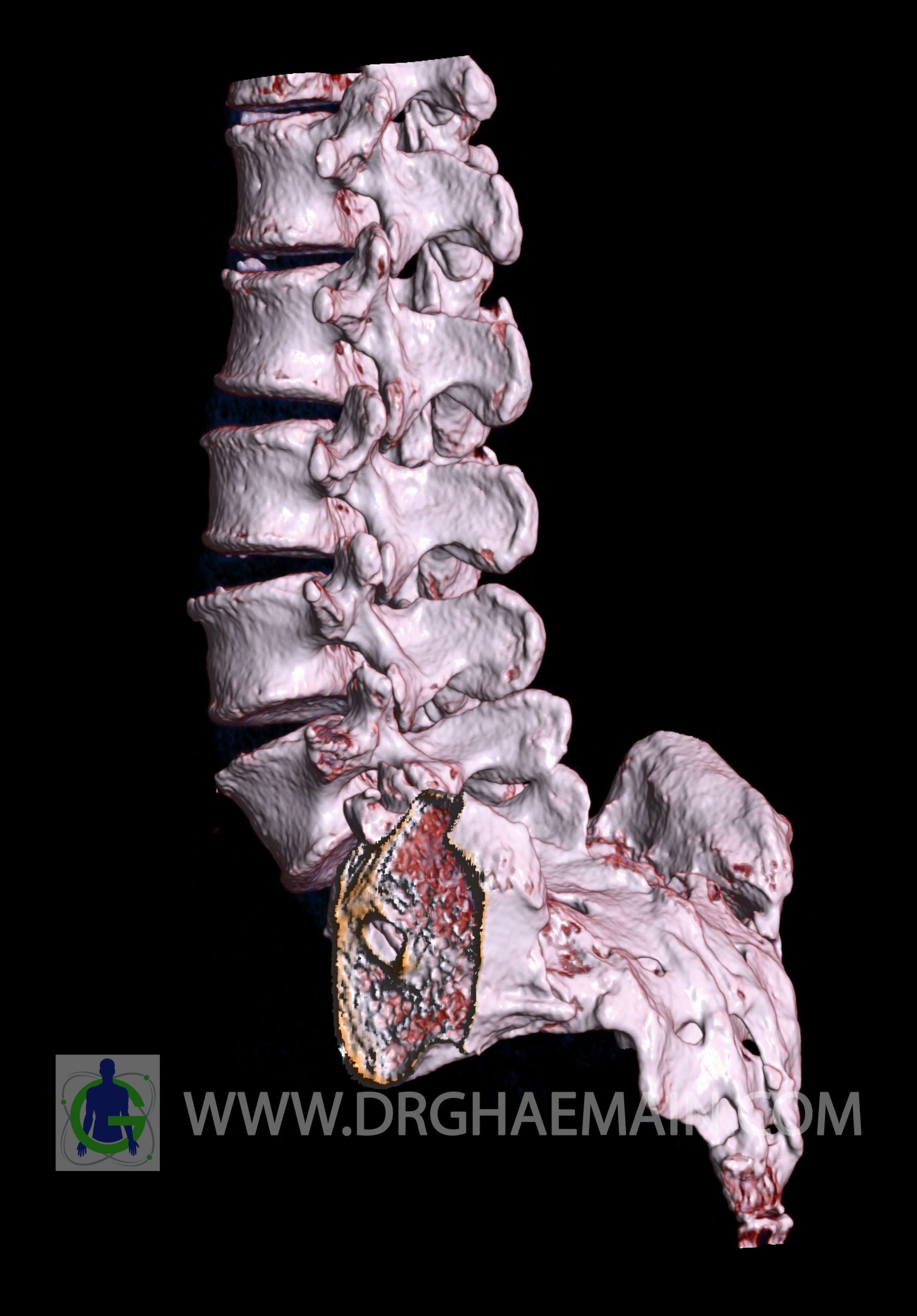 سی تی اسکن اسپيرال ازسطح تحتاني T12 تا انتهاي ساکروم (مولتي ديدکتور 16 با مقاطع ظريف و بازسازي هاي ساژيتال و کرونال و 3D):