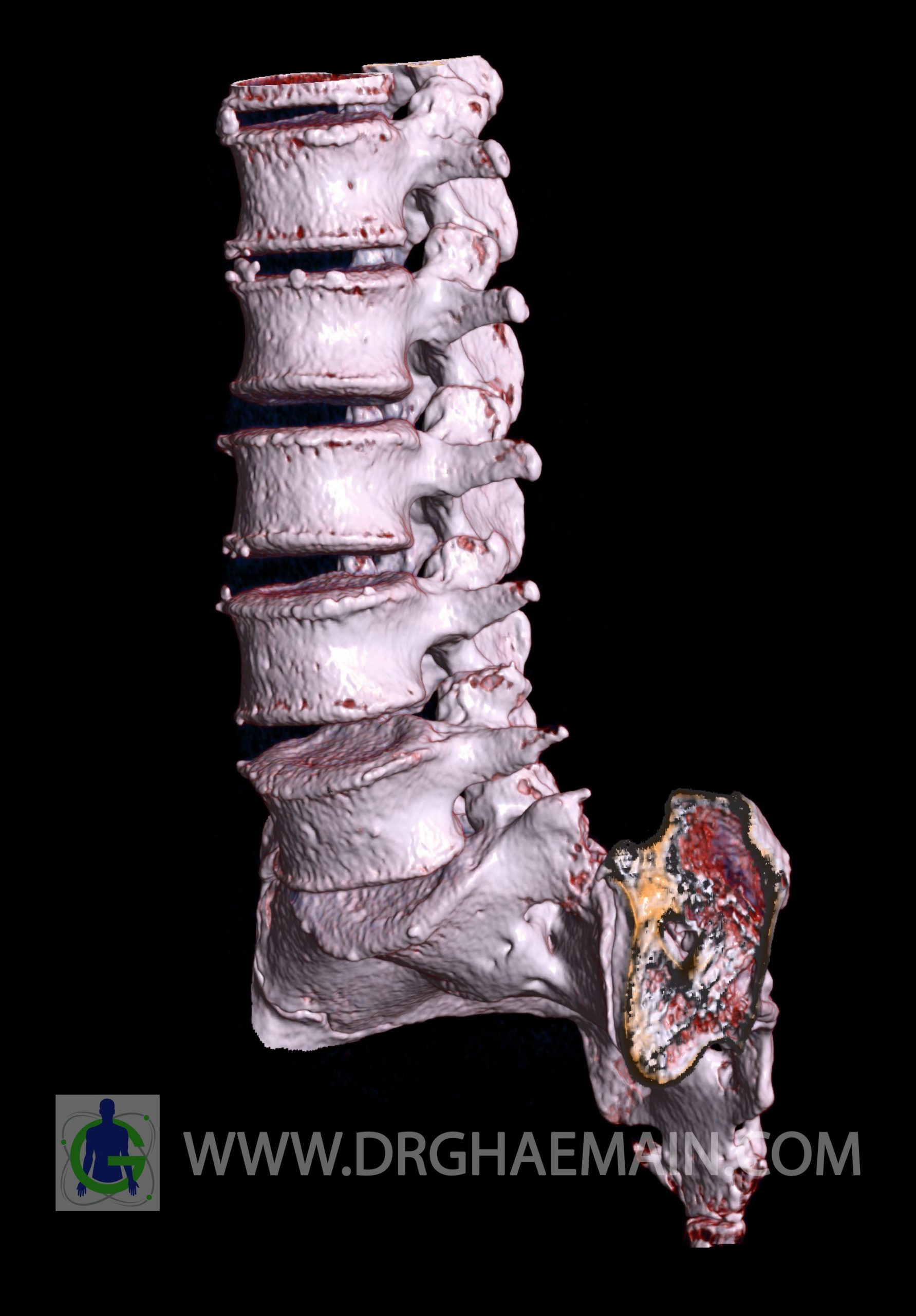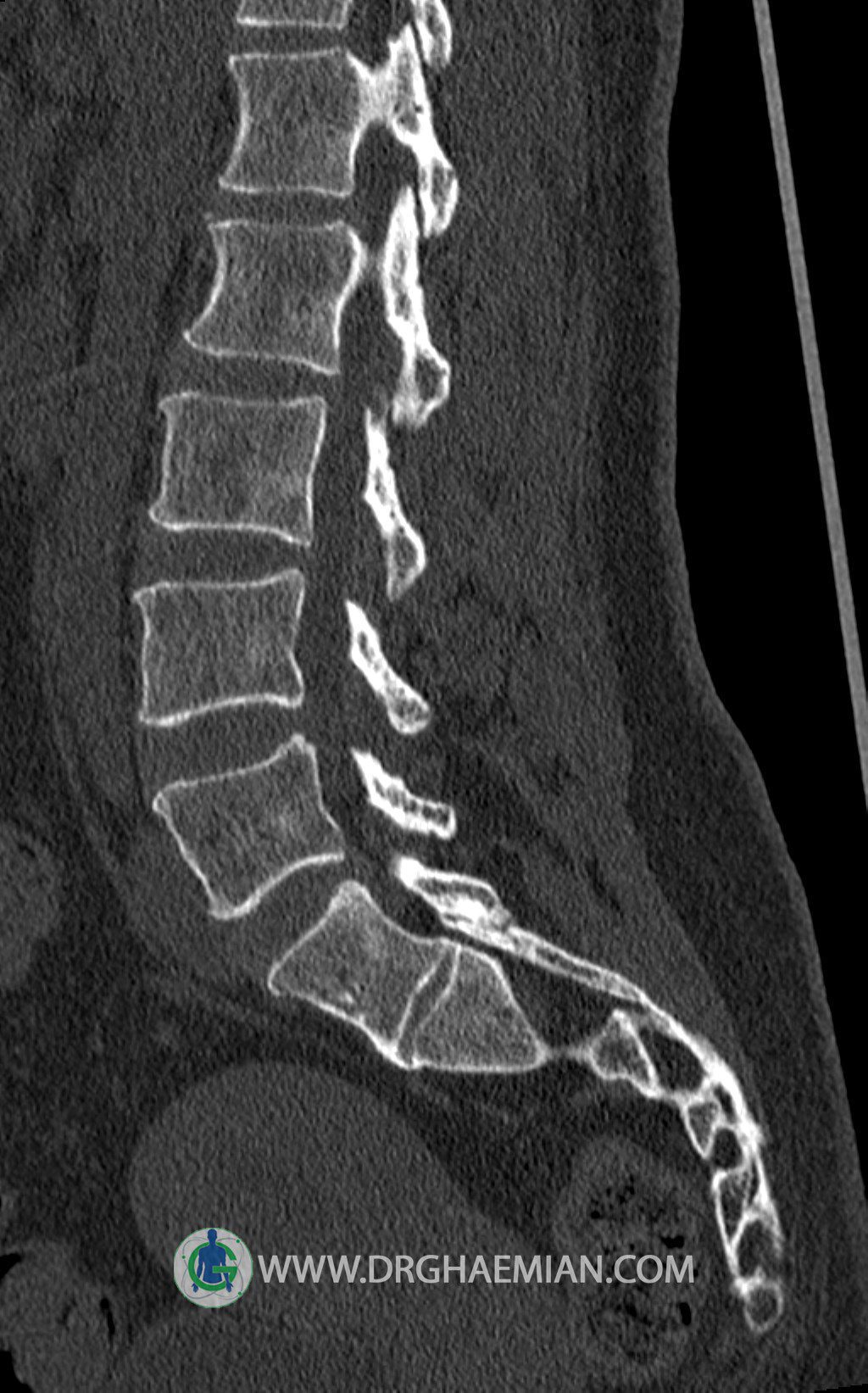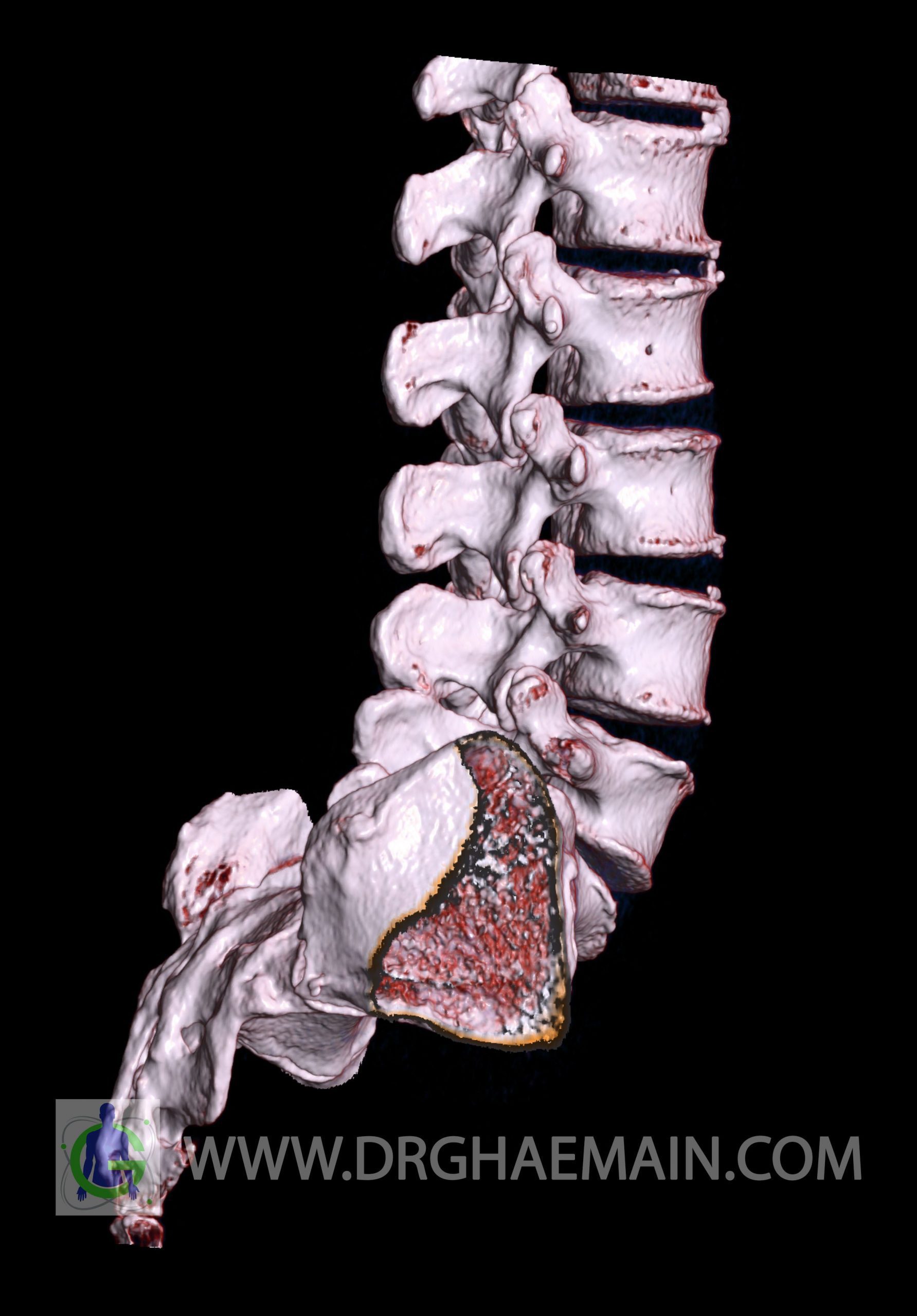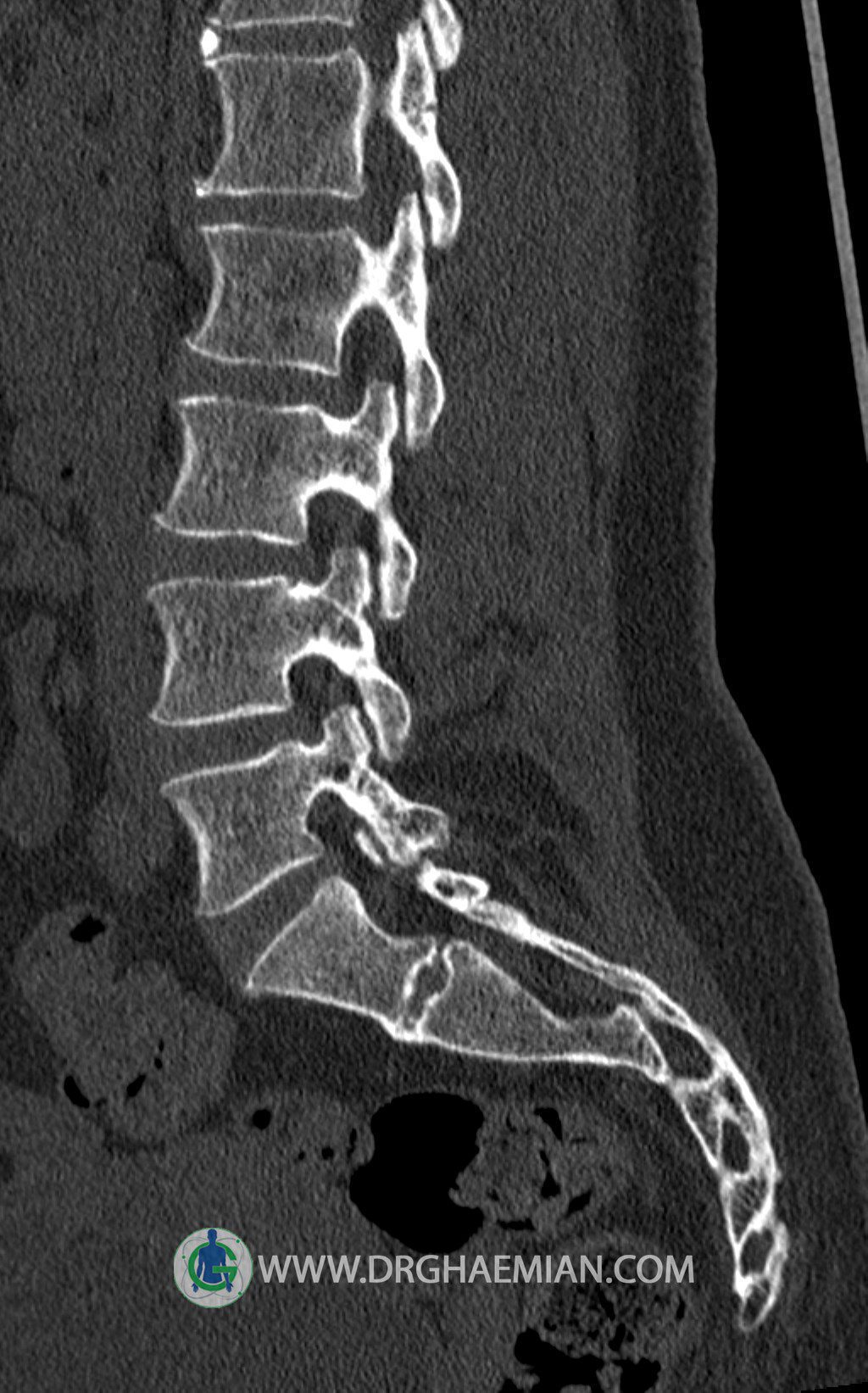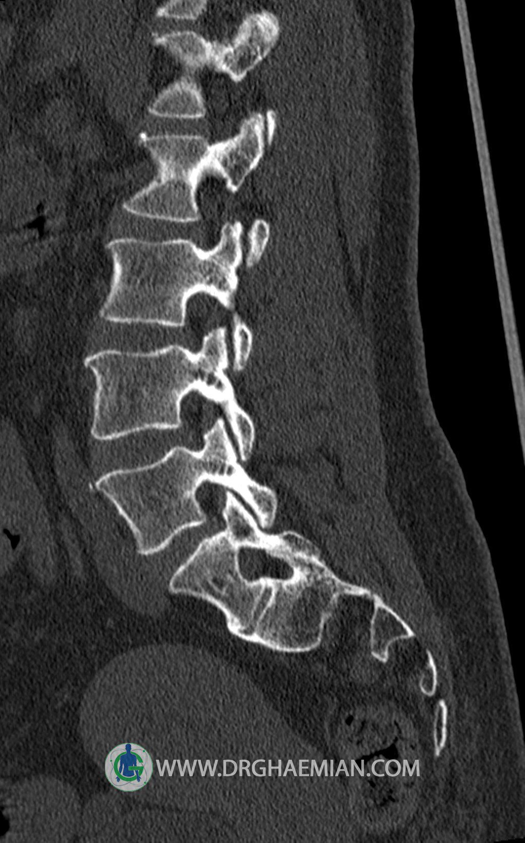 سی تی اسکن اسپيرال ازسطح تحتاني T12 تا انتهاي ساکروم (مولتي ديدکتور 16 با مقاطع ظريف و بازسازي هاي ساژيتال و کرونال و 3D):
