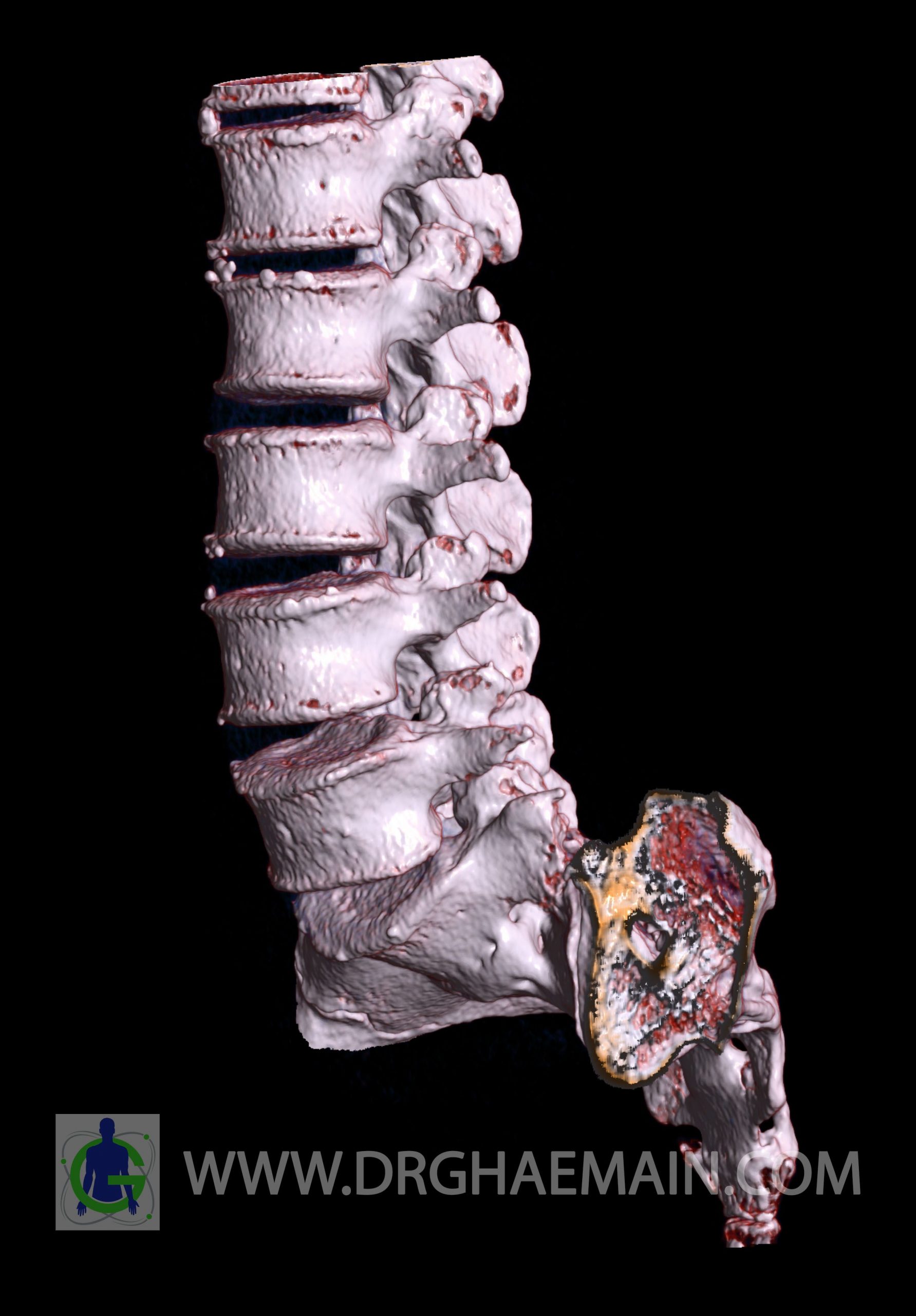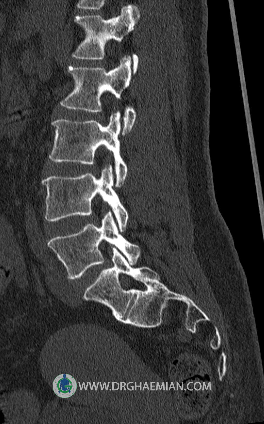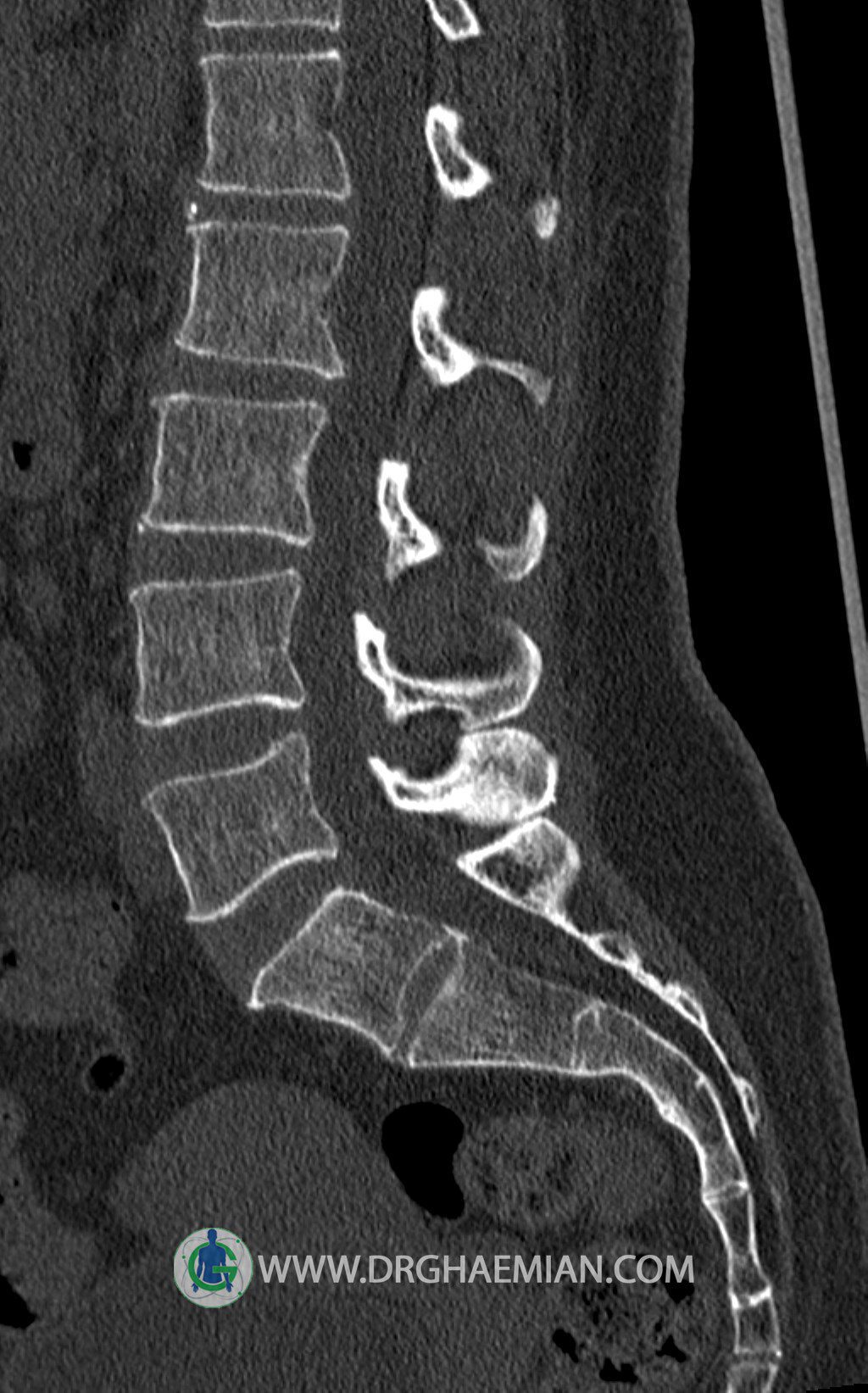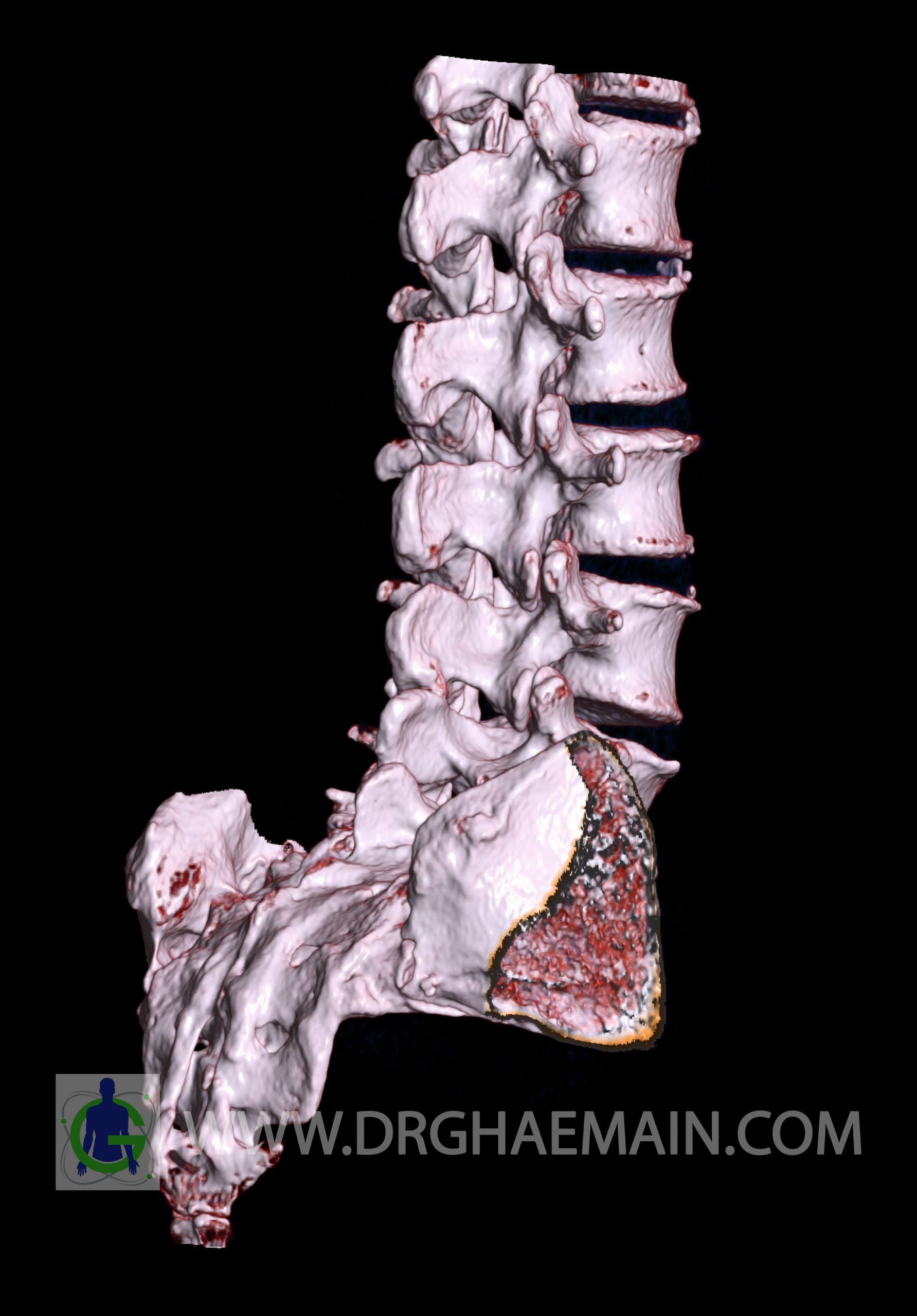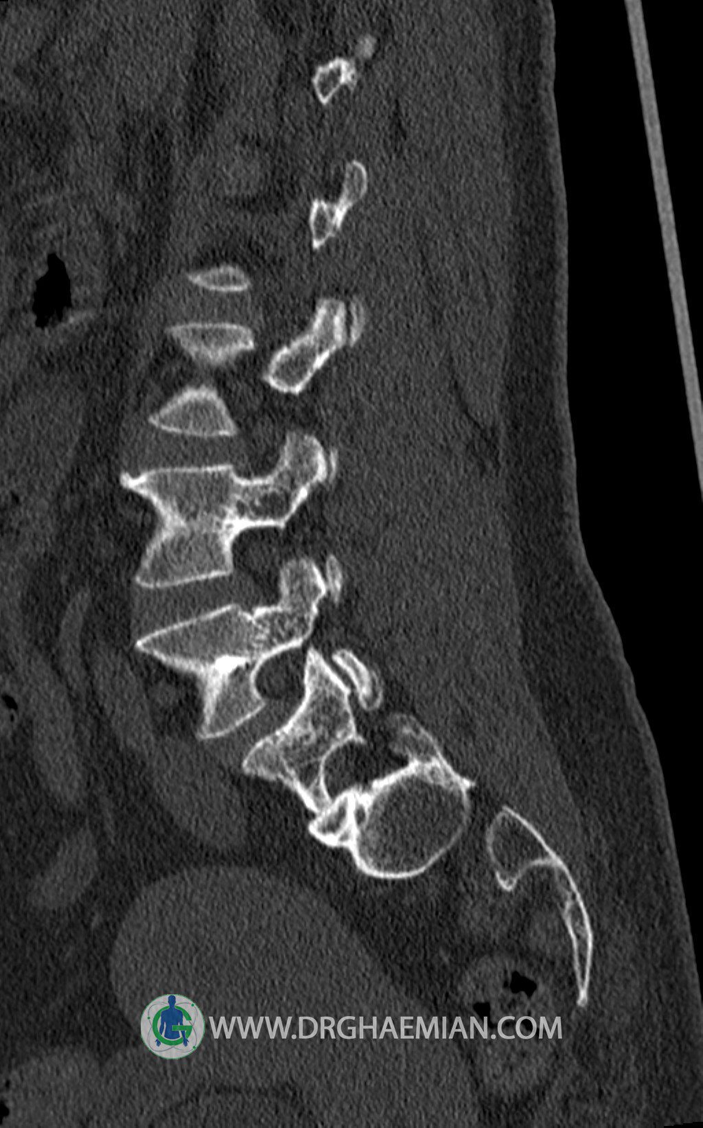 سی تی اسکن اسپيرال ازسطح تحتاني T12 تا انتهاي ساکروم (مولتي ديدکتور 16 با مقاطع ظريف و بازسازي هاي ساژيتال و کرونال و 3D):