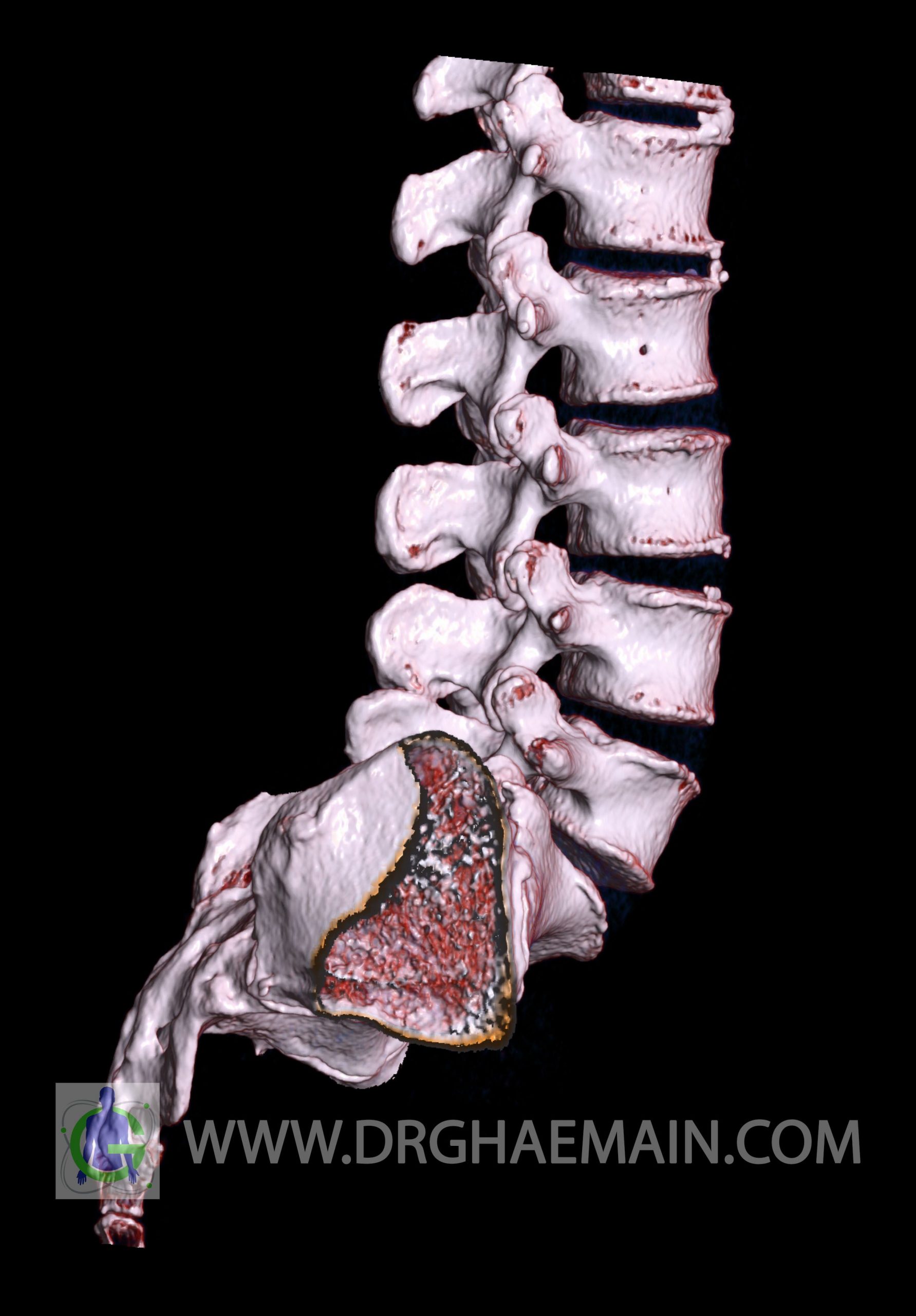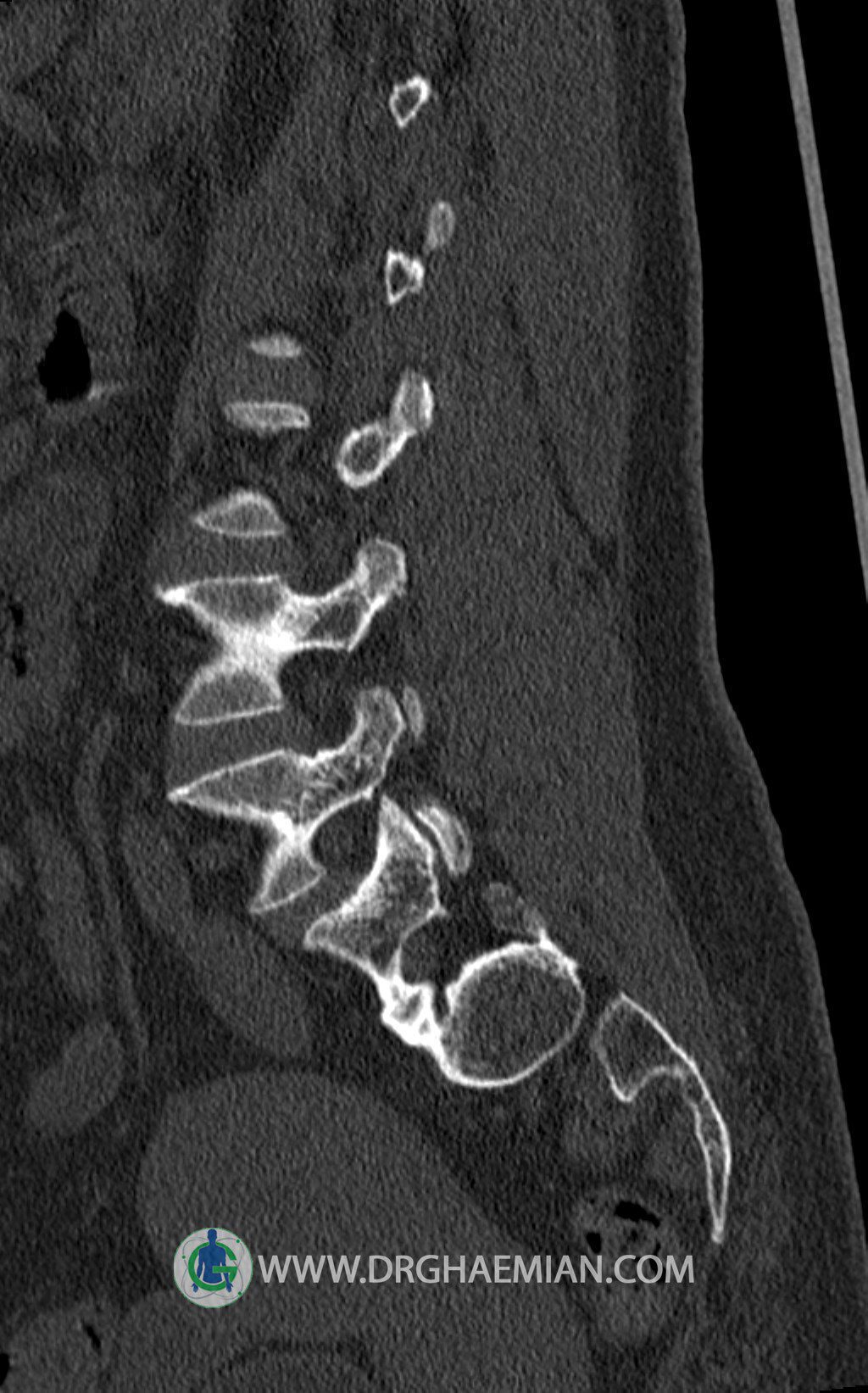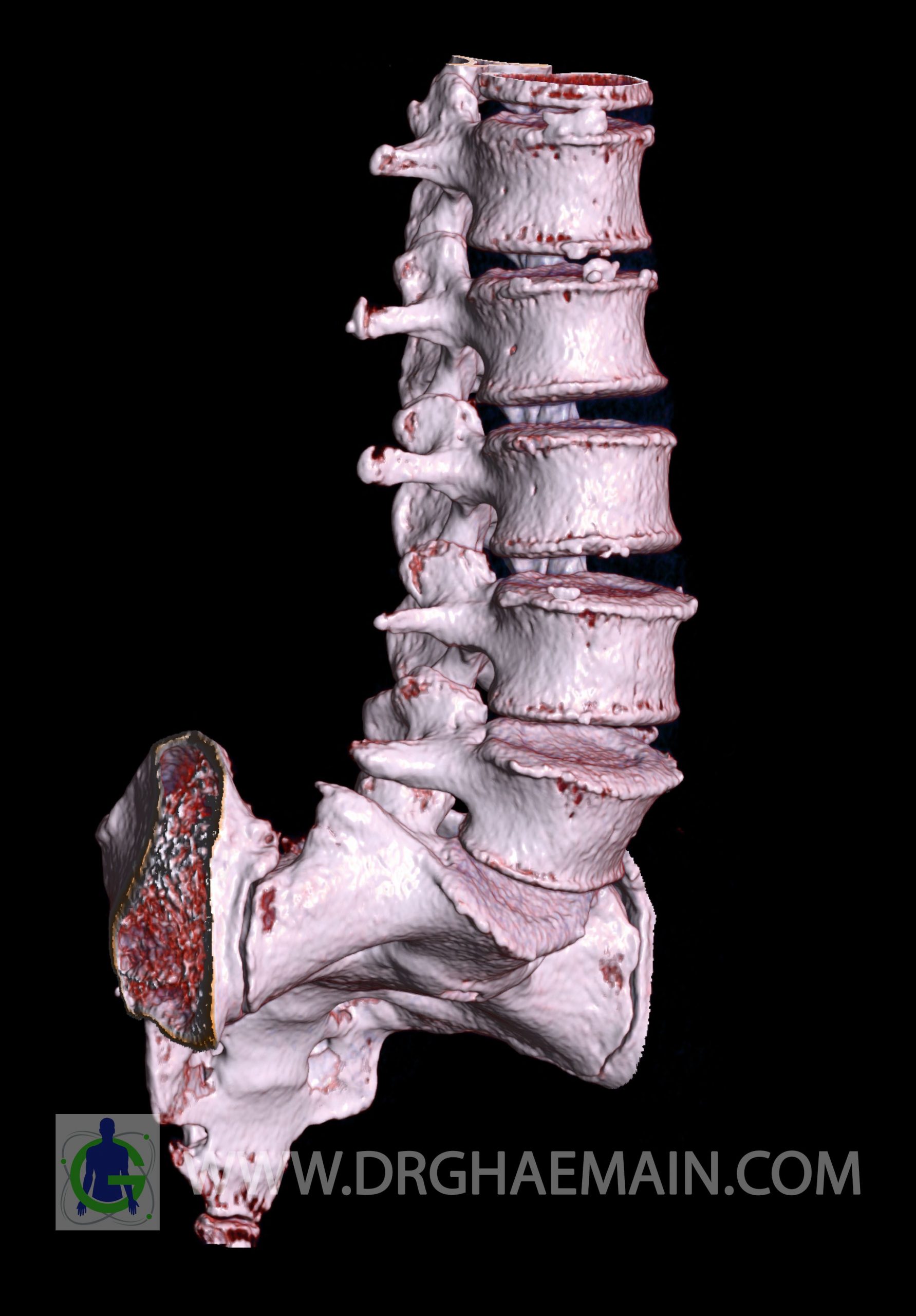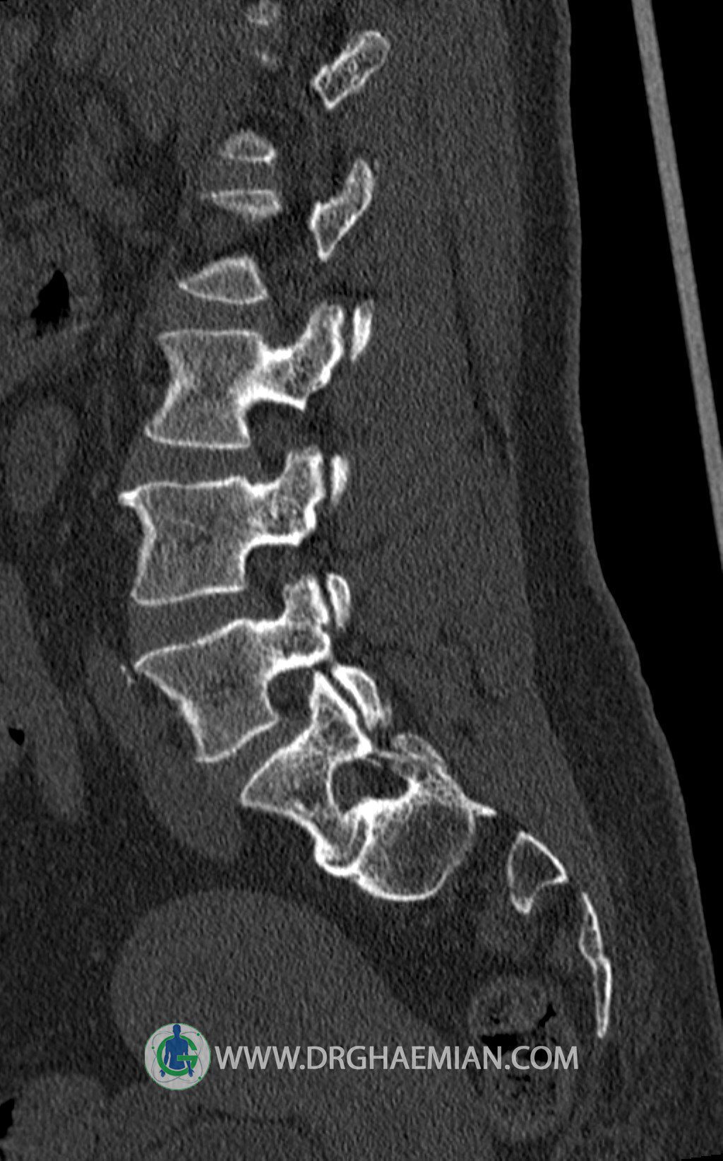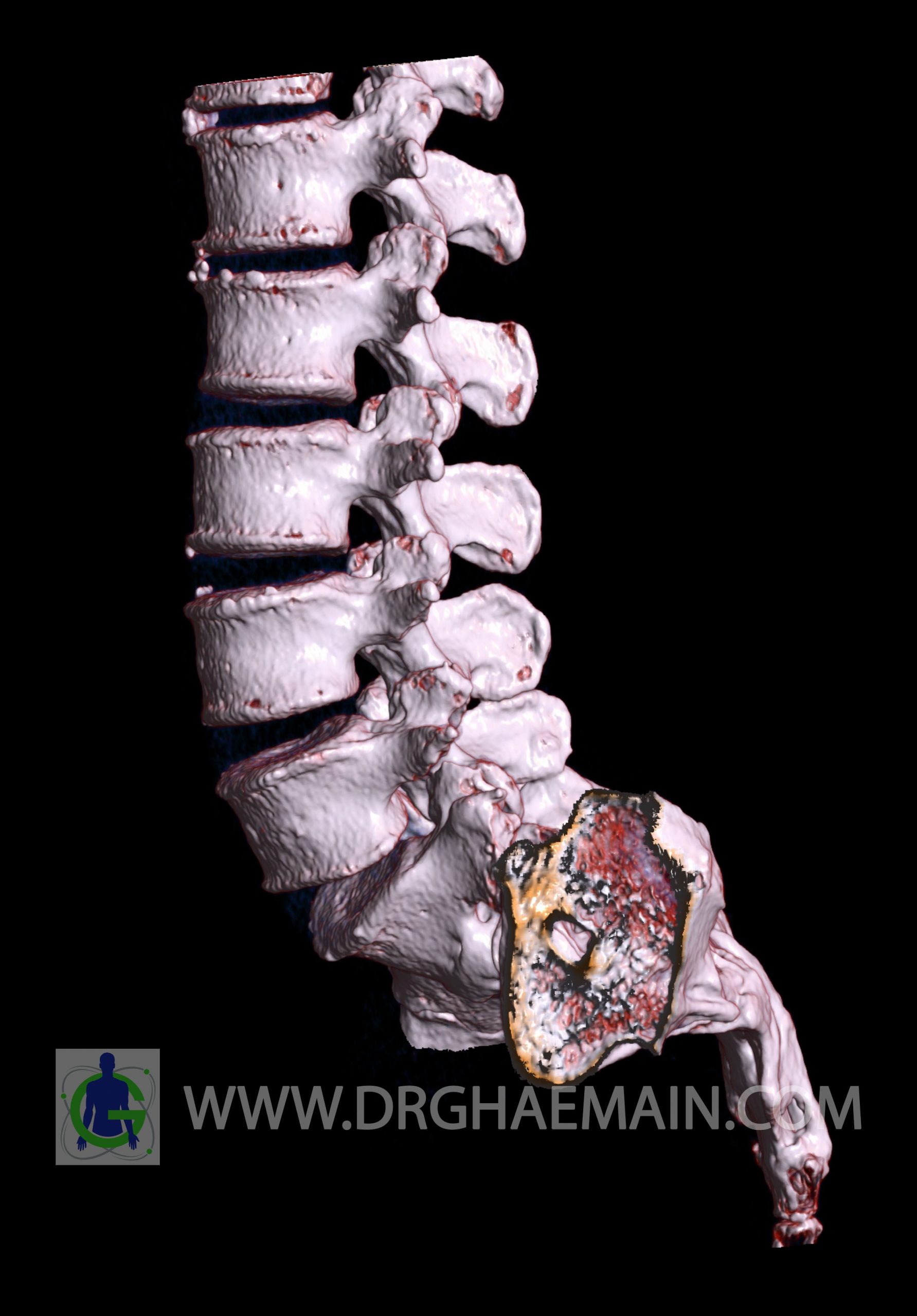 سی تی اسکن اسپيرال ازسطح تحتاني T12 تا انتهاي ساکروم (مولتي ديدکتور 16 با مقاطع ظريف و بازسازي هاي ساژيتال و کرونال و 3D):