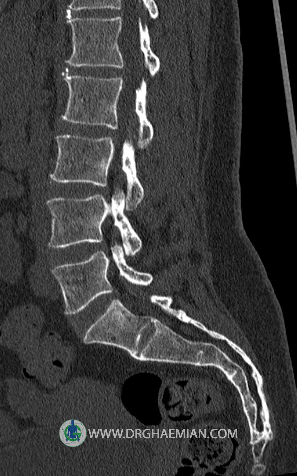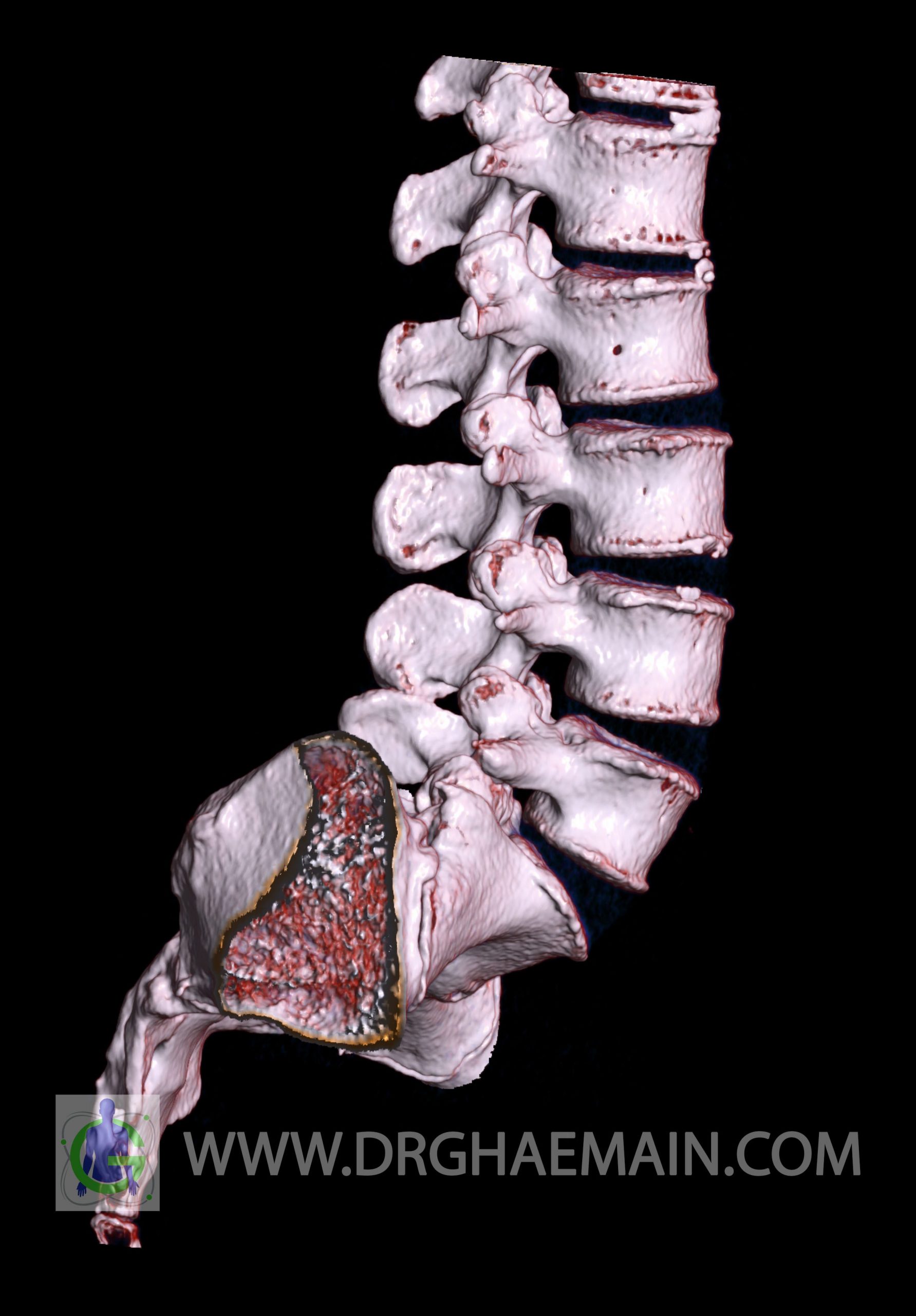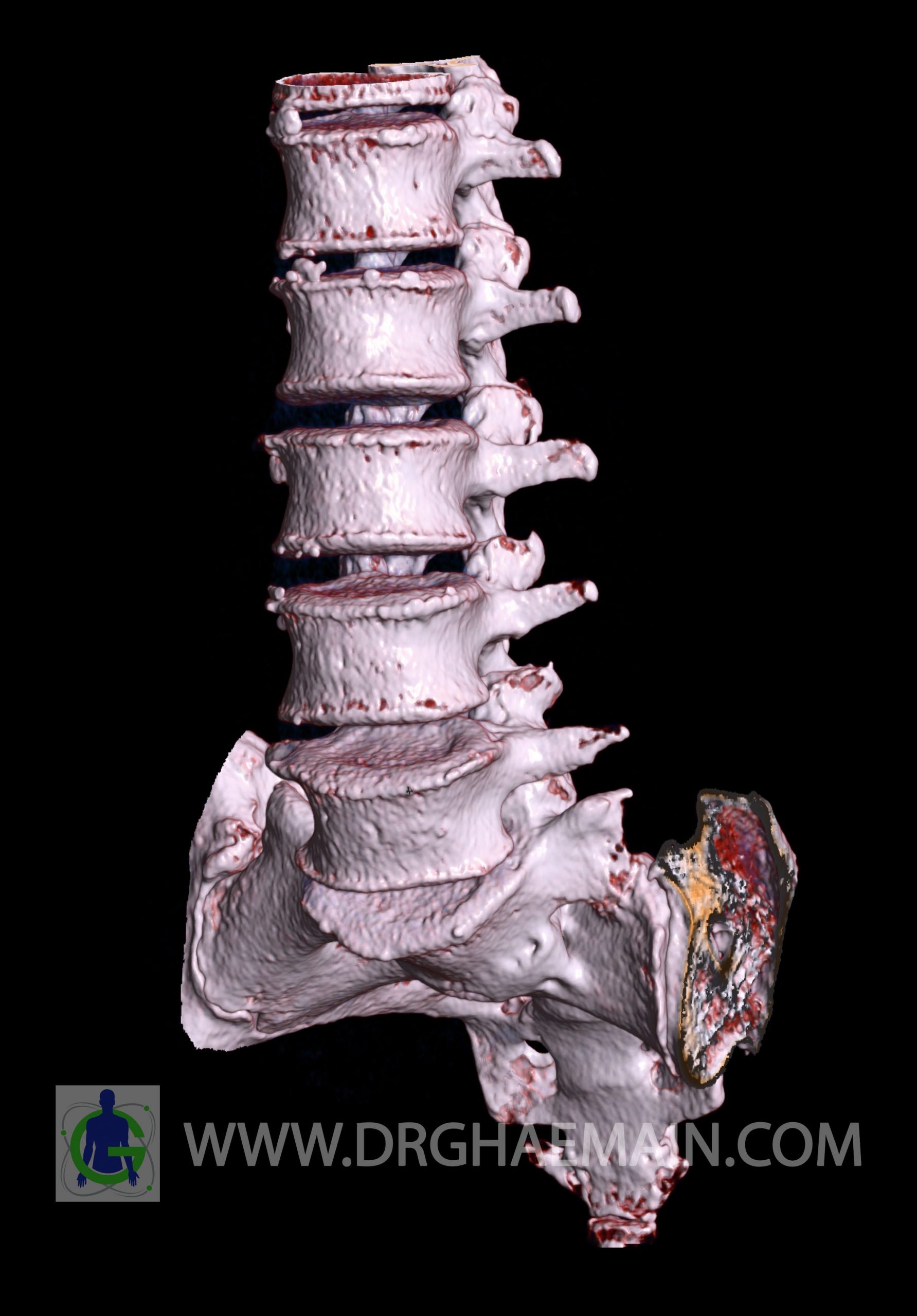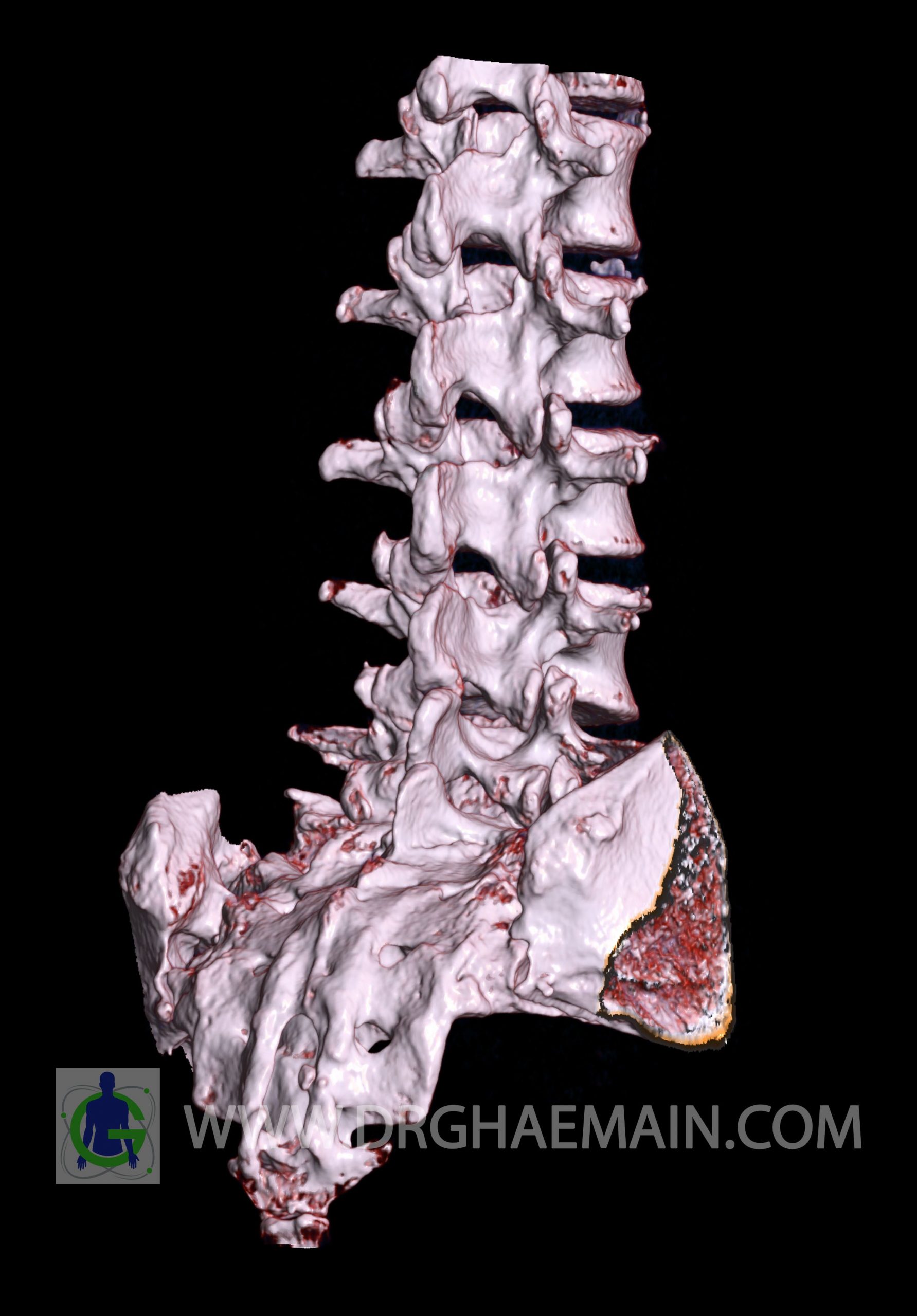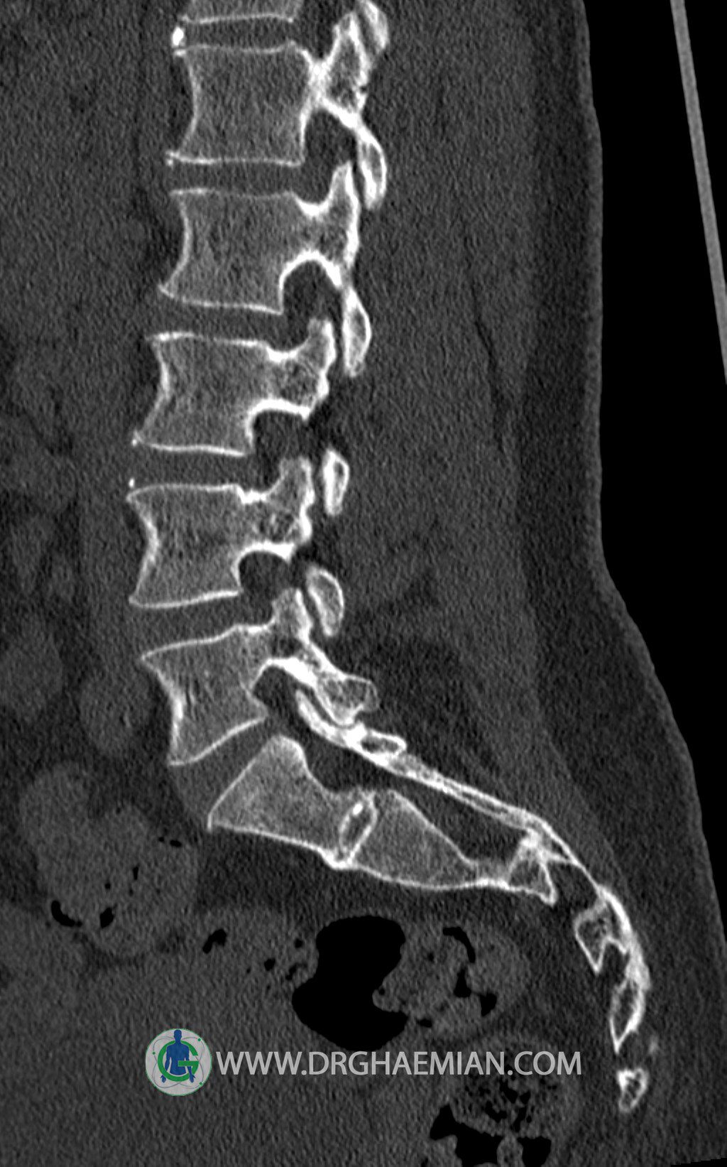 سی تی اسکن اسپيرال ازسطح تحتاني T12 تا انتهاي ساکروم (مولتي ديدکتور 16 با مقاطع ظريف و بازسازي هاي ساژيتال و کرونال و 3D):