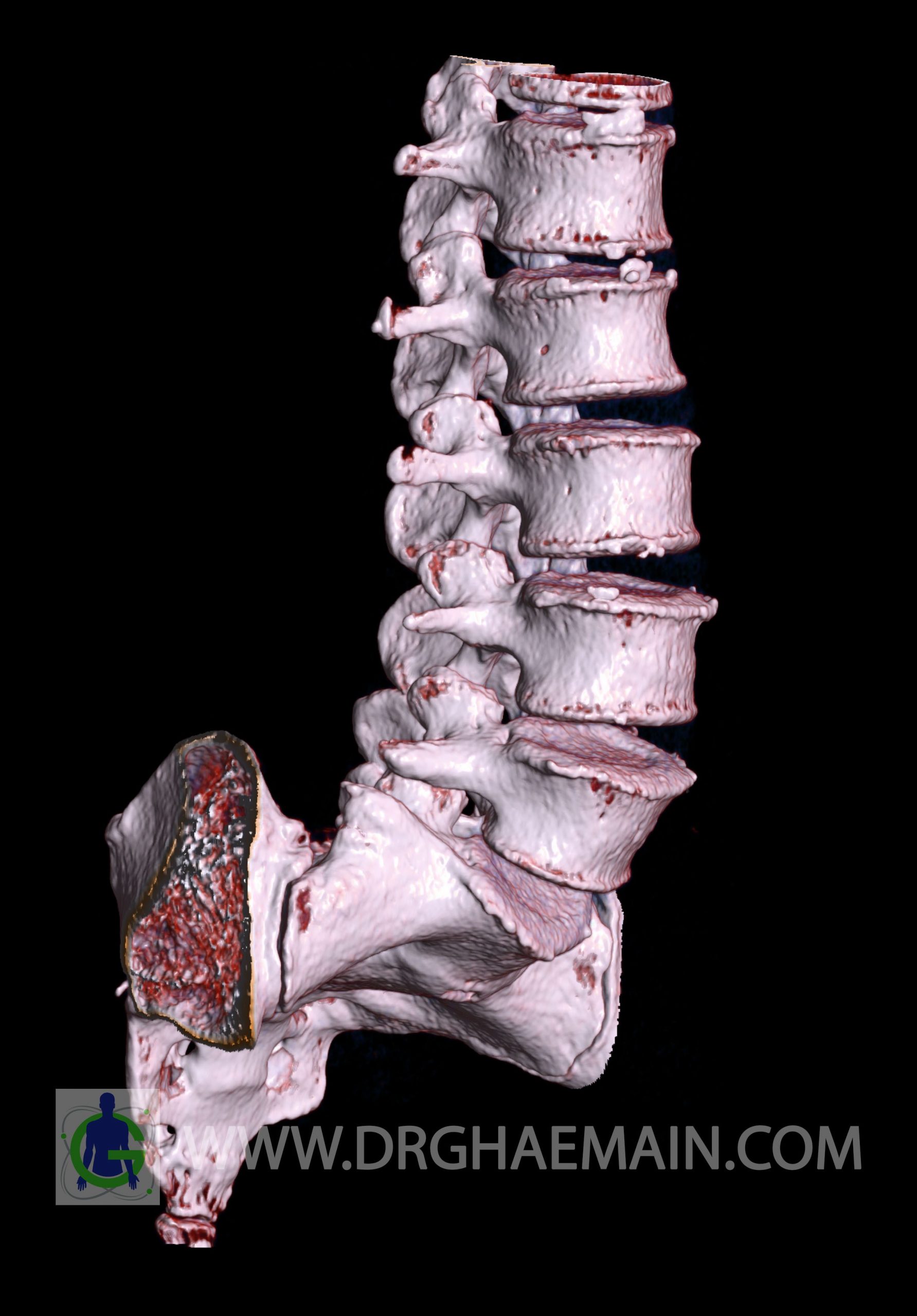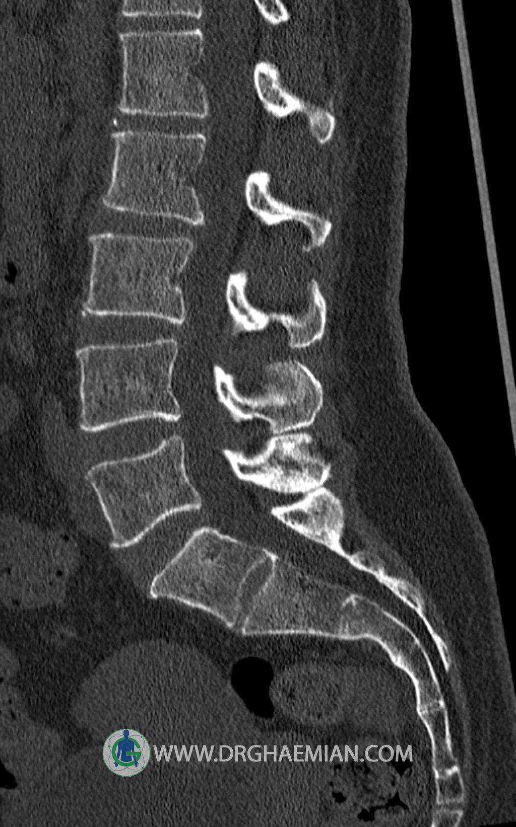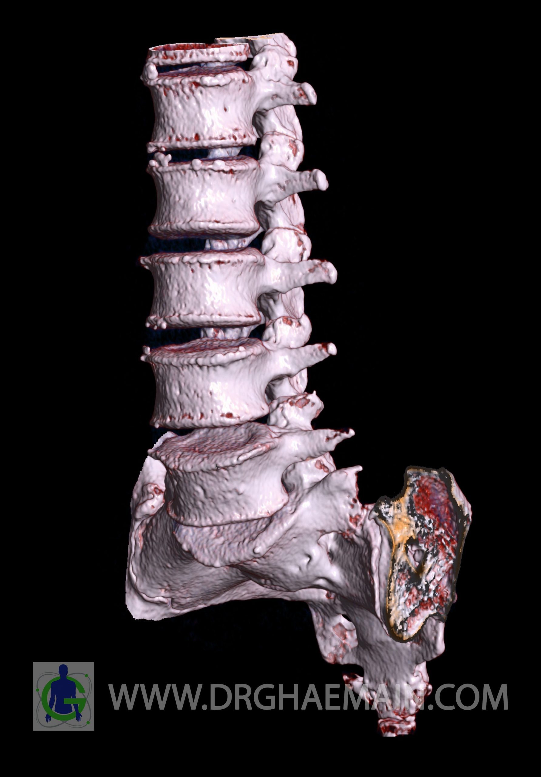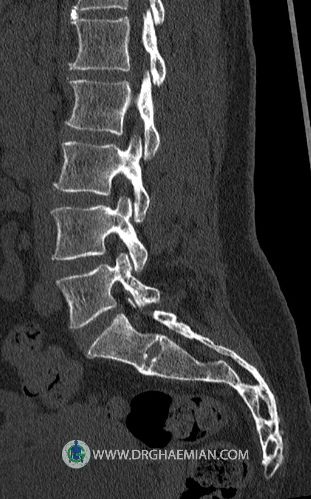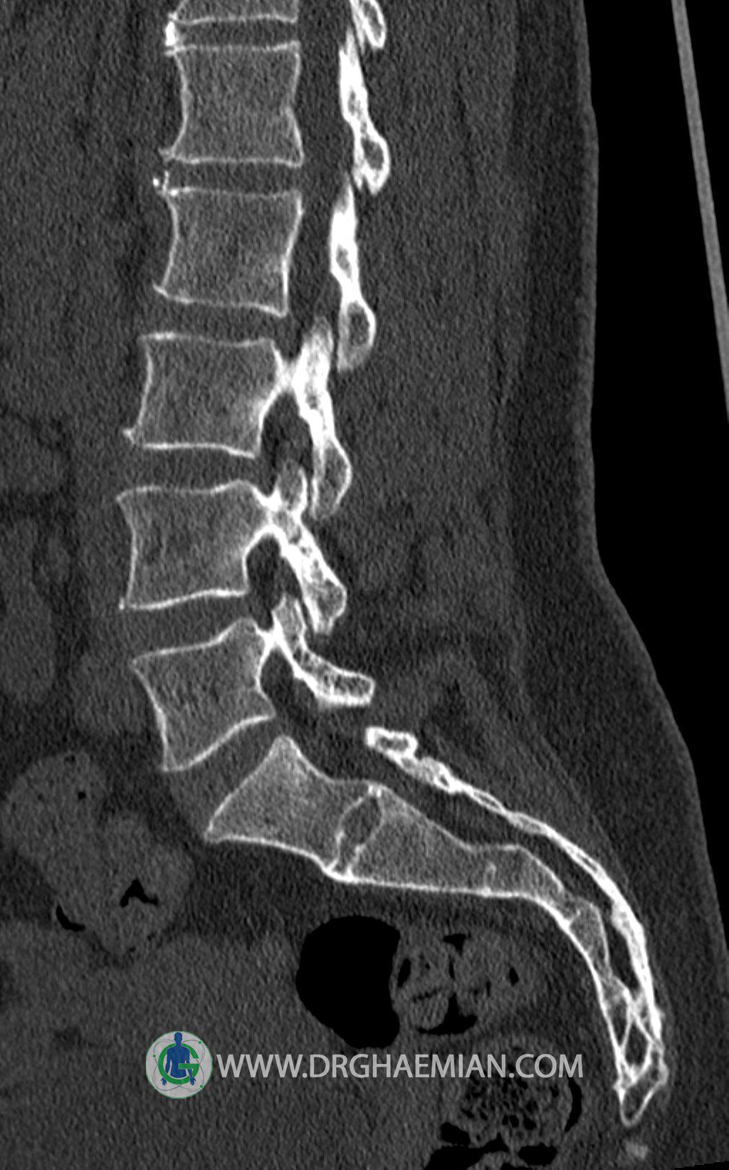 سی تی اسکن اسپيرال ازسطح تحتاني T12 تا انتهاي ساکروم (مولتي ديدکتور 16 با مقاطع ظريف و بازسازي هاي ساژيتال و کرونال و 3D):