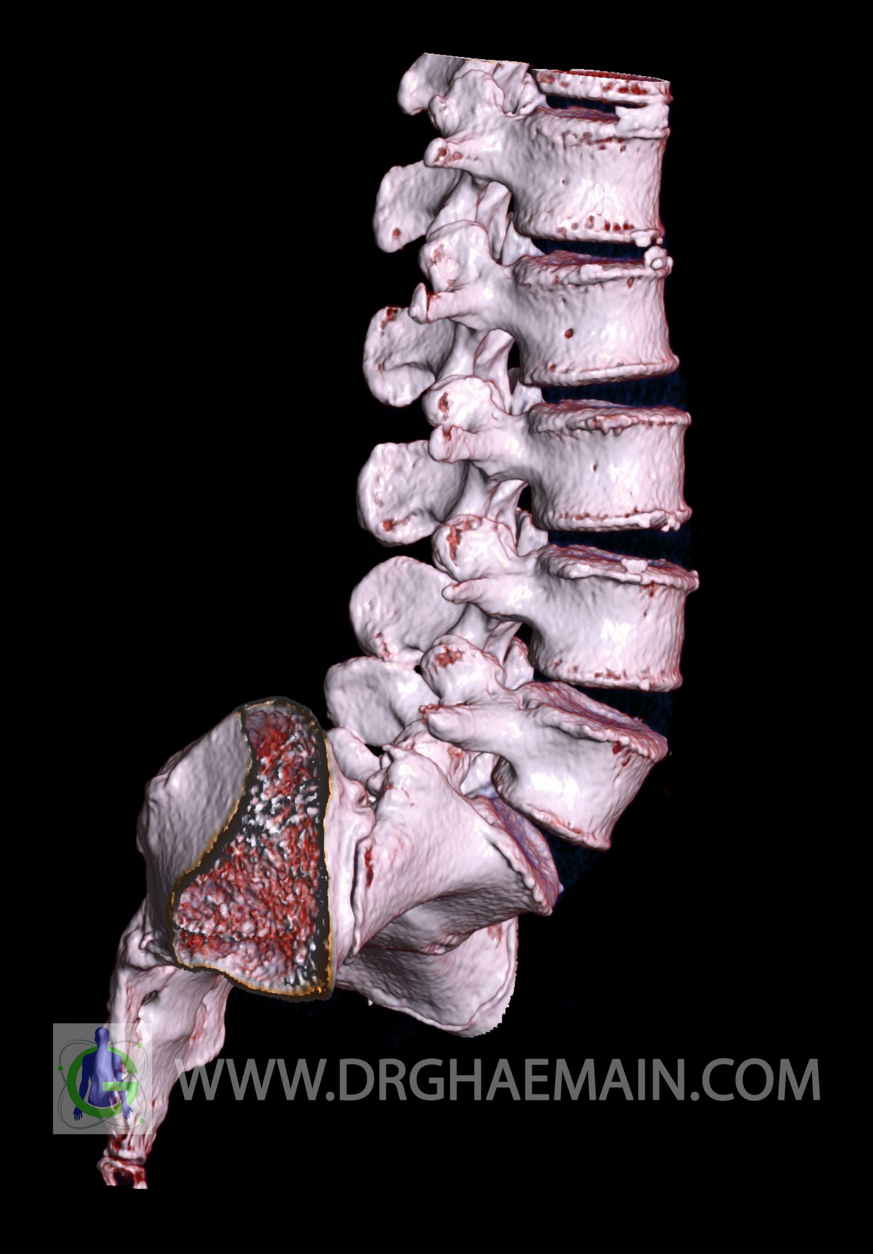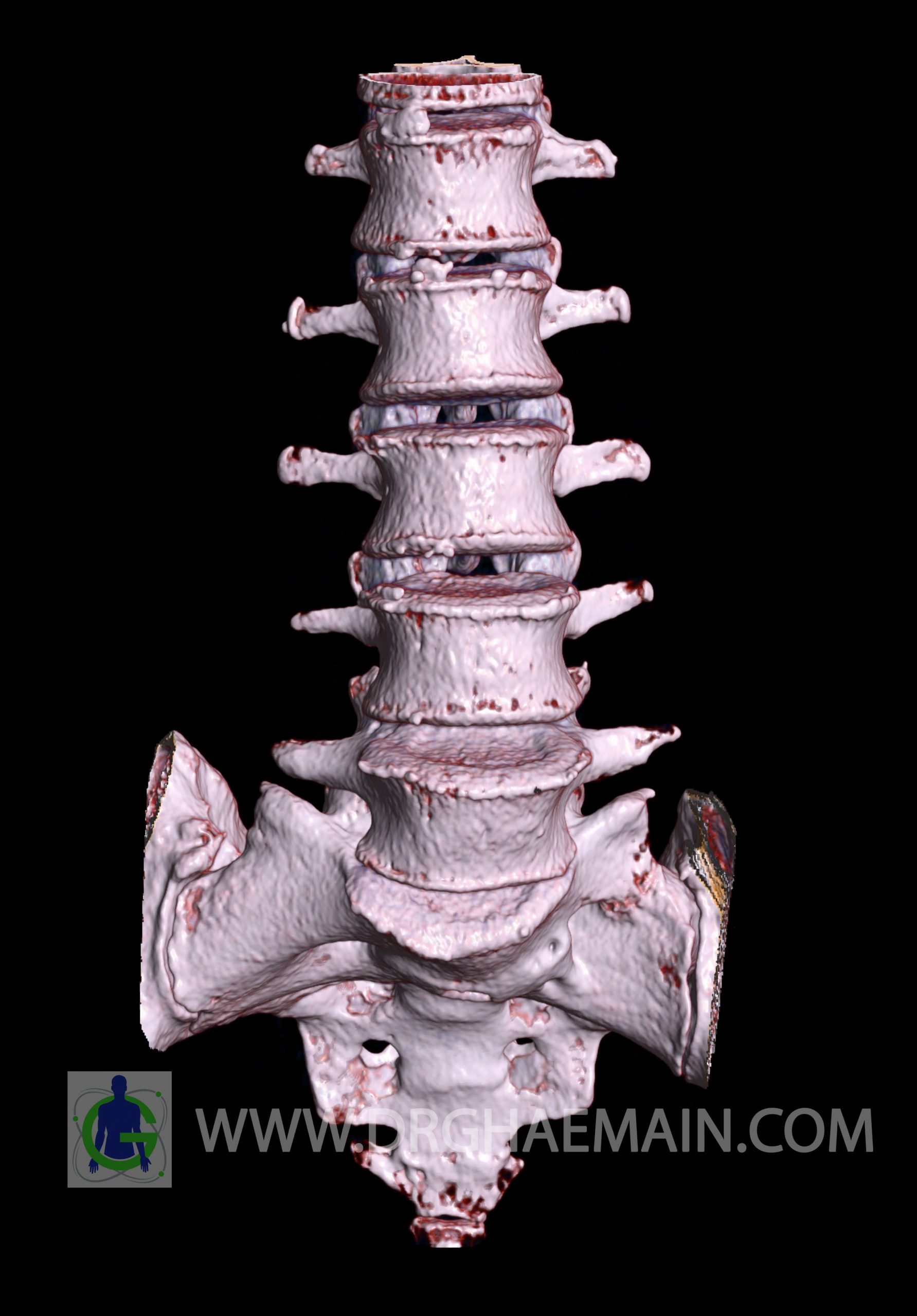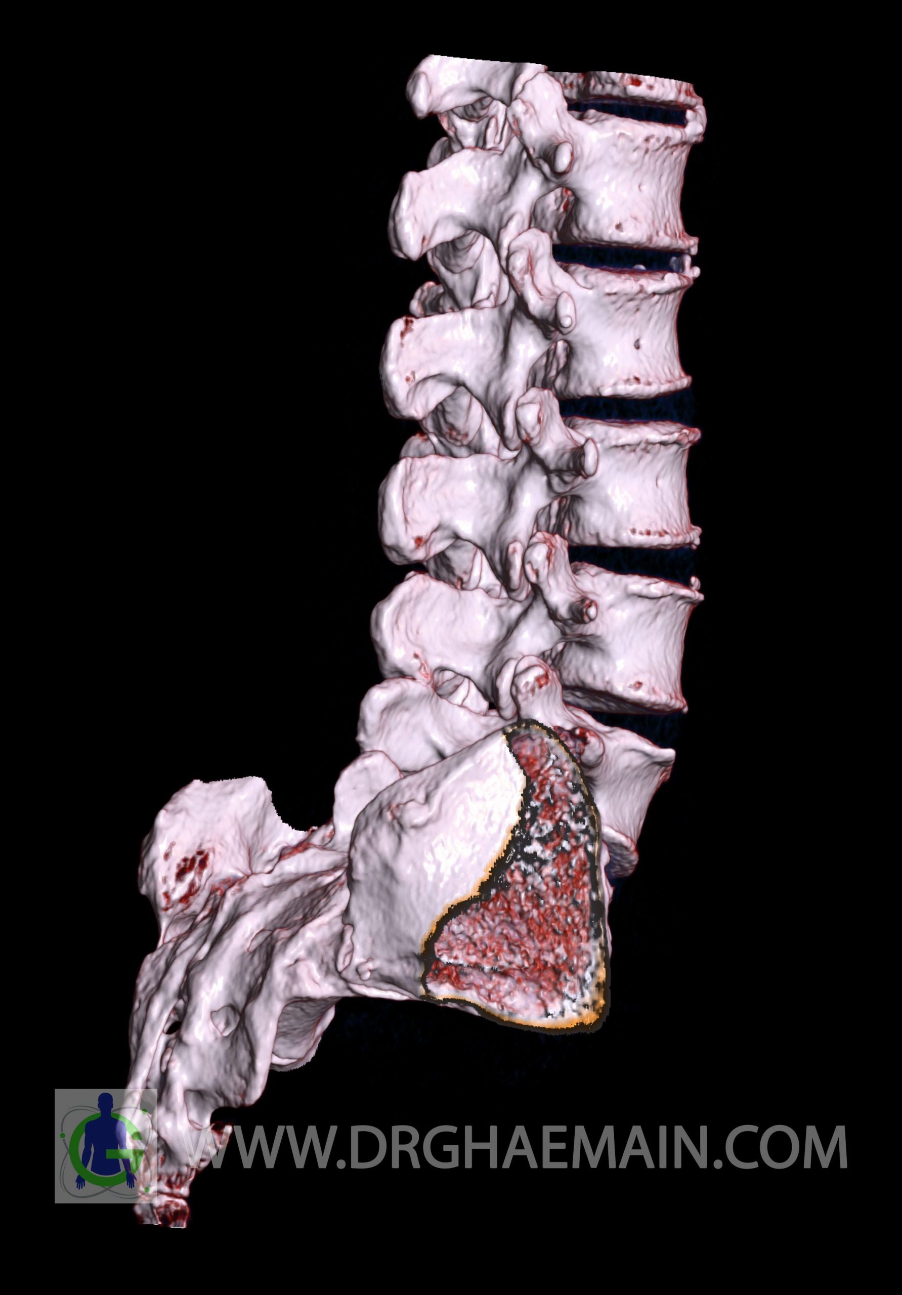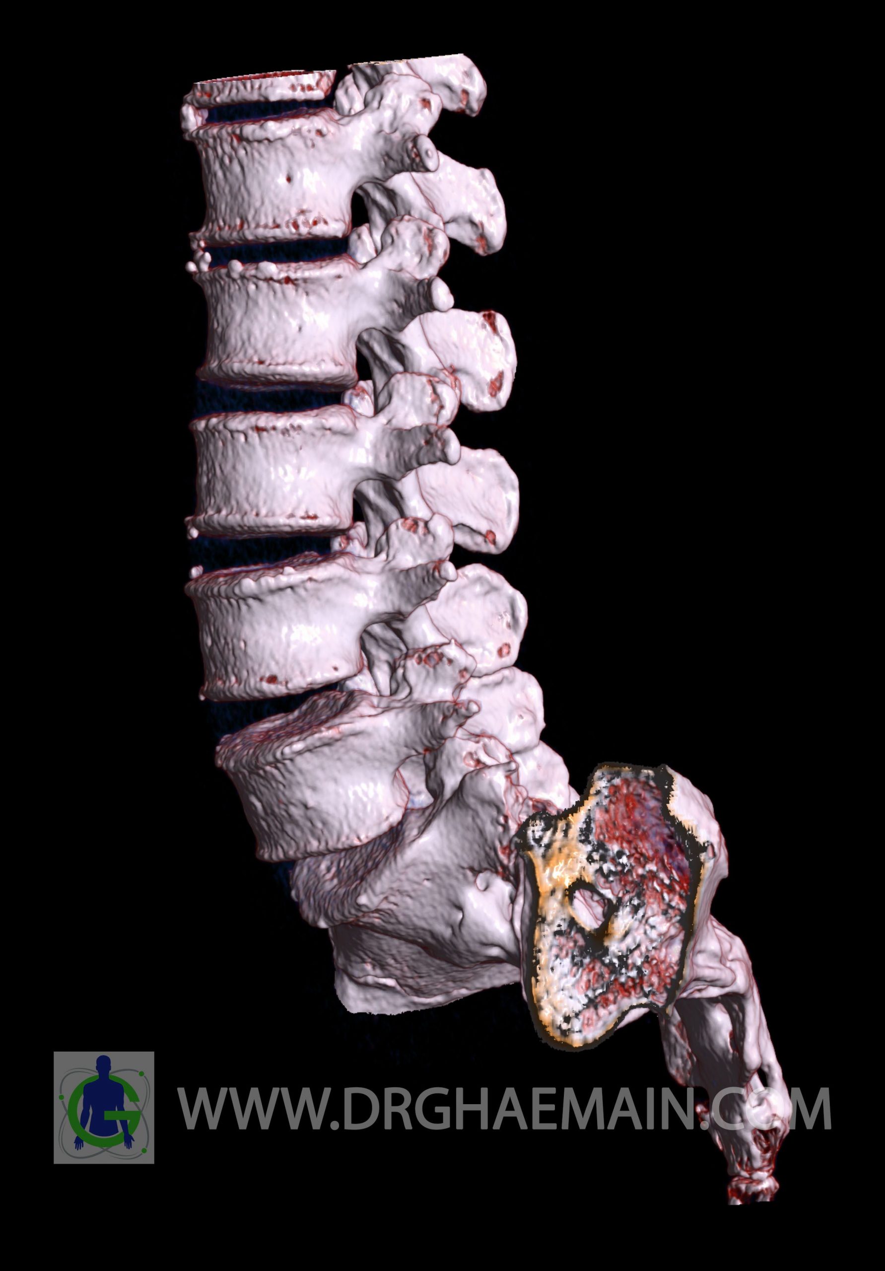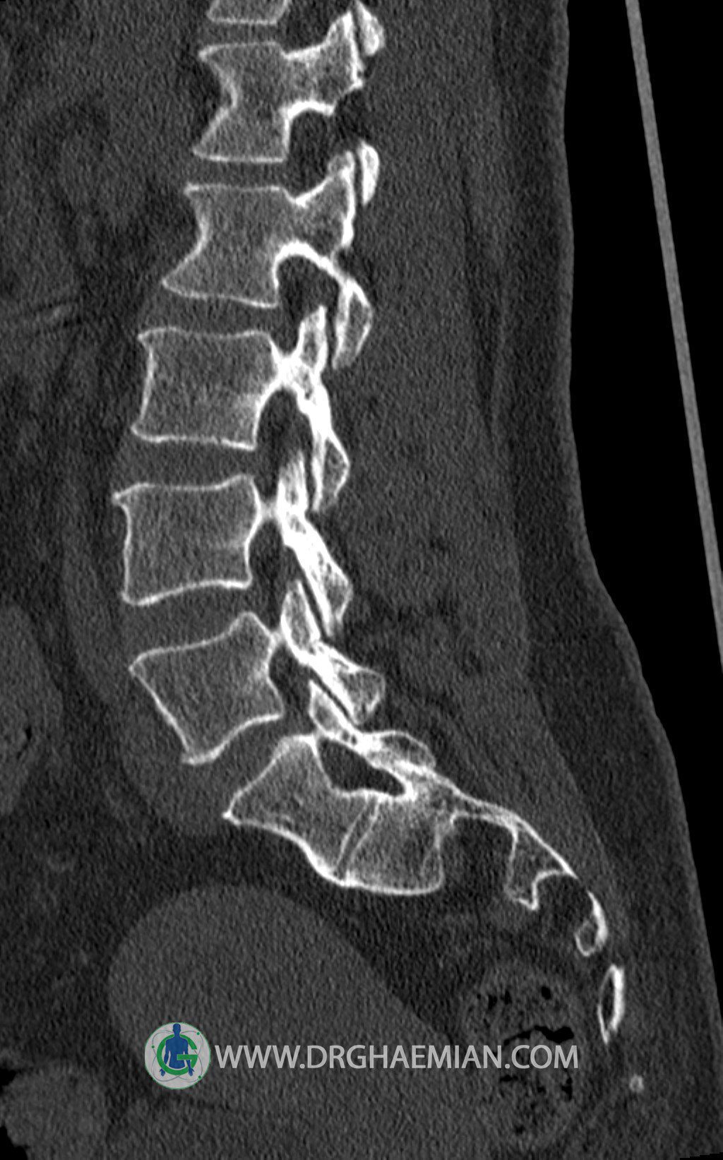 سی تی اسکن اسپيرال ازسطح تحتاني T12 تا انتهاي ساکروم (مولتي ديدکتور 16 با مقاطع ظريف و بازسازي هاي ساژيتال و کرونال و 3D):