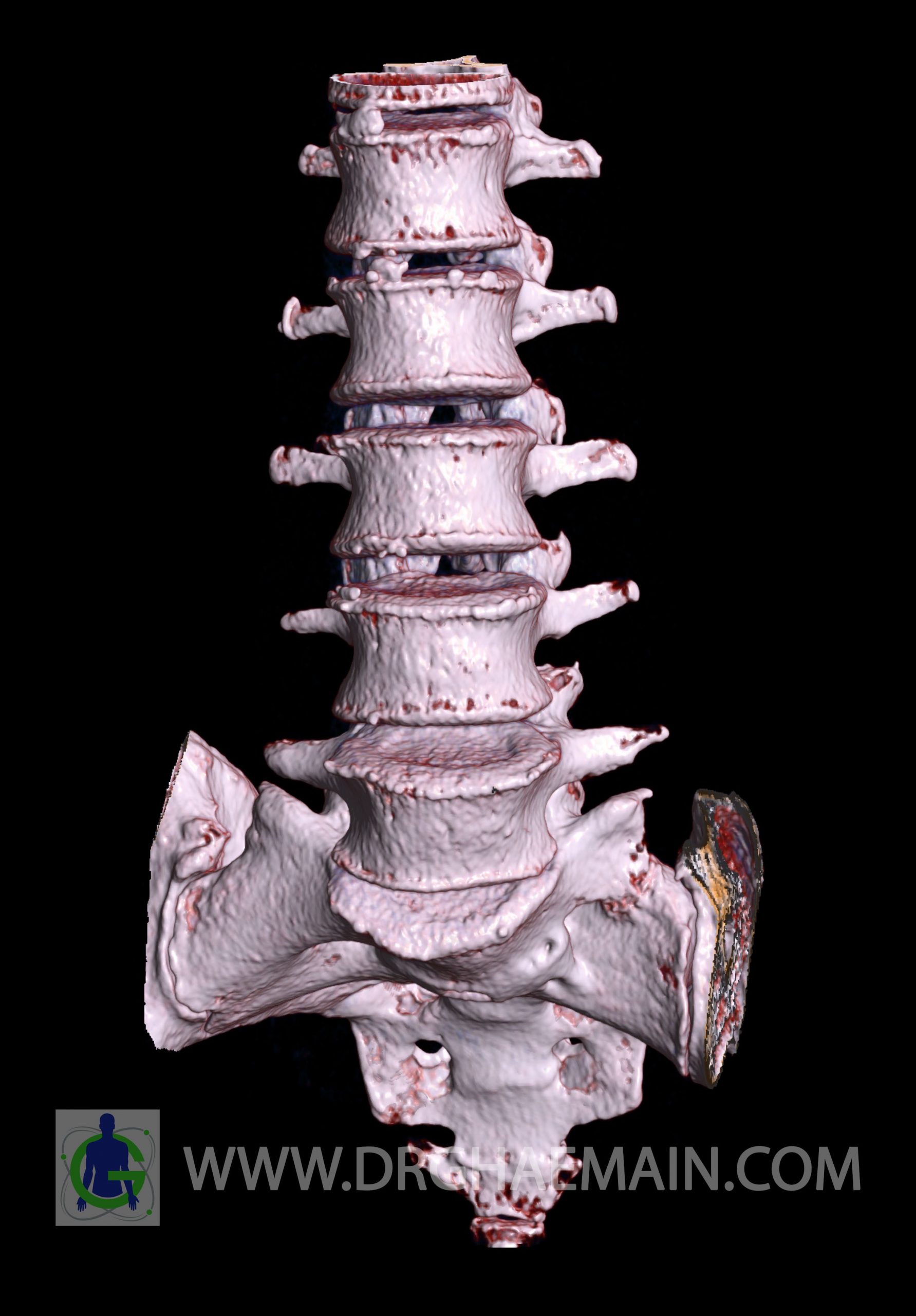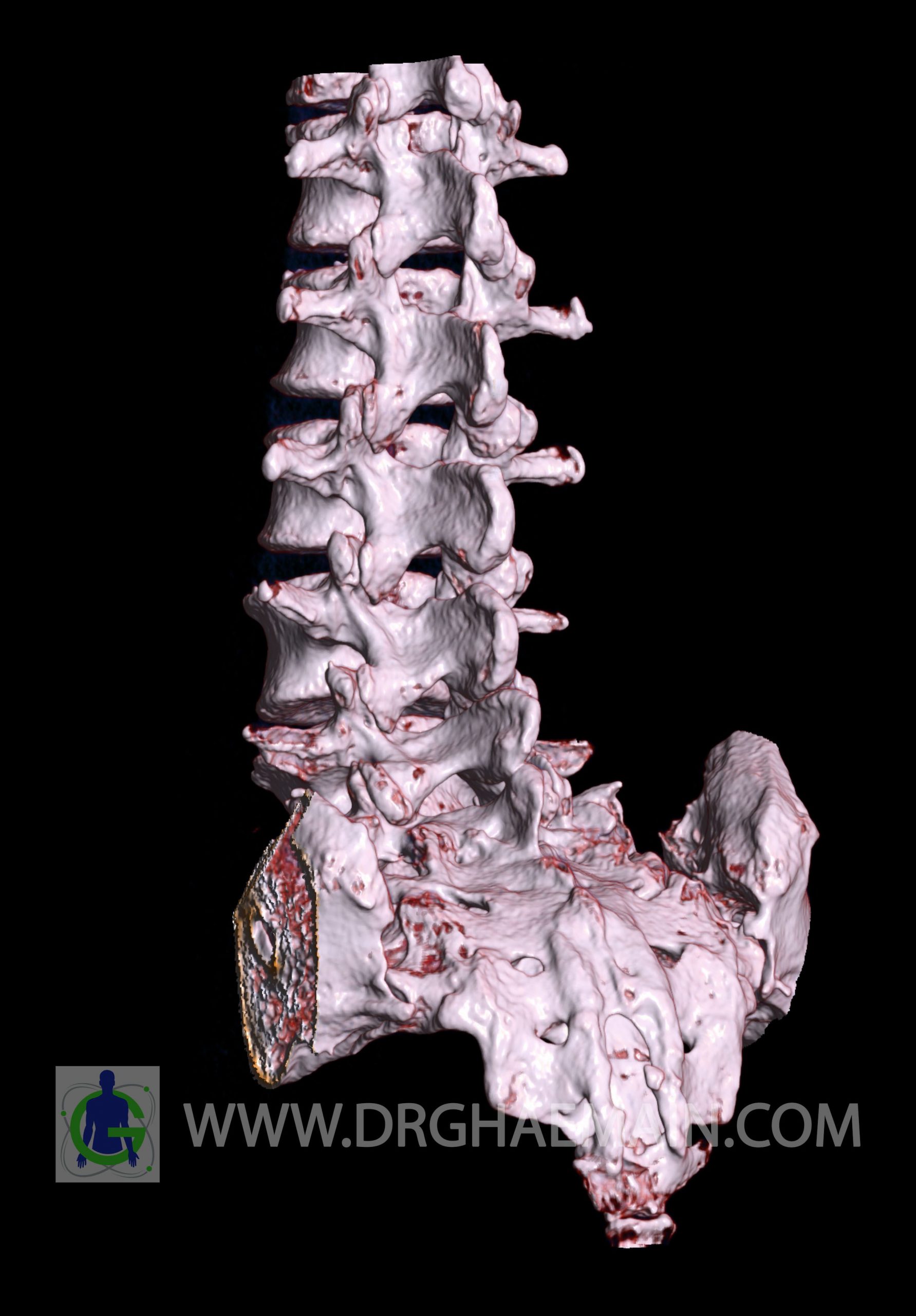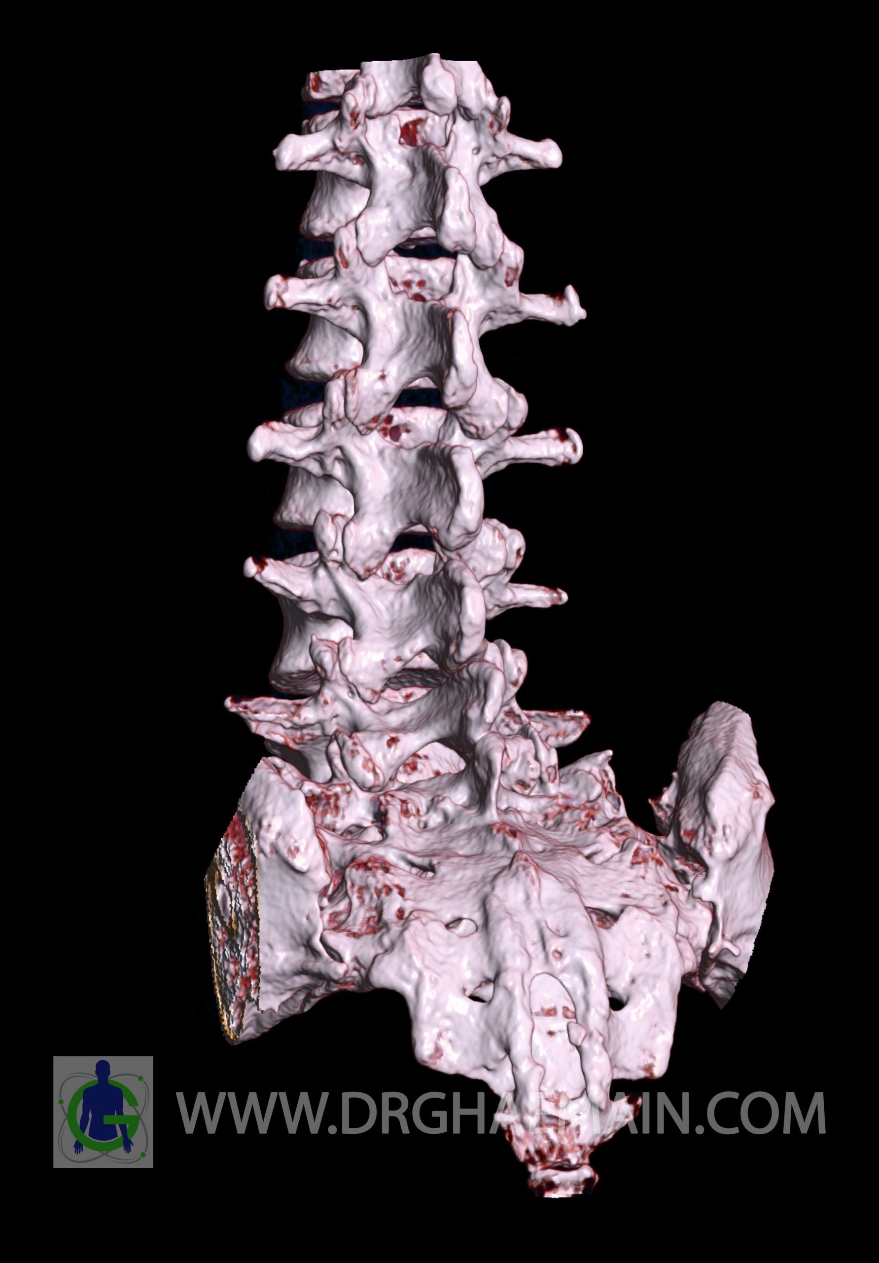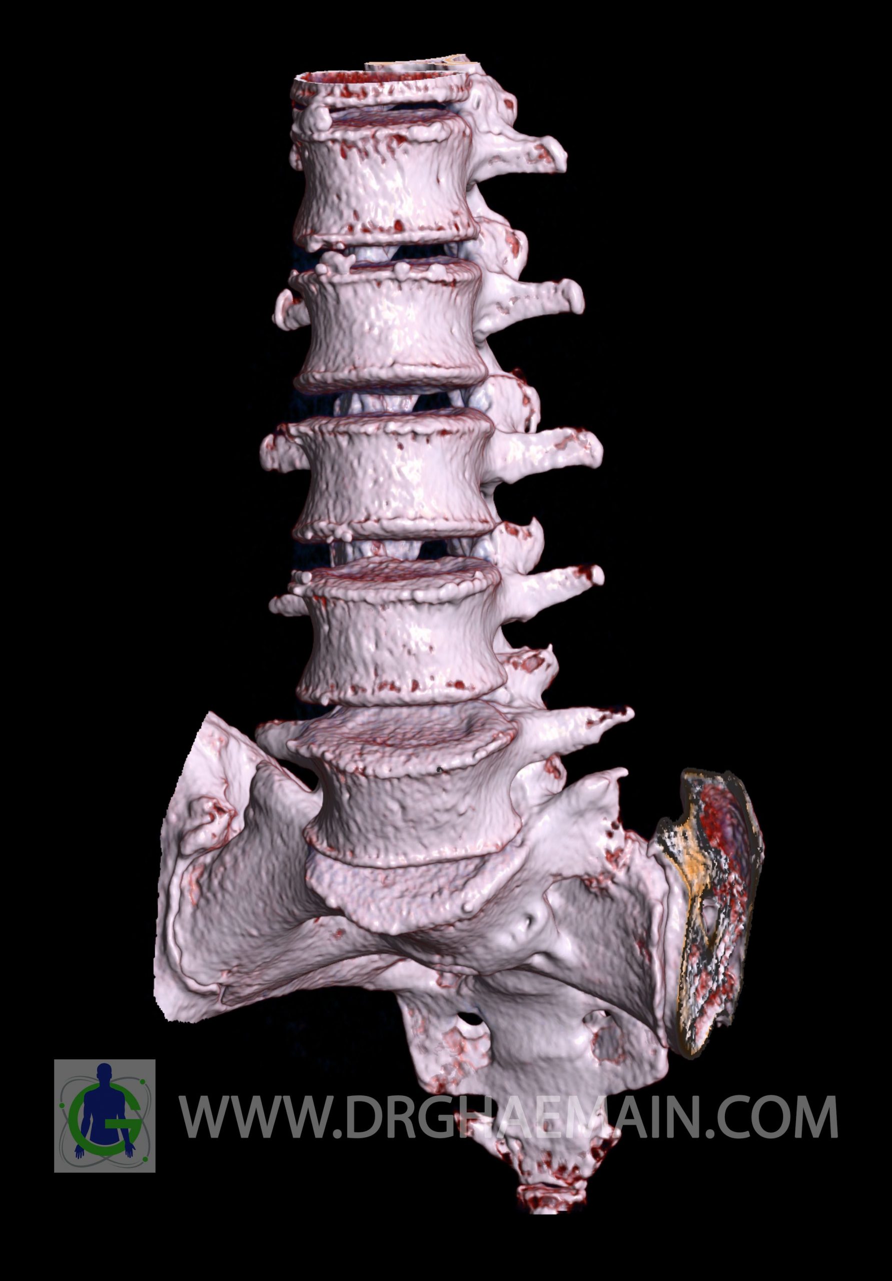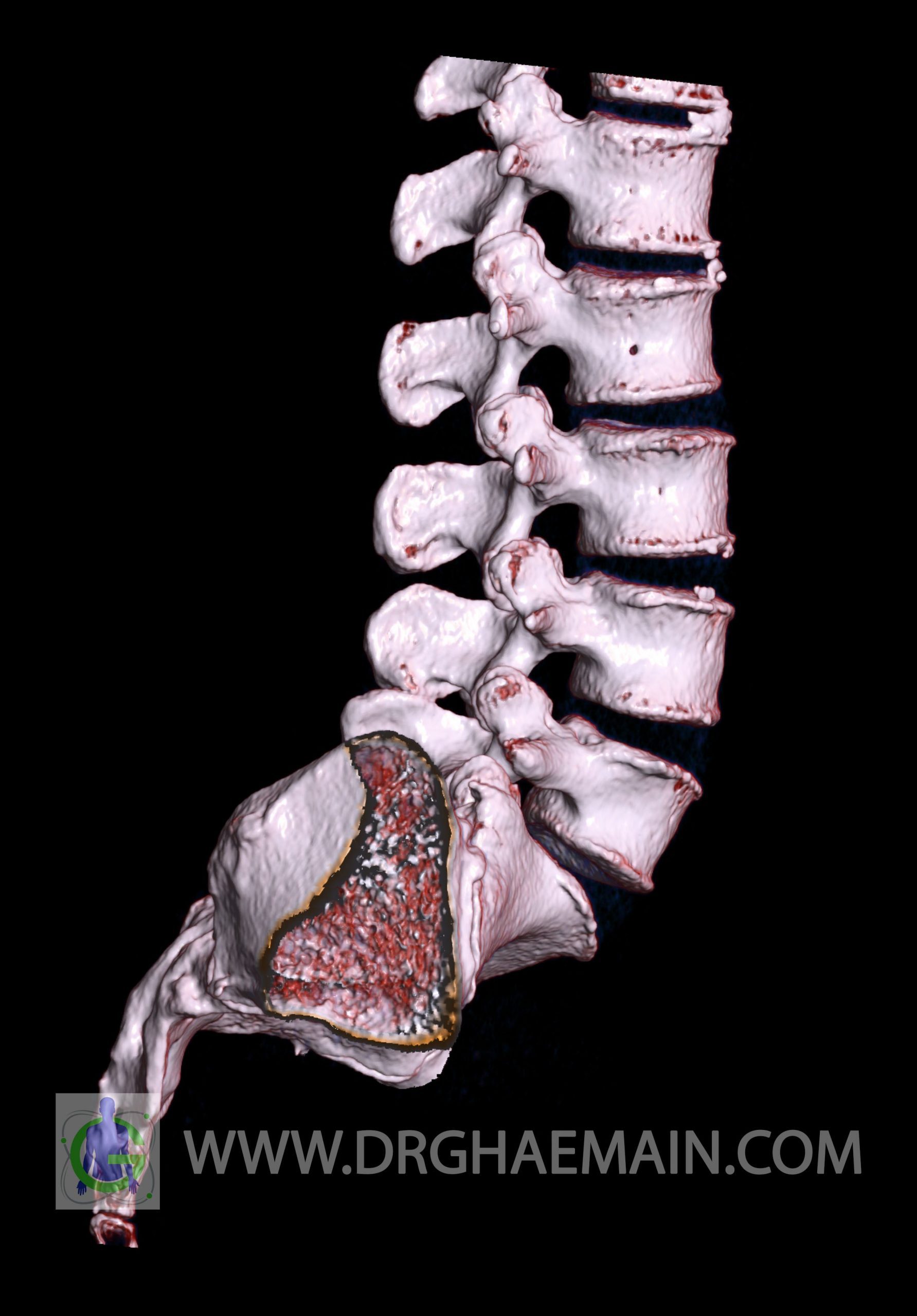 سی تی اسکن اسپيرال ازسطح تحتاني T12 تا انتهاي ساکروم (مولتي ديدکتور 16 با مقاطع ظريف و بازسازي هاي ساژيتال و کرونال و 3D):