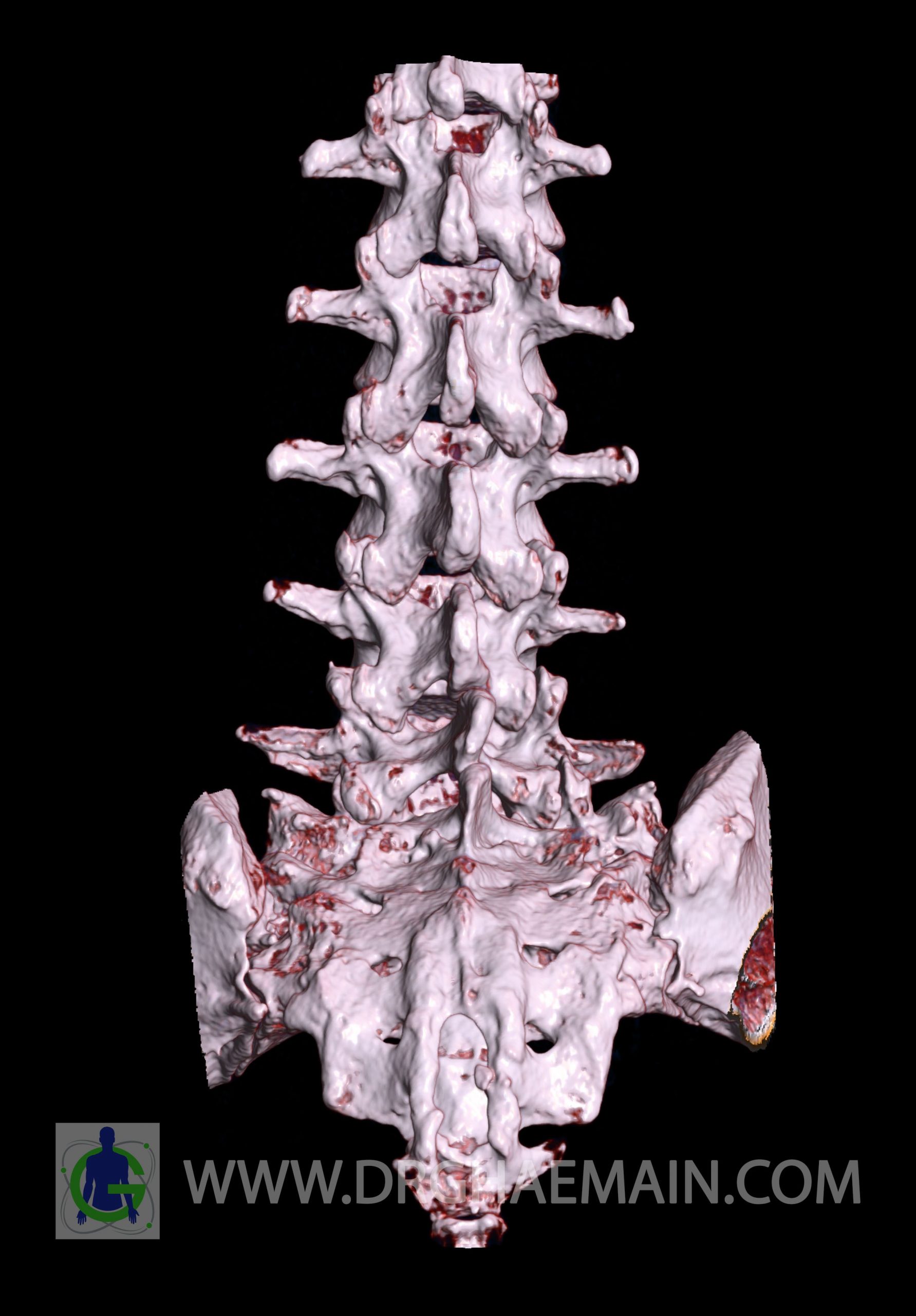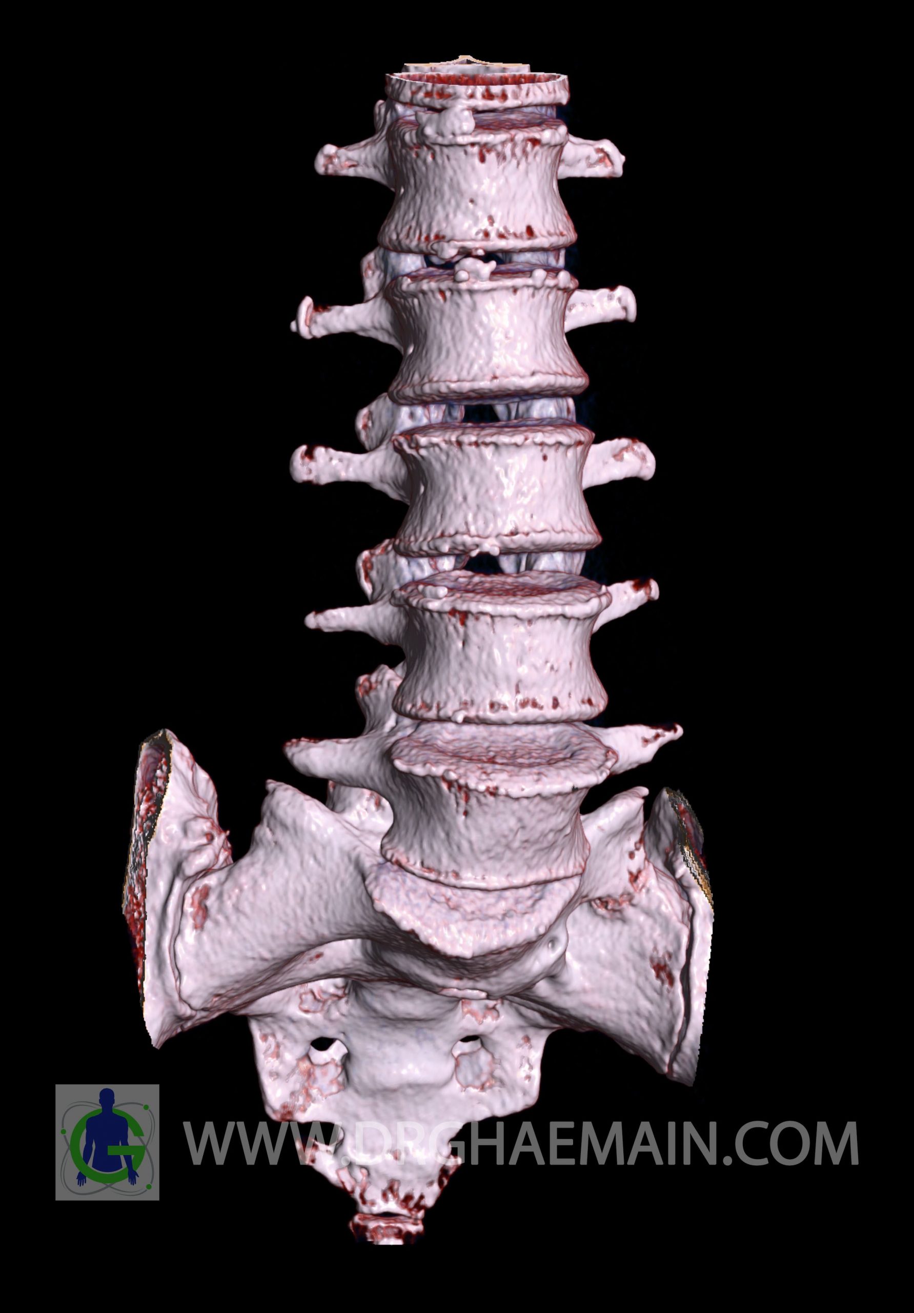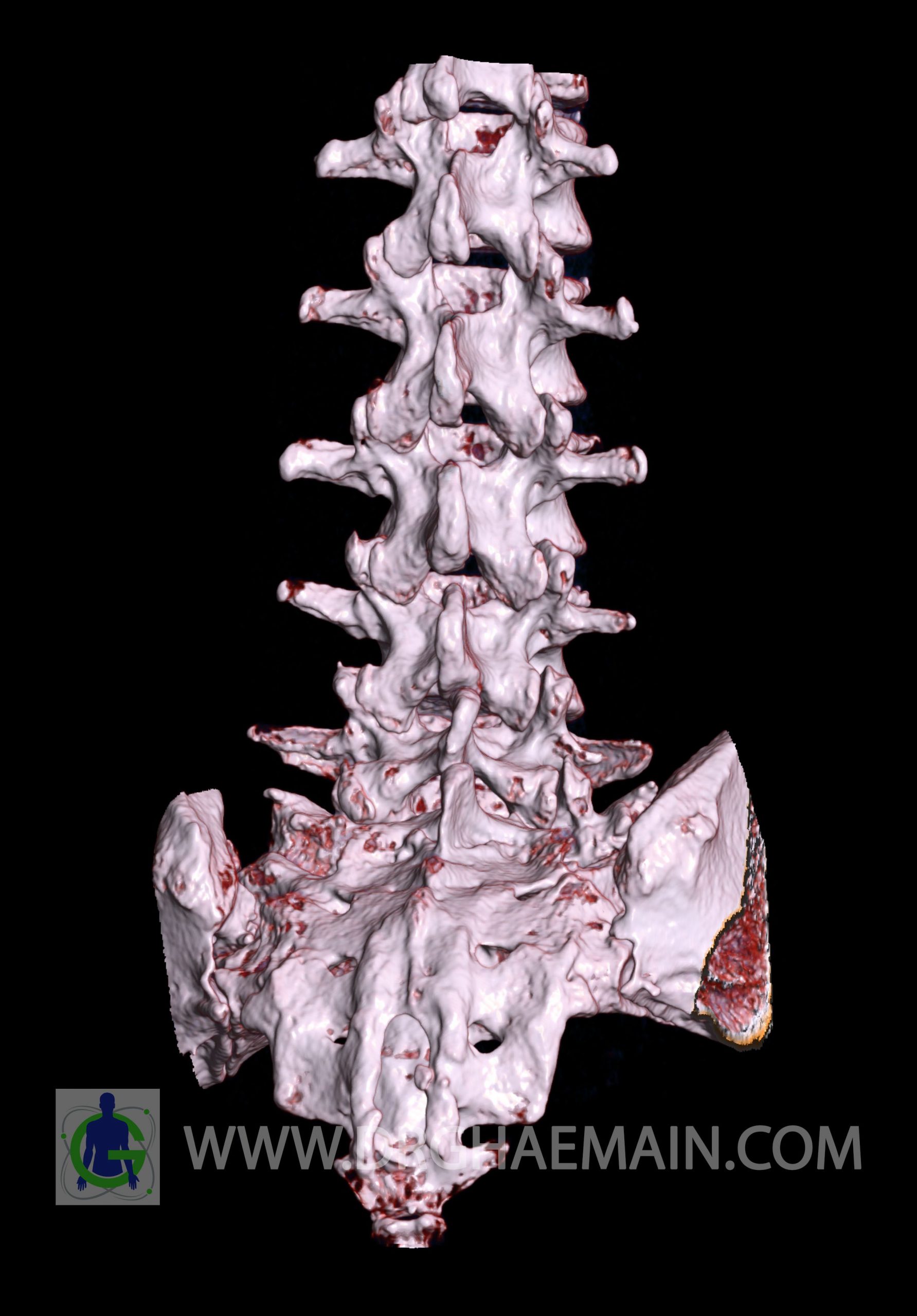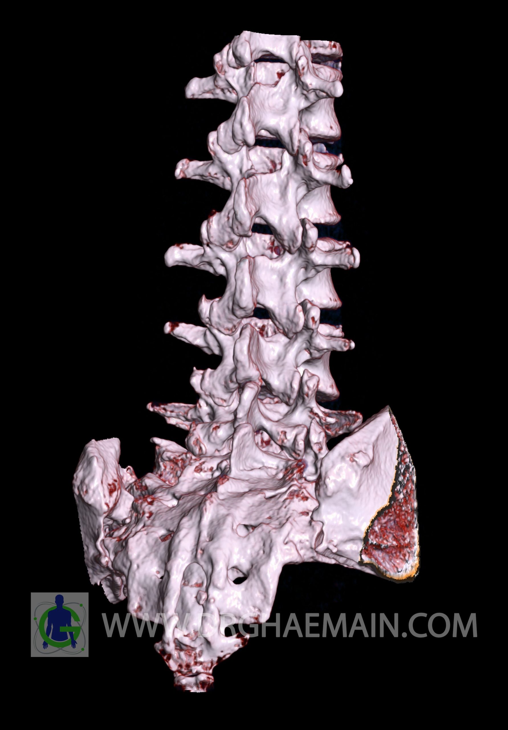 سی تی اسکن ستون فقرات پایینی تصاویری عرضی از ناحیه پایین ستون فقرات ایجاد می کند. این تصویربرداری از تششعات برای ایجاد تصاویر استفاده می کند. در این کیس هیپرلوردوز کمر (کاوپشتی) بیمار مشاهده می شود.