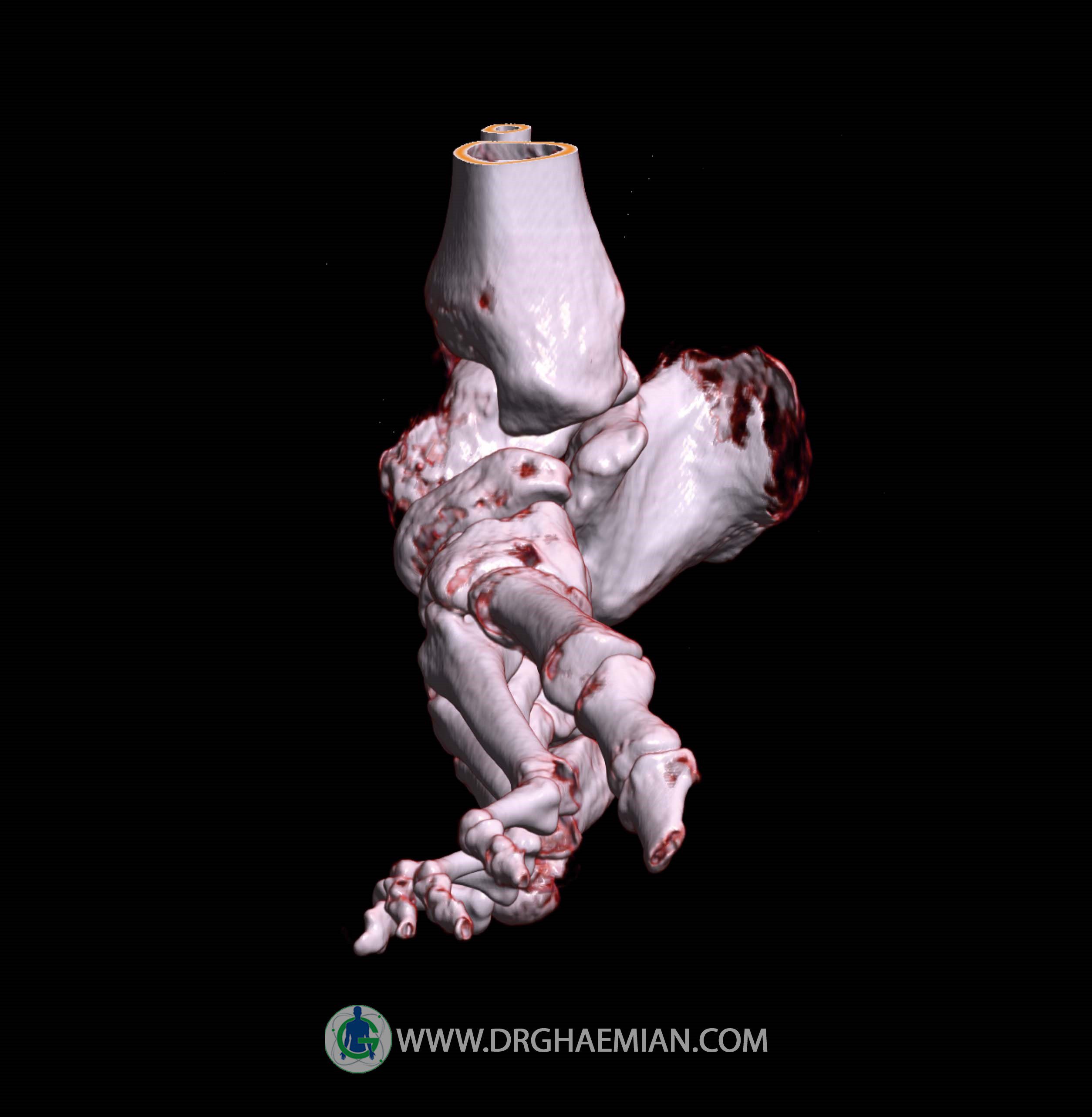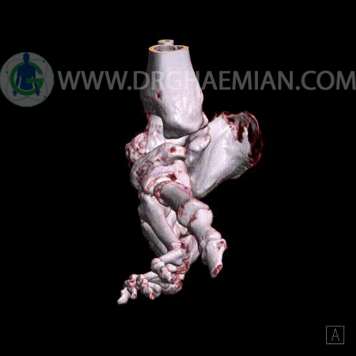 سي تي اسکن مچ پاي راست (مولتي ديدکتور 16 با مقاطع ظريف و بازسازي هاي ساژيتال و کرونال و 3D):