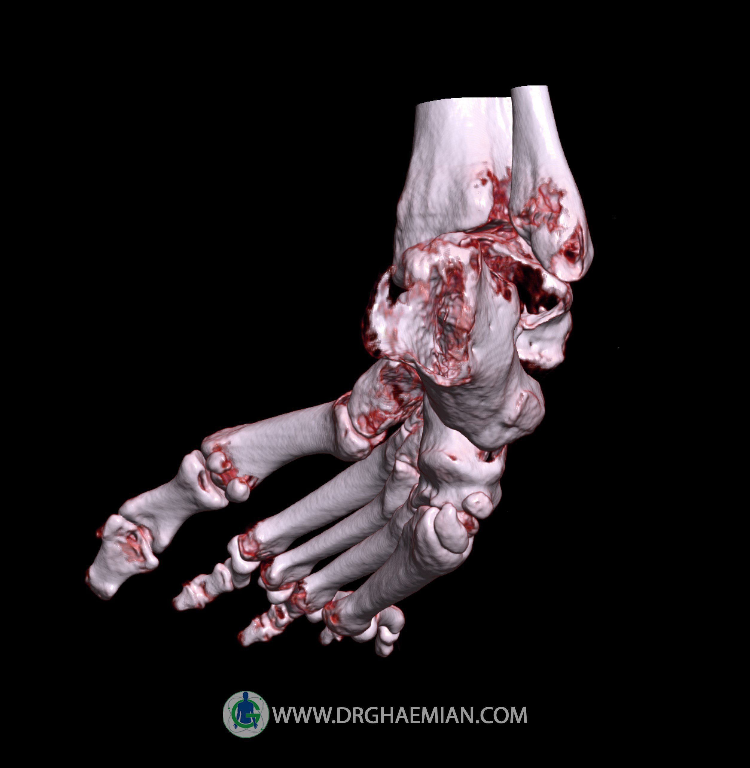 FX ، ضایعه لیتیک و اسکلروتیک در ساير استخوان های مچ و کف پاي مشهود نیست.