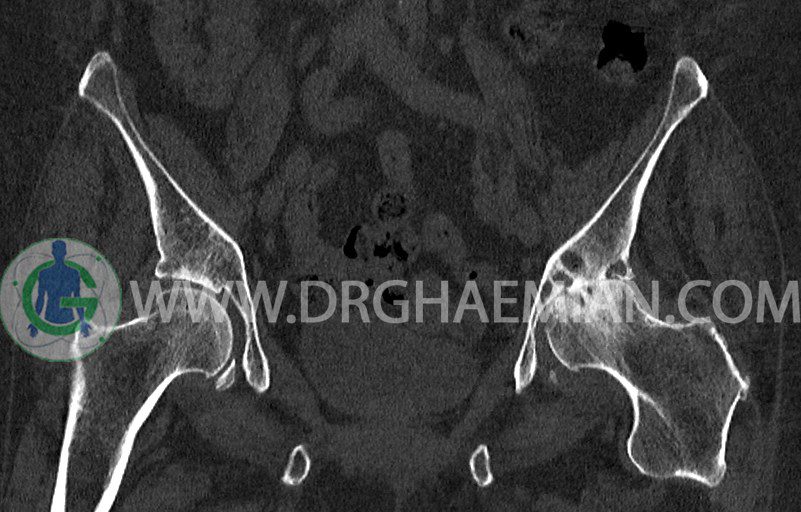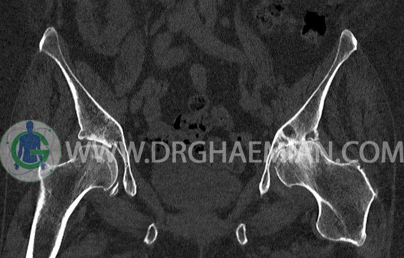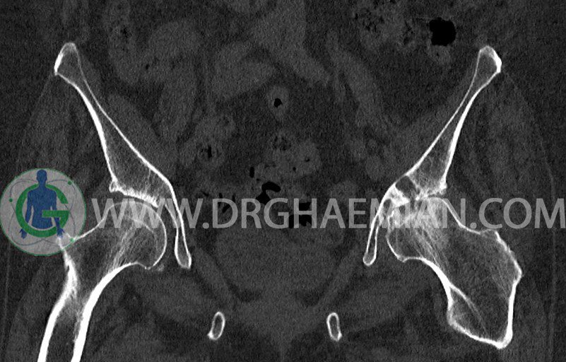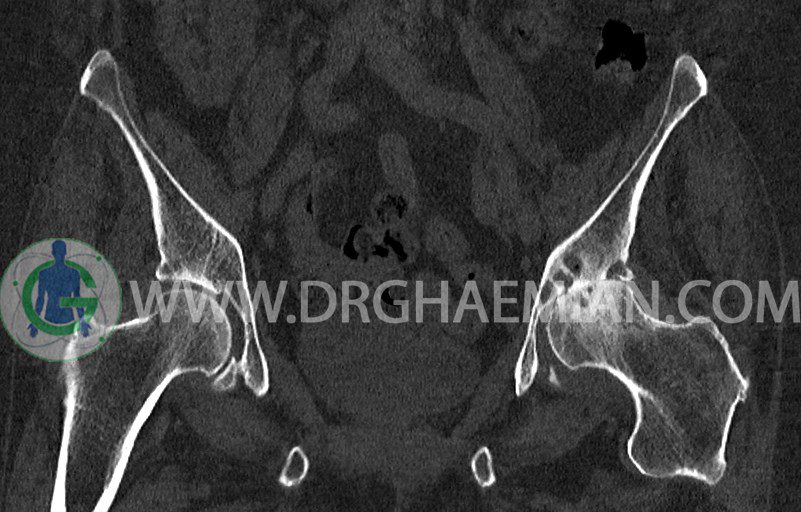 سي تي اسکن مفاصل هيپ (مولتي ديدکتور 16 با مقاطع ظريف و بازسازي هاي ساژيتال و کرونال و 3D):