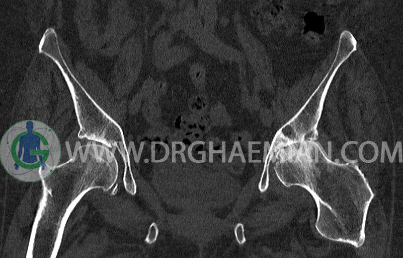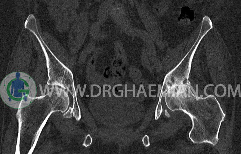 راموس فوقانی و تحتانی پوبیس ، سر و گردن فمور در دوطرف و استابولوم در دوطرف نرمال اند.