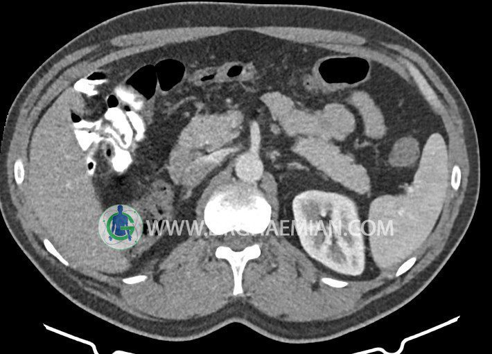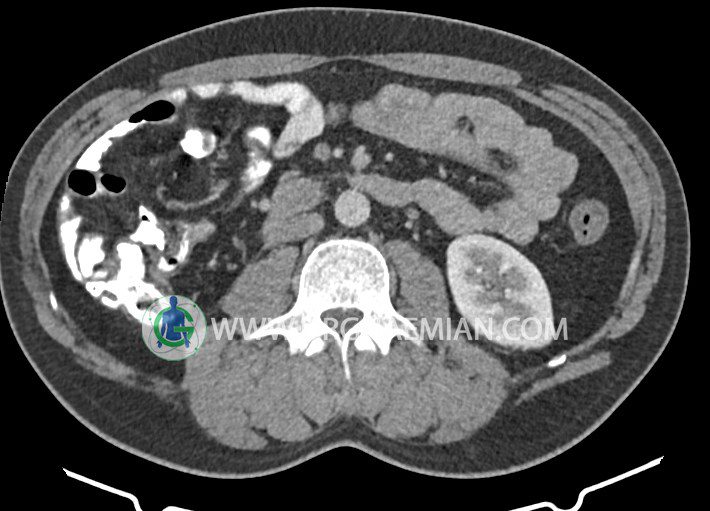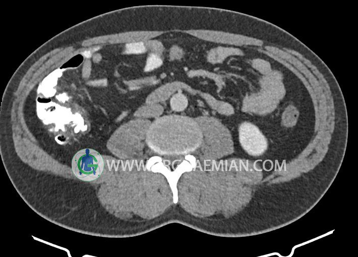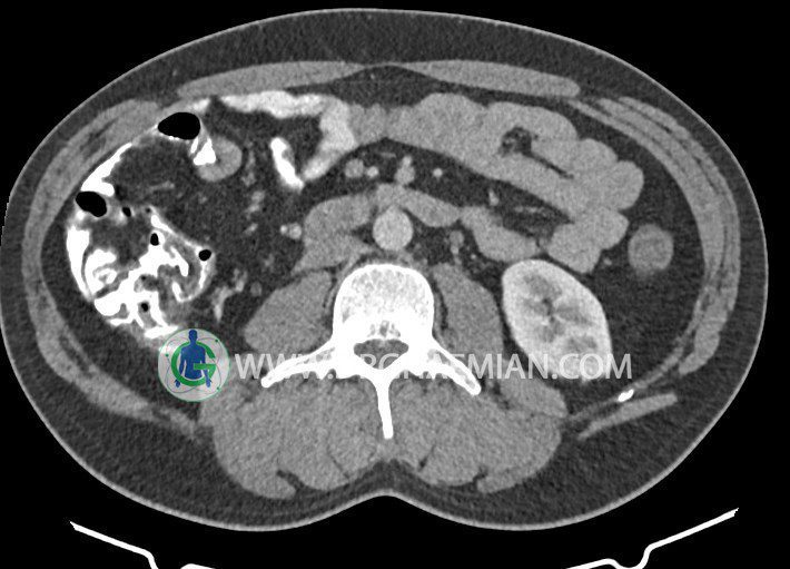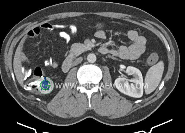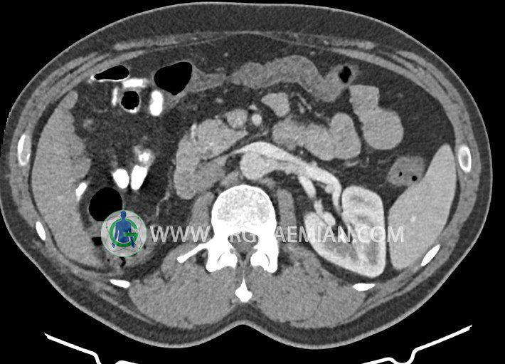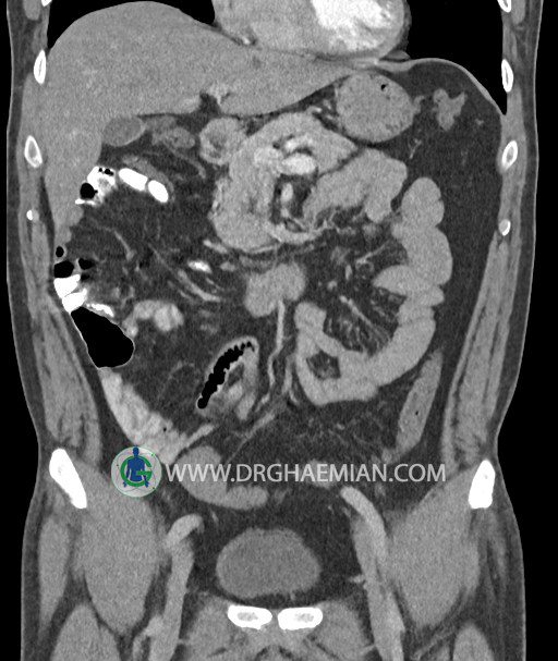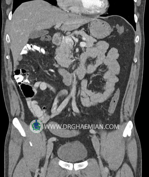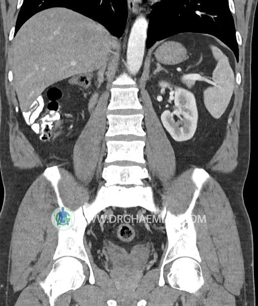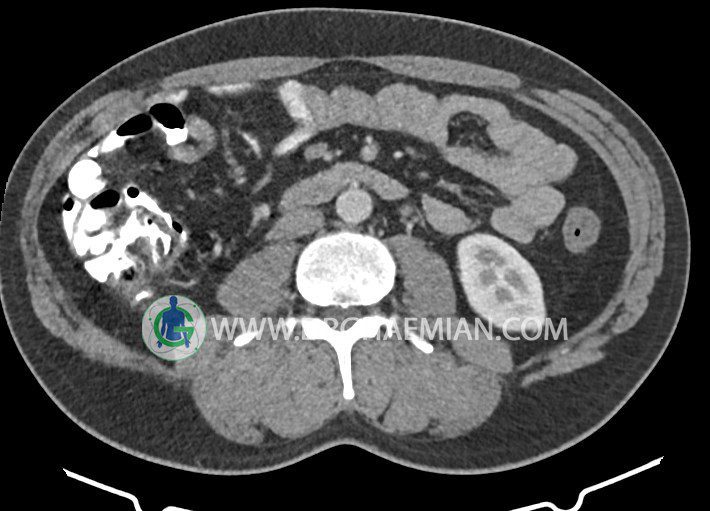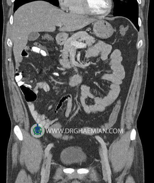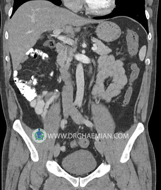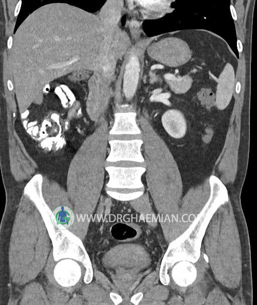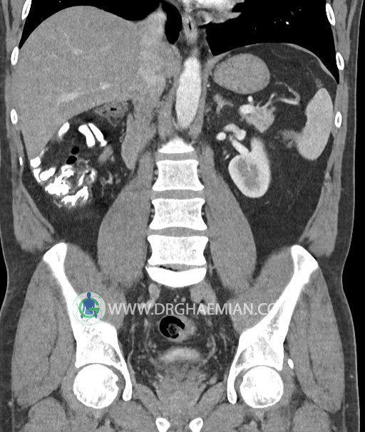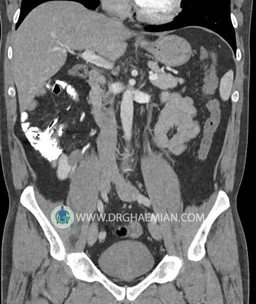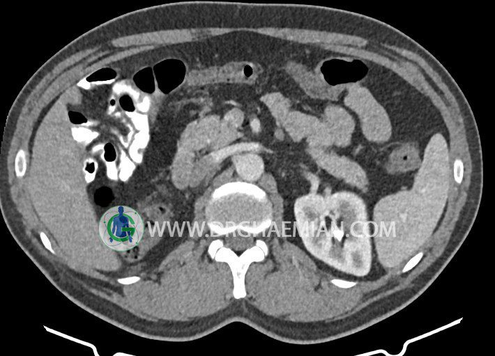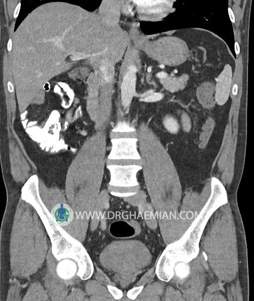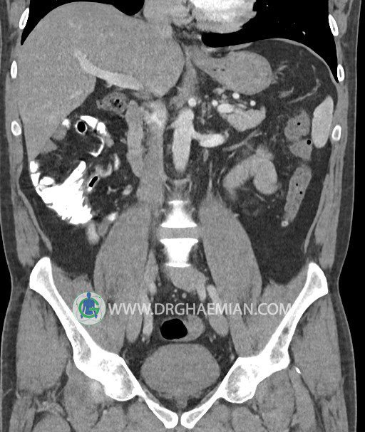 در سي تي اسکن اسپيرال شکم و لگن باو بدون کنتراست خوراکی و وريدی (مولتي ديدکتور 16 با مقاطع ظريف و بازسازي هاي ساژيتال و کرونال):