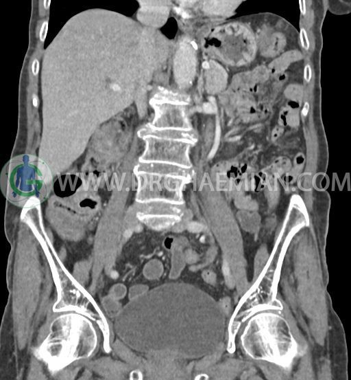 در سی تی اسکن اسپیرال شکم و لگن با و بدون کنتراست خوراکی و وریدی (مولتی دیدکتور 16 با مقاطع ظریف و بازسازی های ساژیتال و کرونال) :