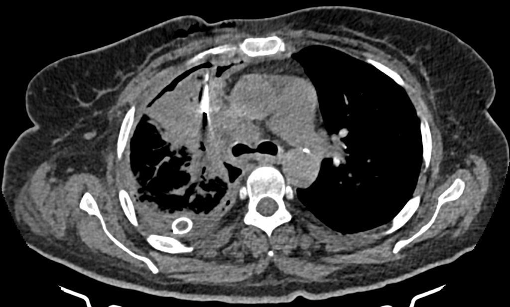 تحت هدايت سي تي اسکن سه نمونه CNB از توده سگمان آنتريور لوب فوقاني راست تهيه شد .