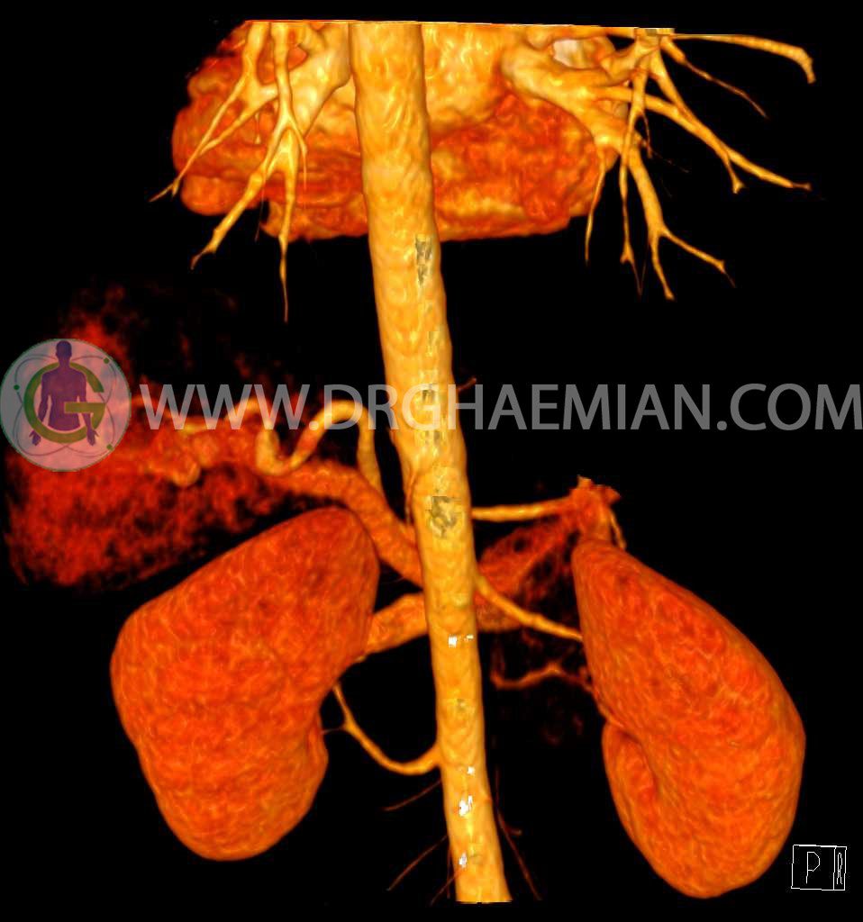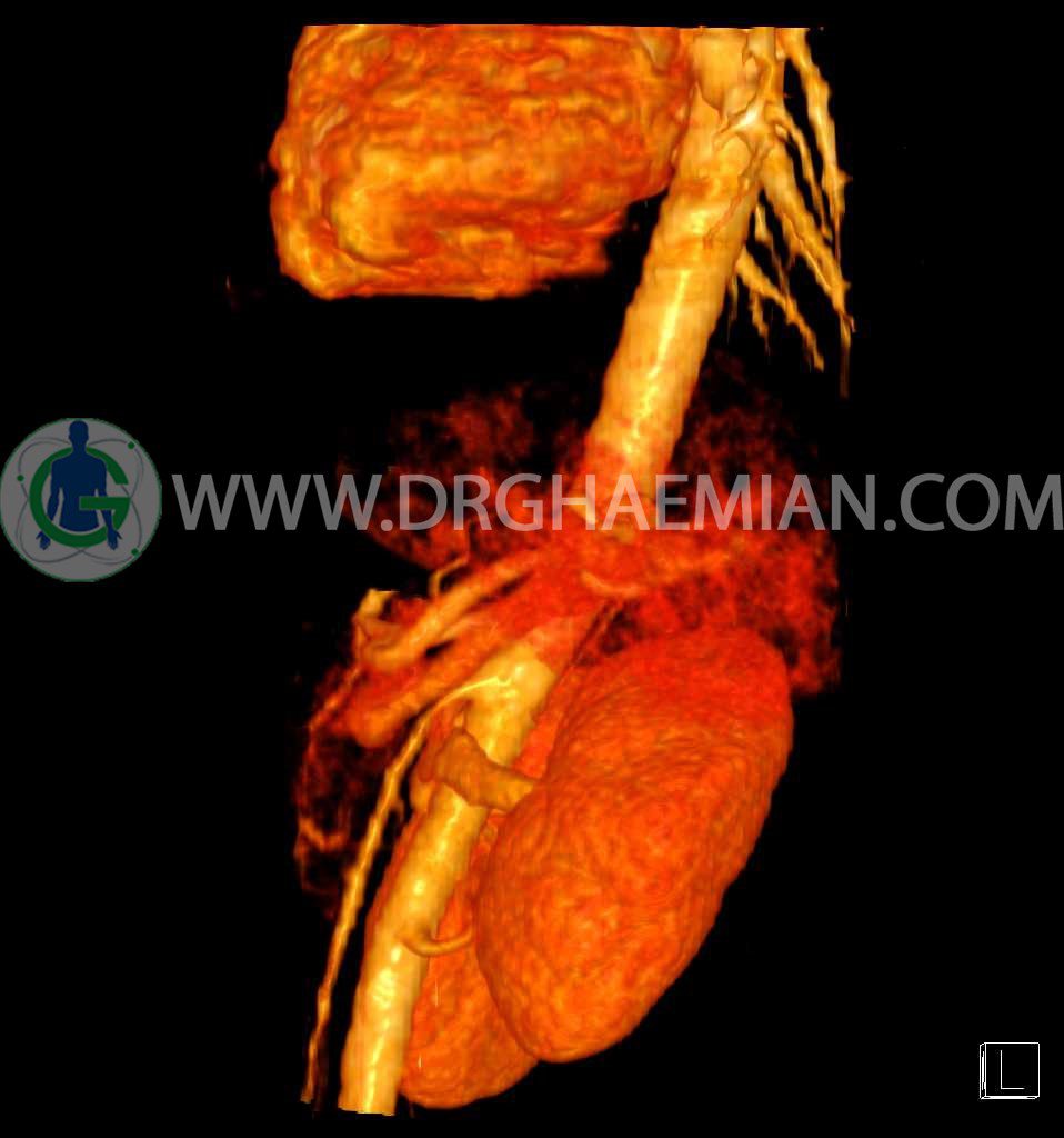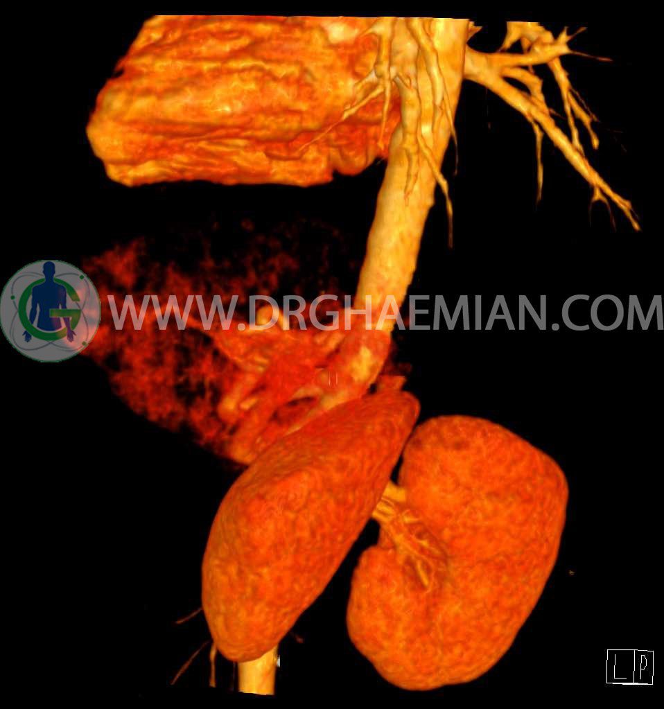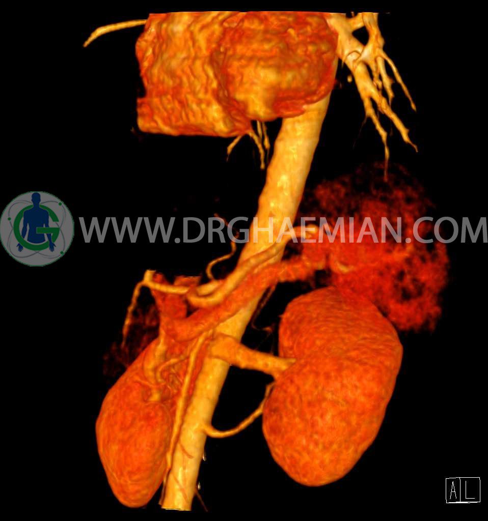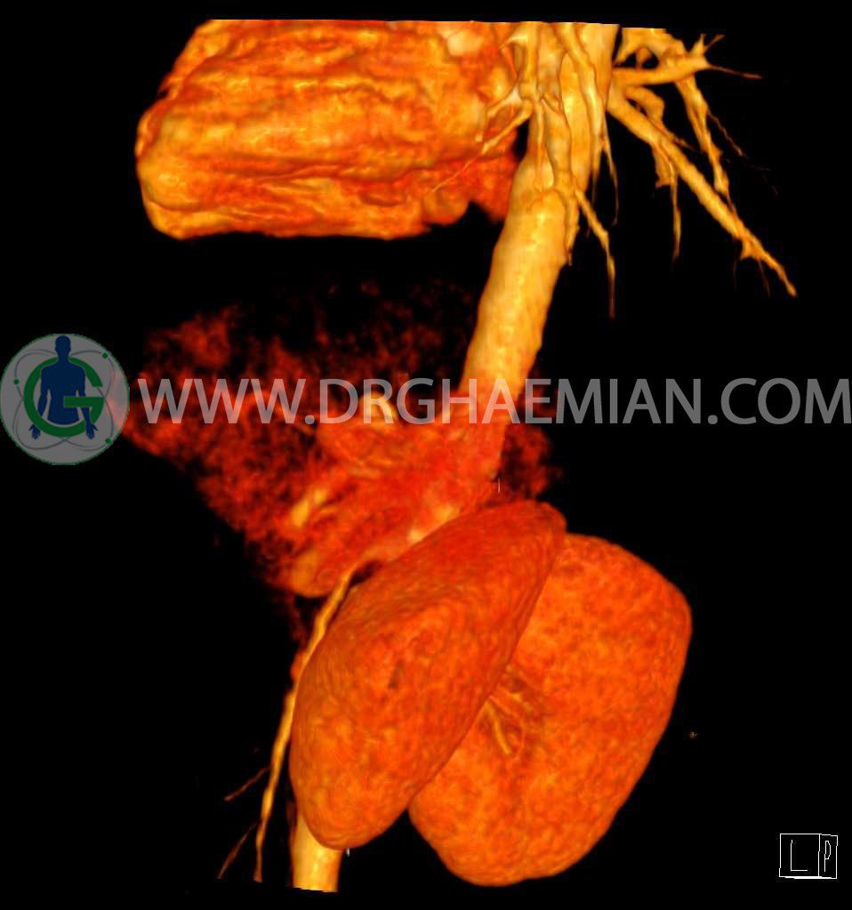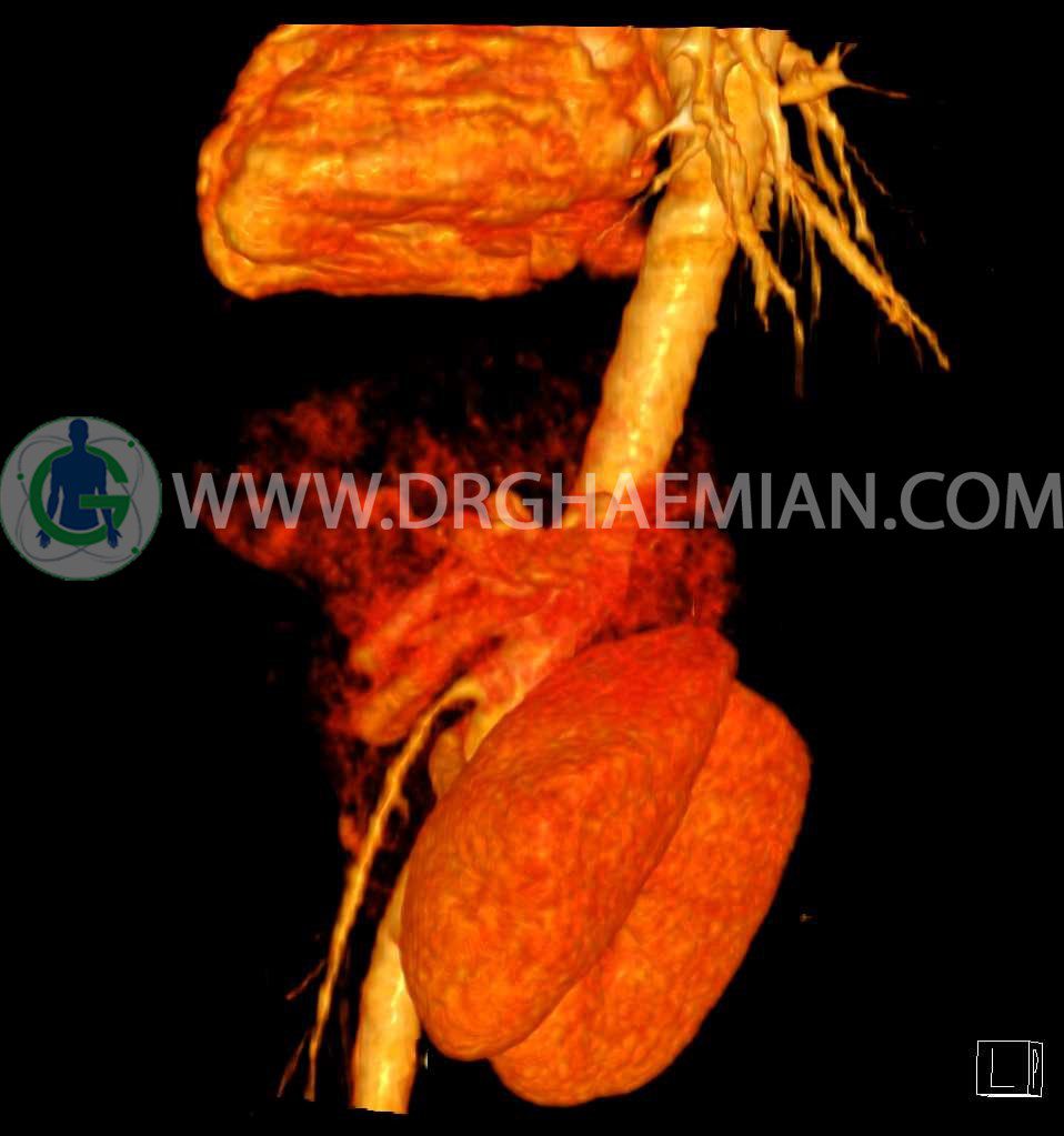 سی تی آنژیوگرافی عروق شکمي از ناحيه تحتاني توراکس تا بيفورکاسيون آئورت :