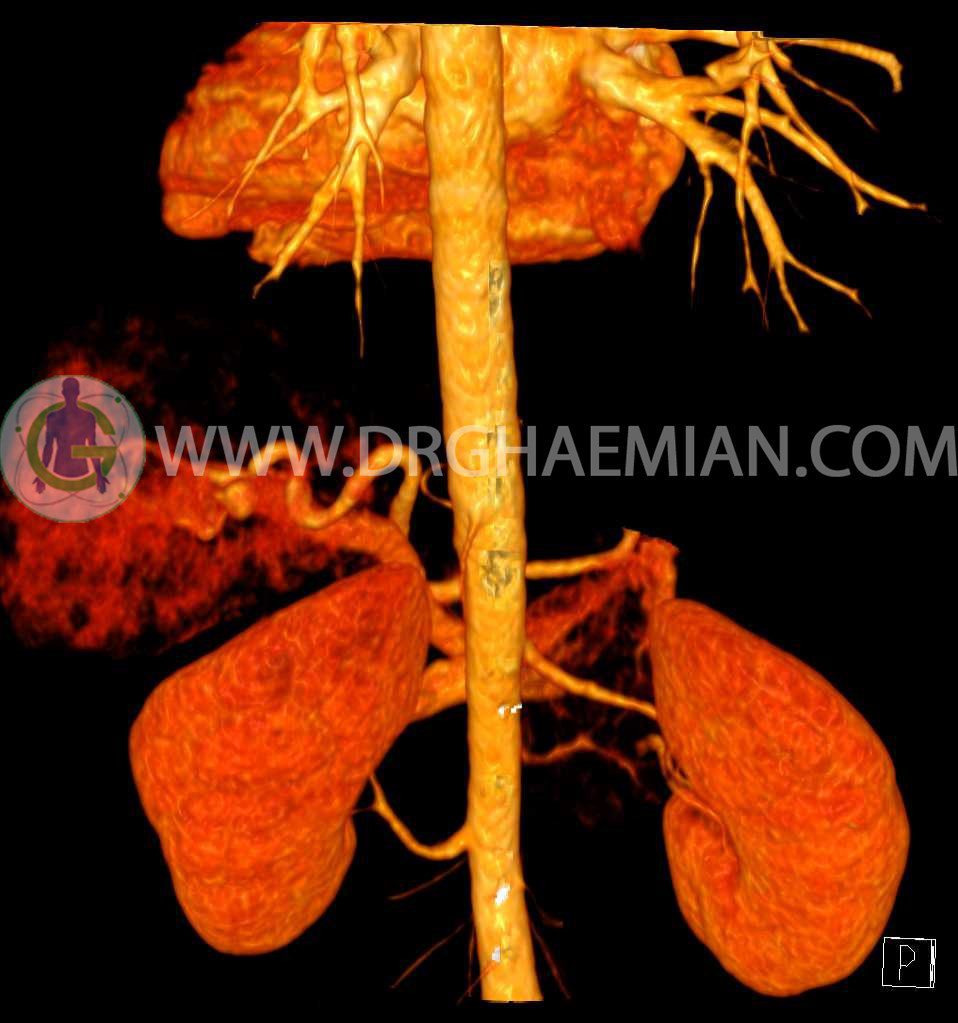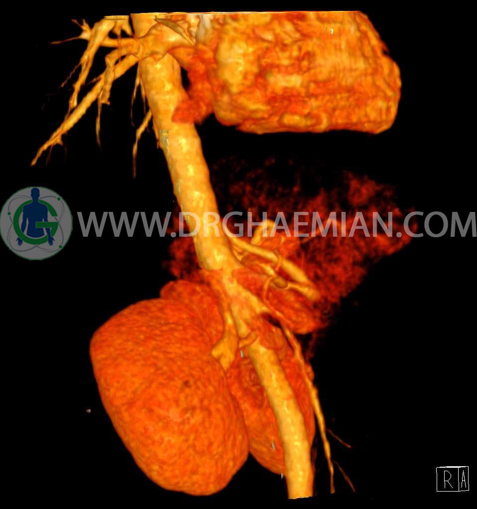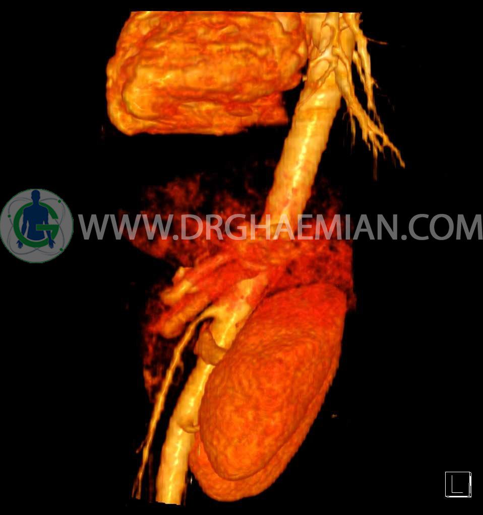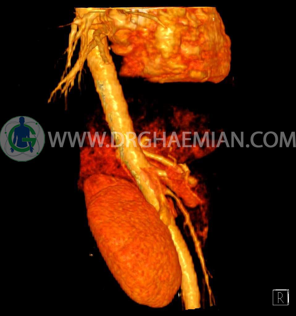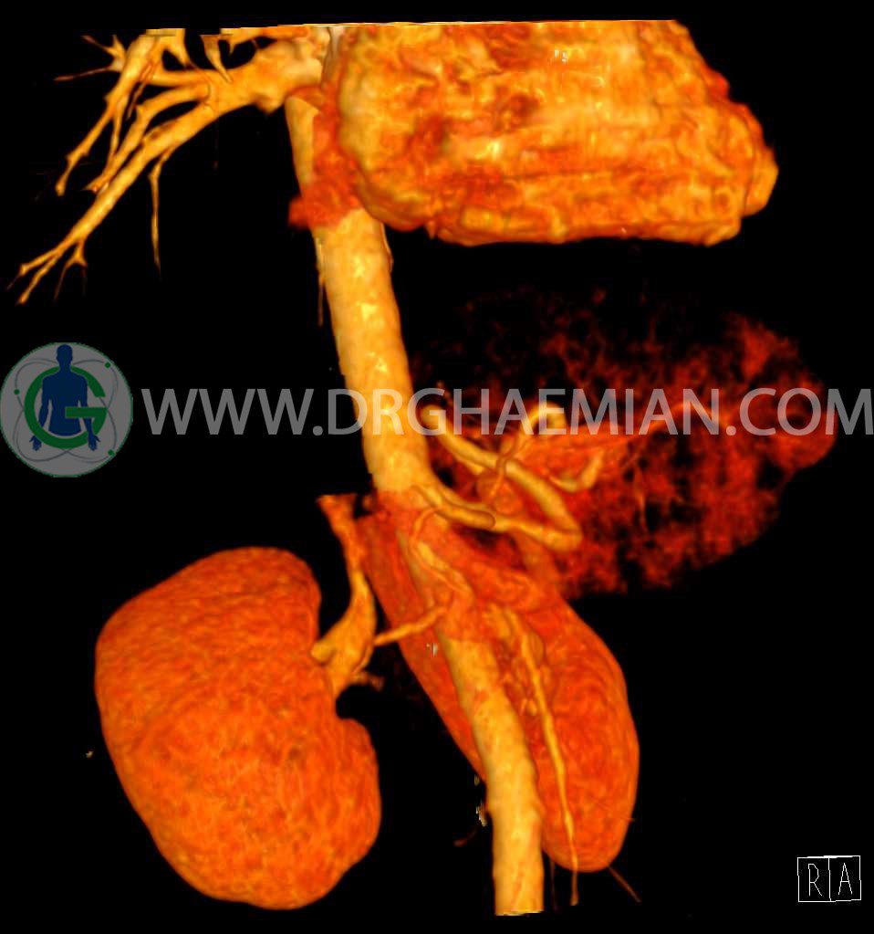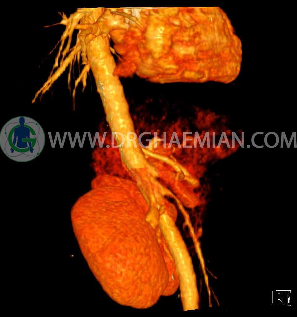 سی تی آنژیوگرافی عروق شکمي از ناحيه تحتاني توراکس تا بيفورکاسيون آئورت :