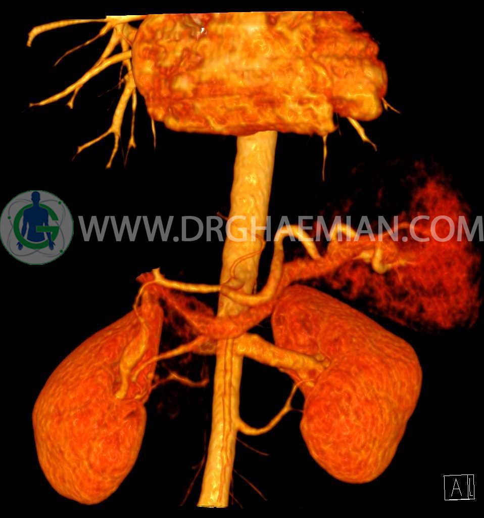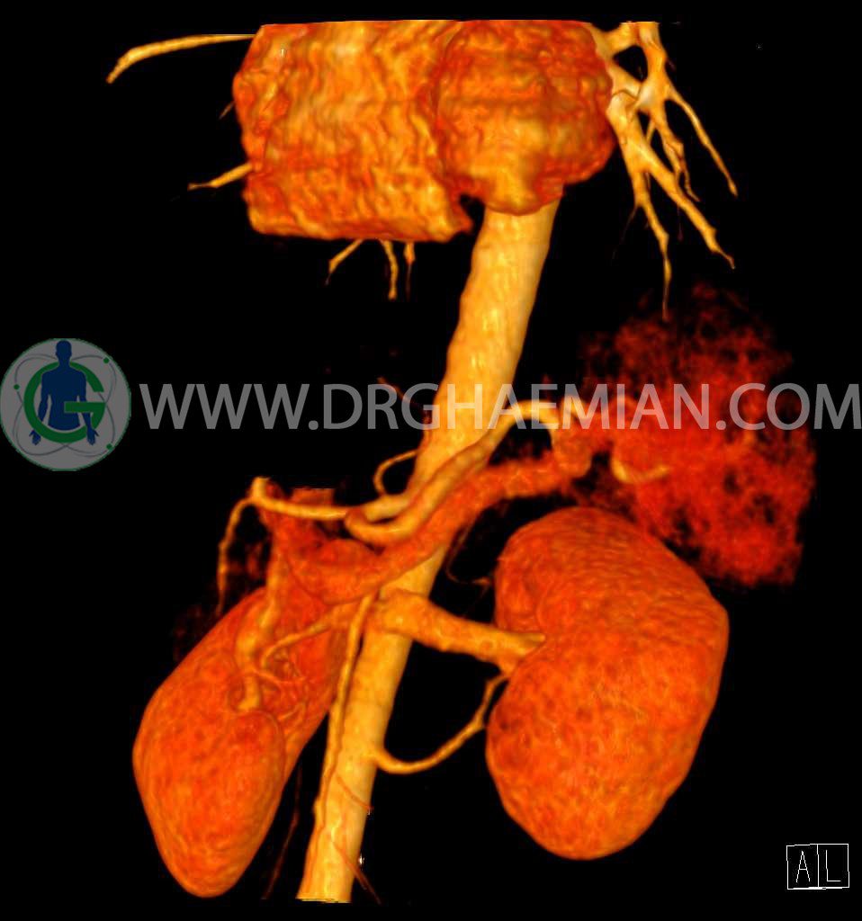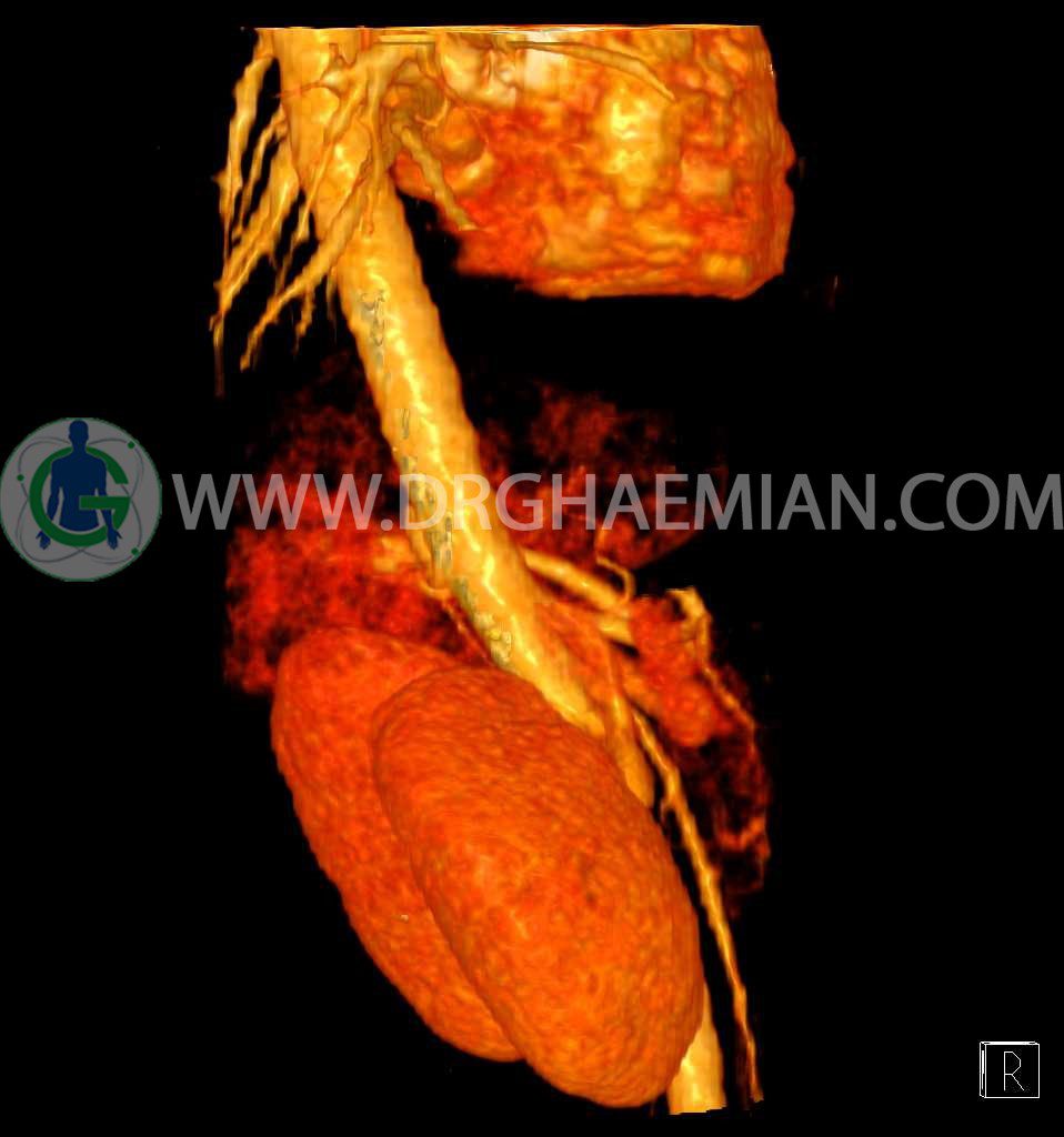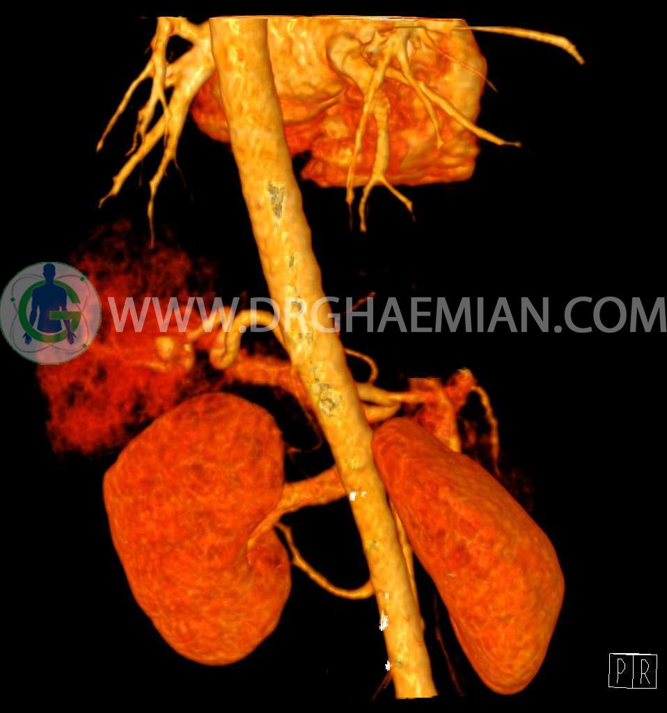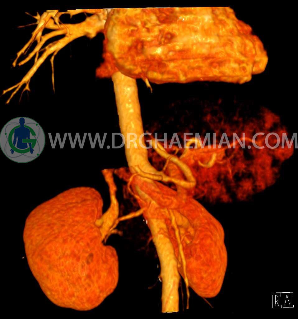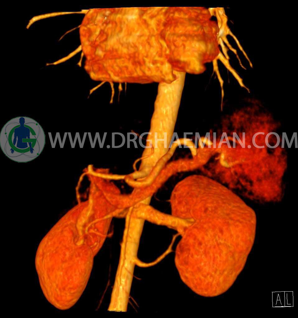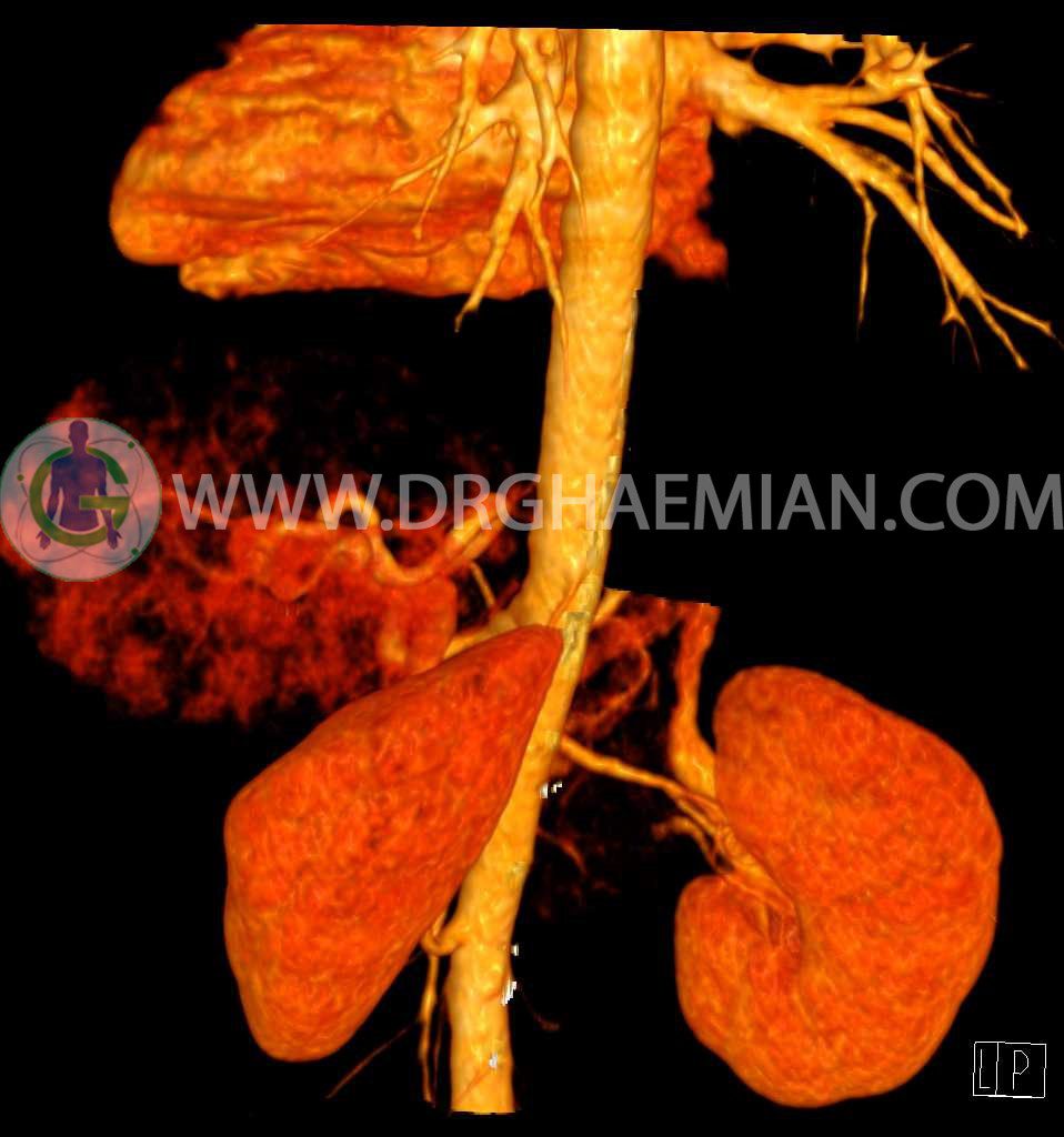 سی تی آنژیوگرافی عروق شکمي از ناحيه تحتاني توراکس تا بيفورکاسيون آئورت :