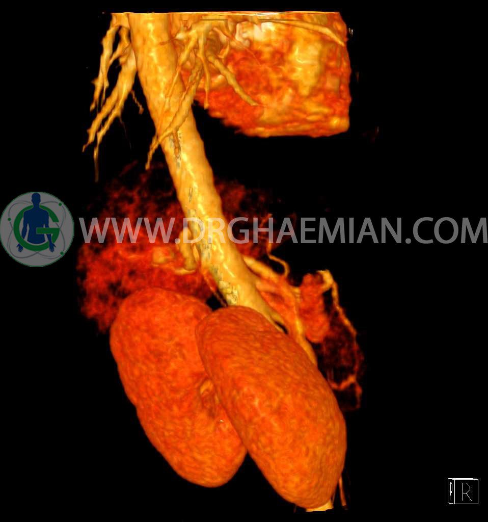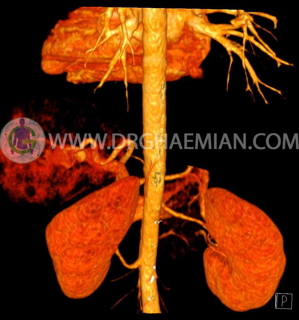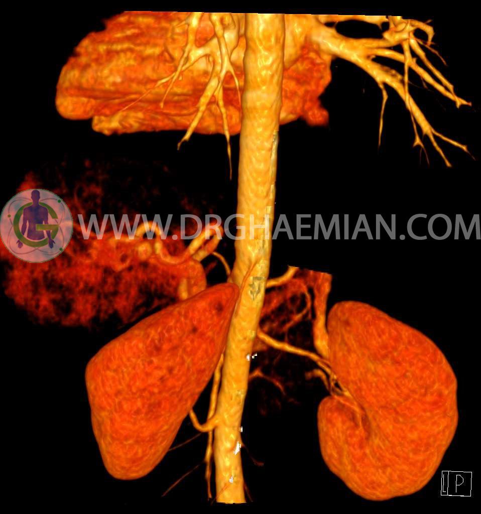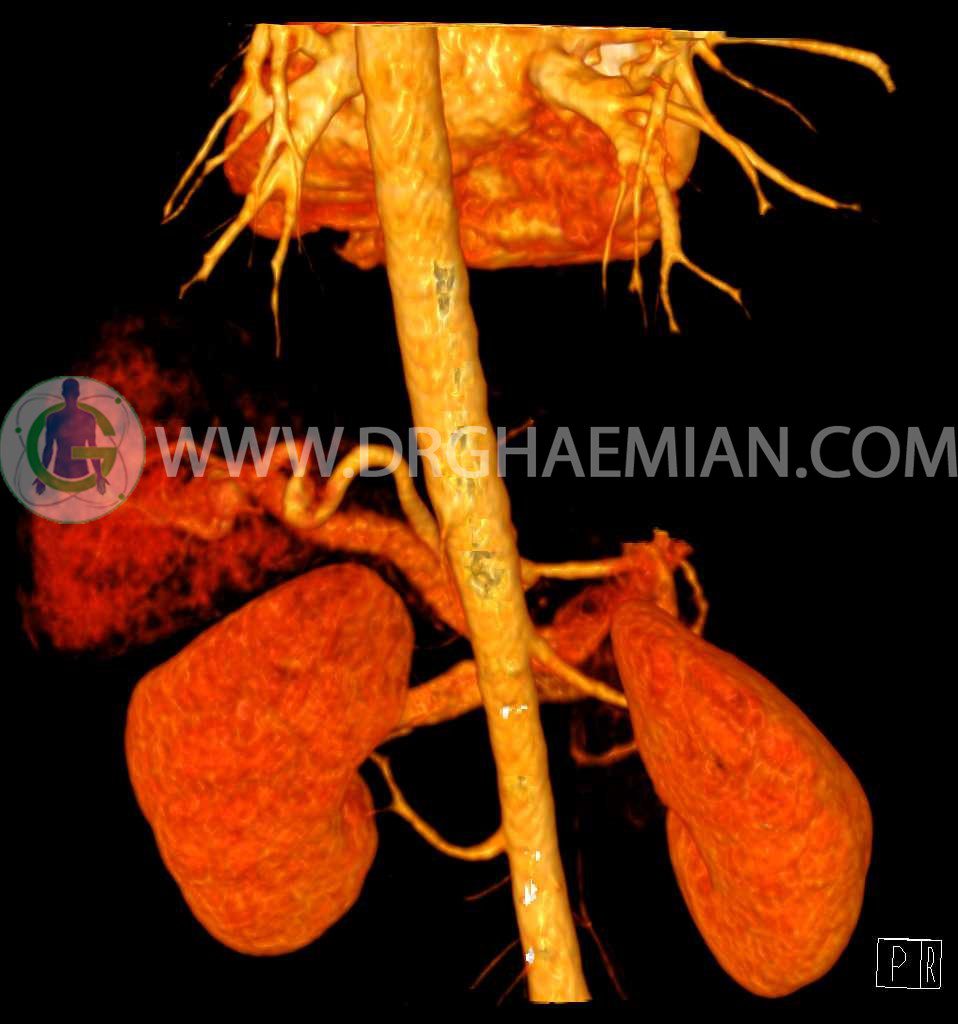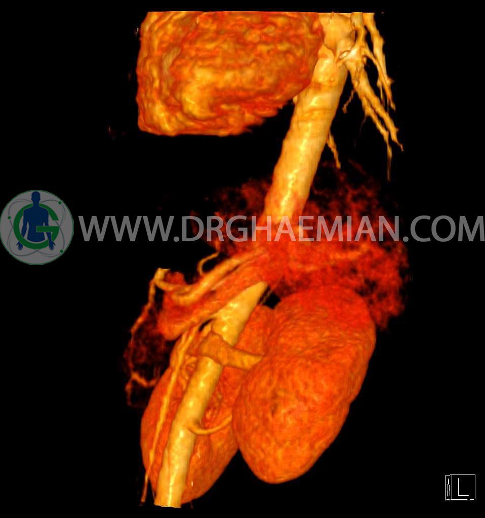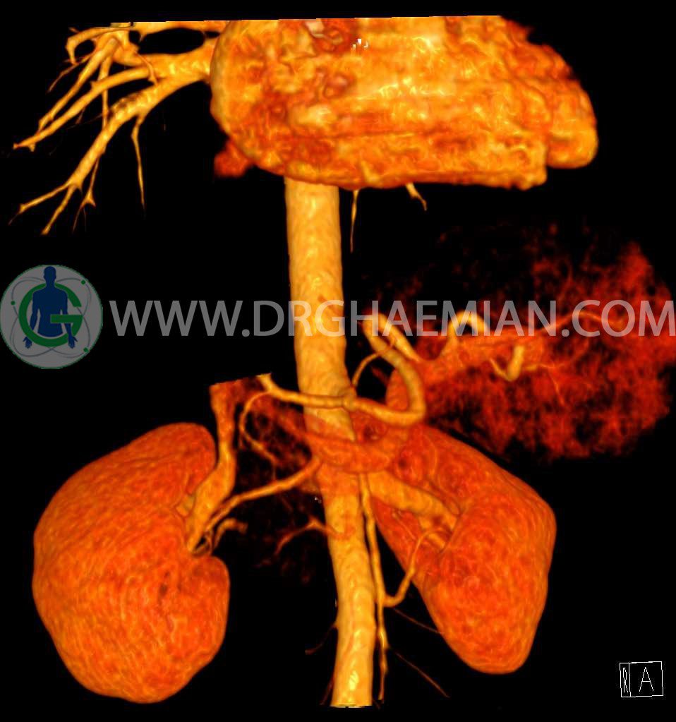سی تی آنژیوگرافی عروق شکمي از ناحيه تحتاني توراکس تا بيفورکاسيون آئورت :